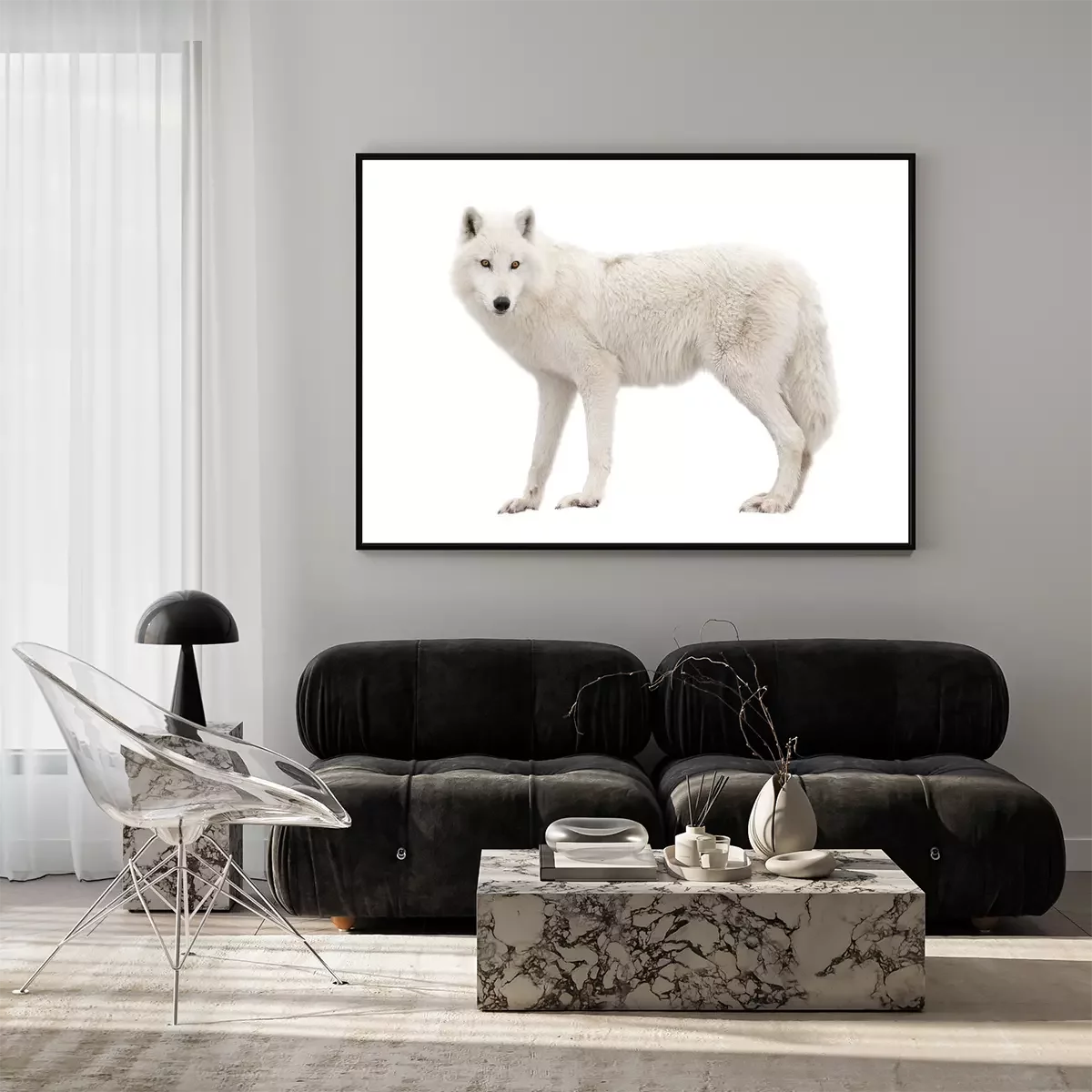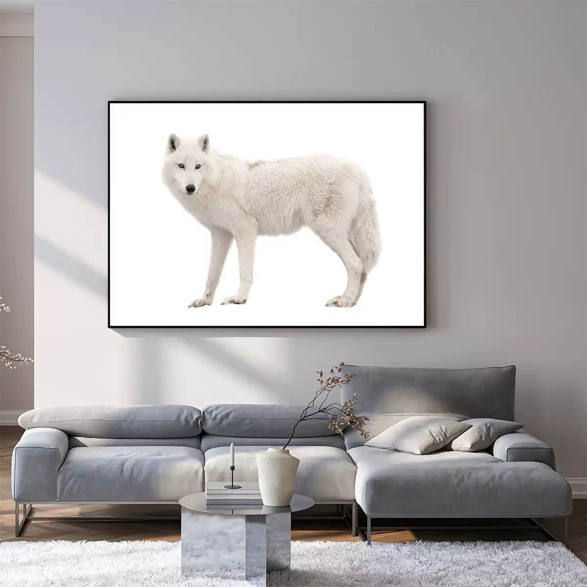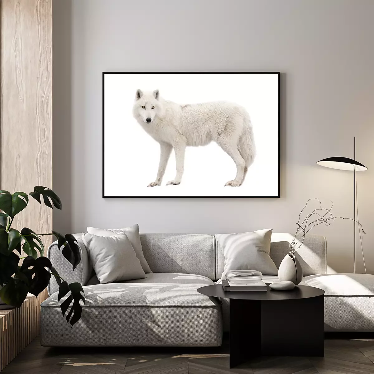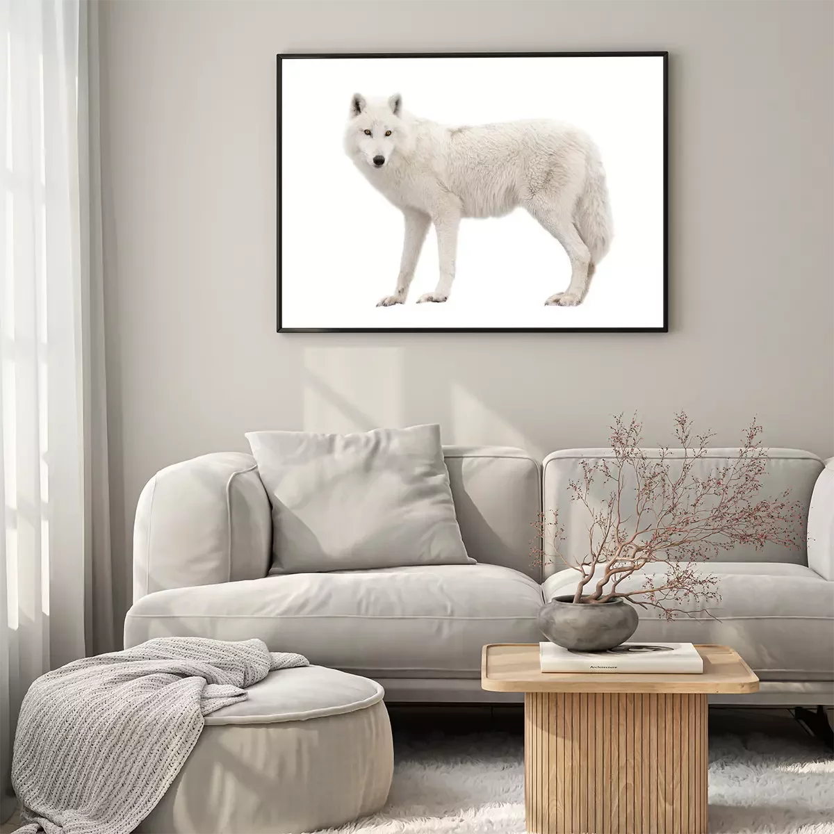 Poster: Witte wolf op een lichte achtergrond