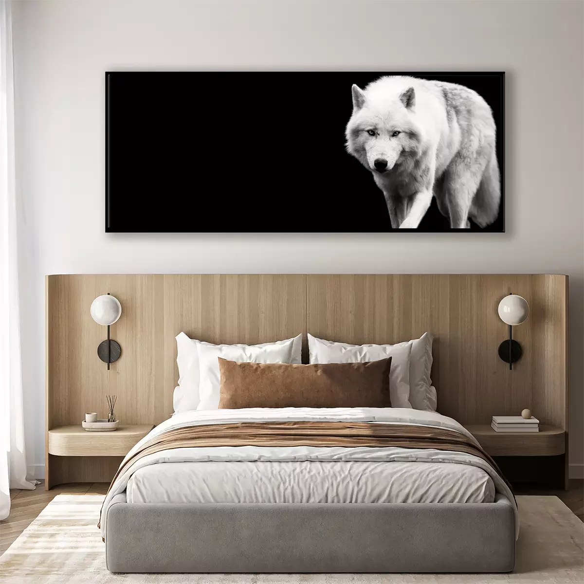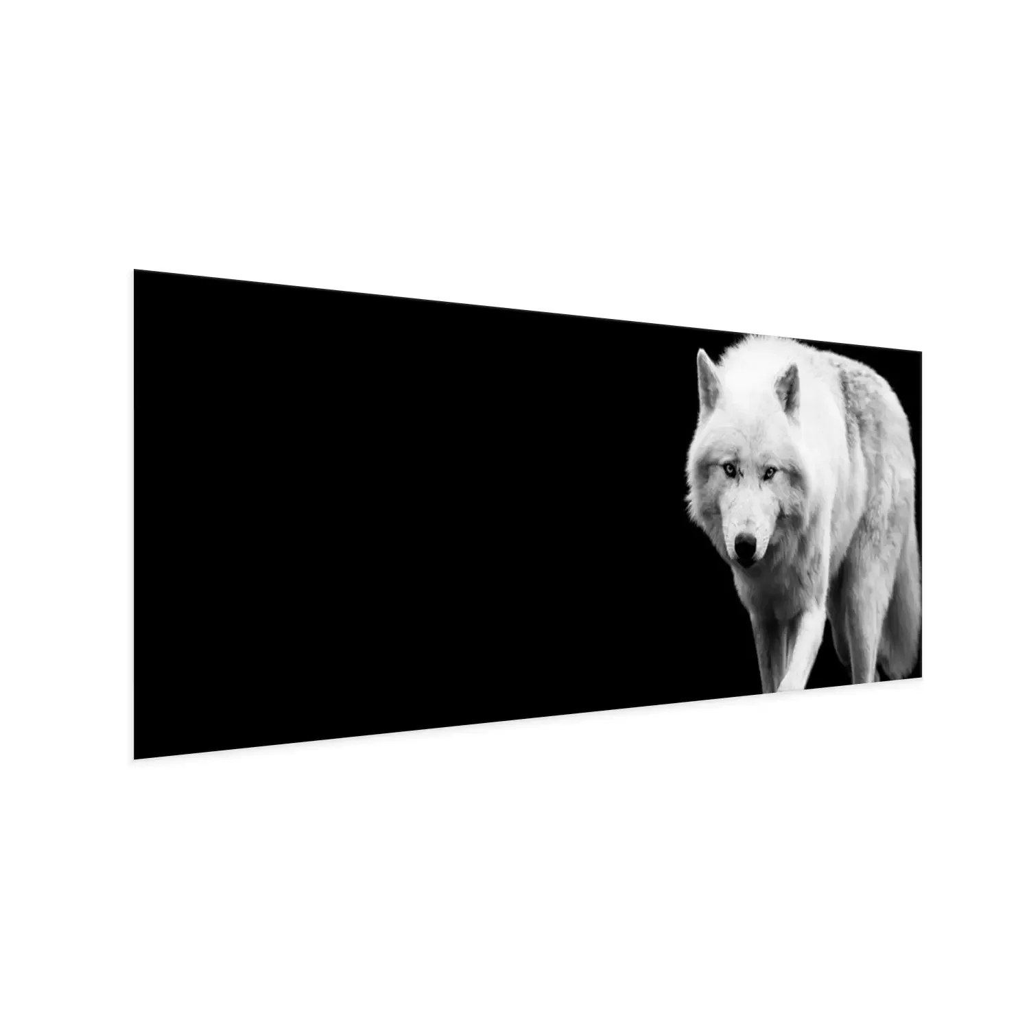 Poster: Witte wolf op een zwarte achtergrond