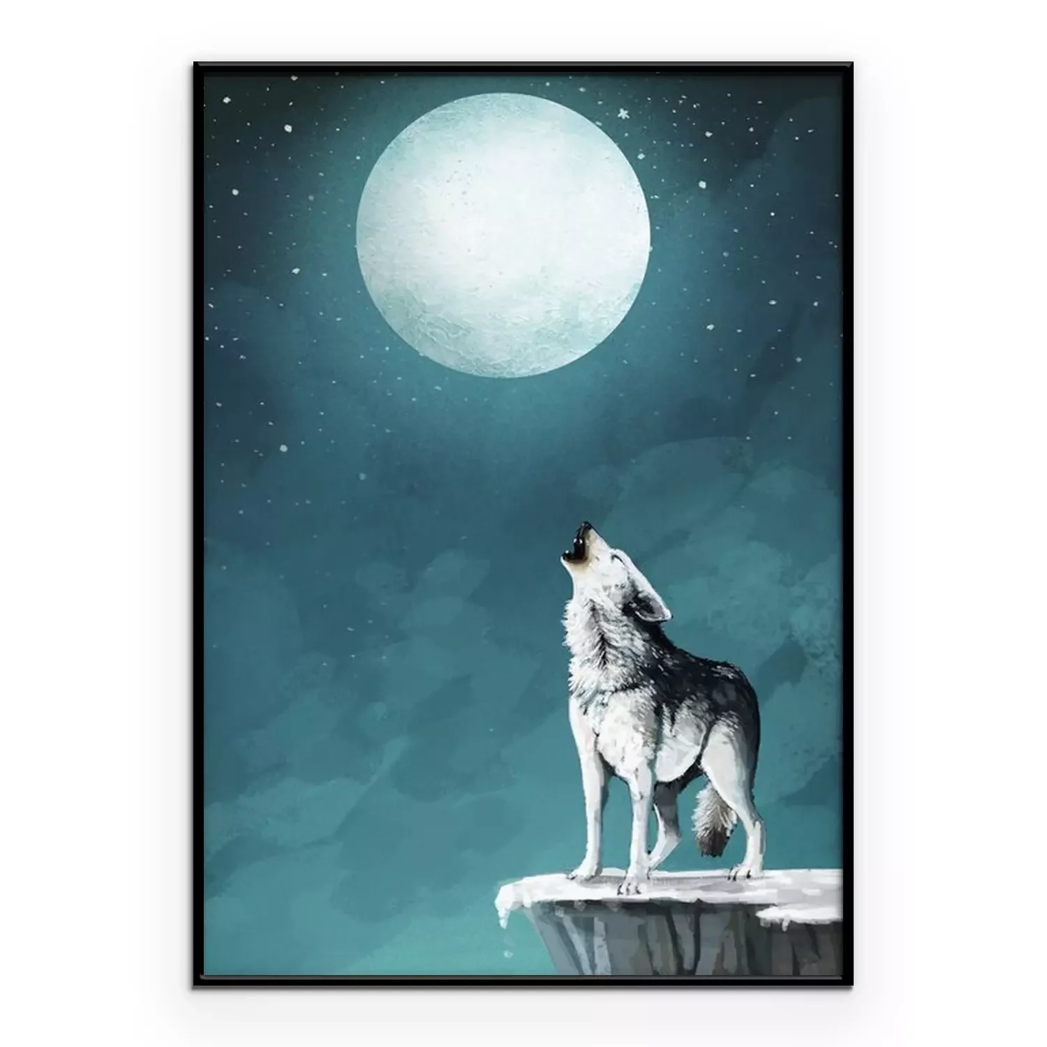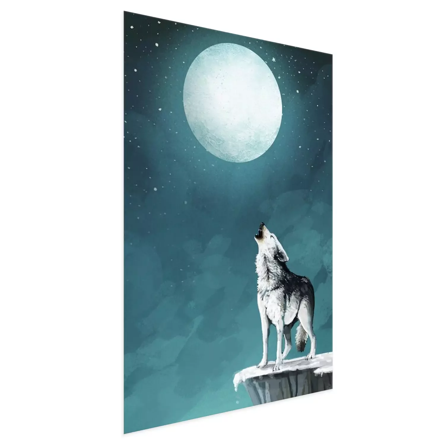 Poster: Wolf op een achtergrond van de nachtelijke hemel