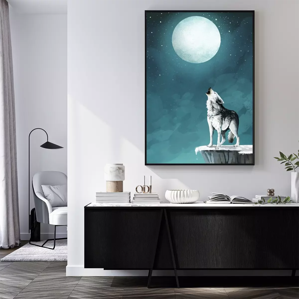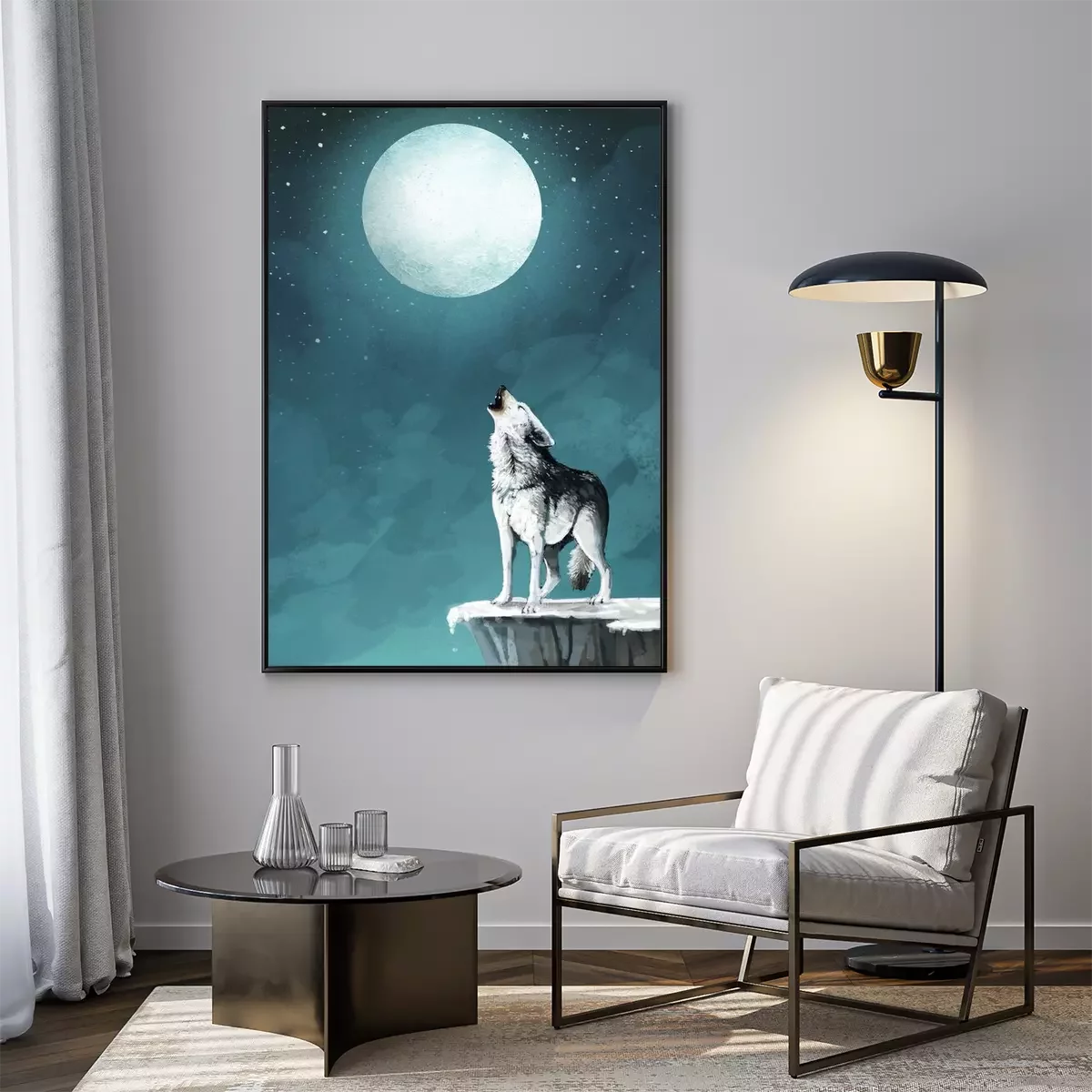 Nachtelijke illustratie met een wolf