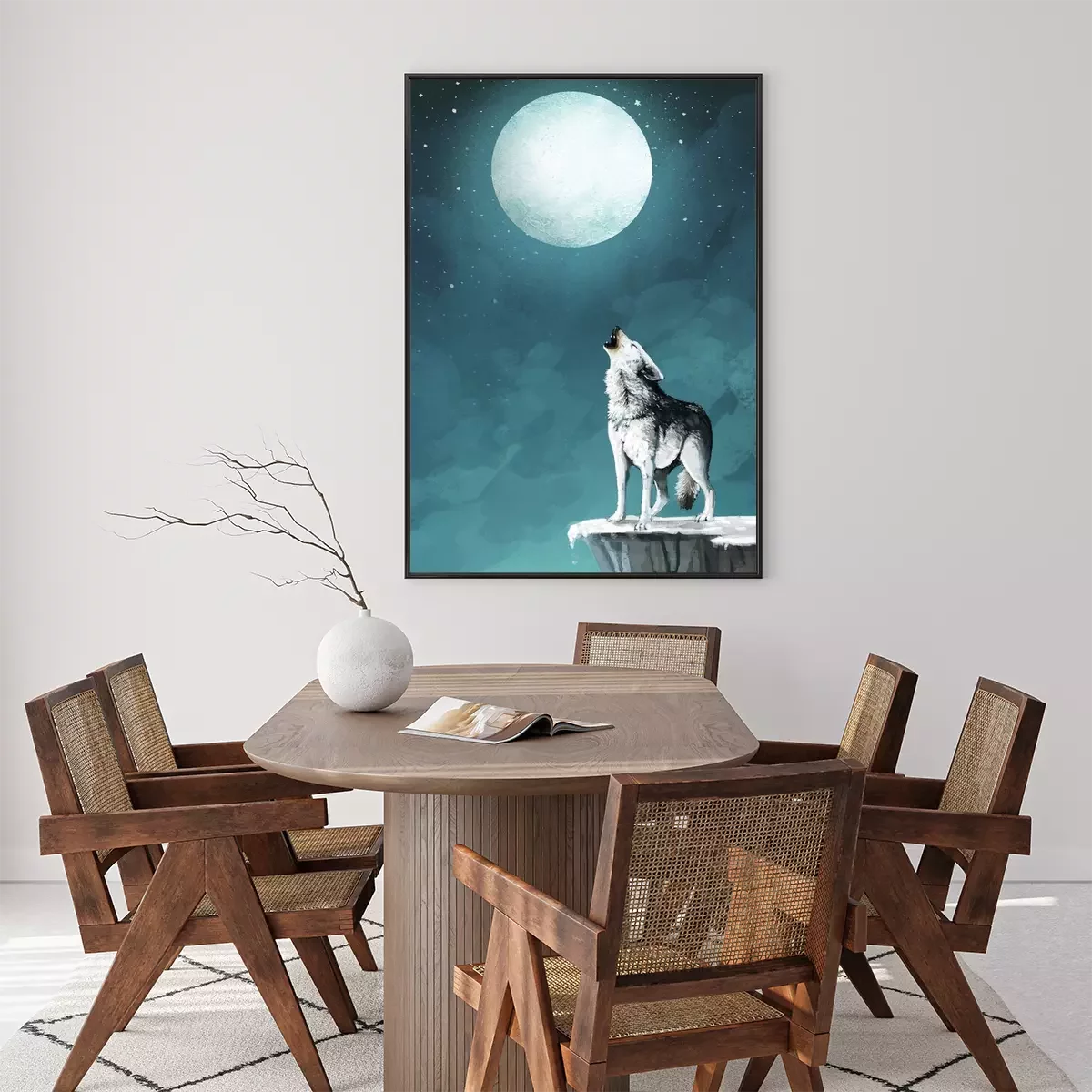 Poster Wolf op een achtergrond van de nachtelijke hemel