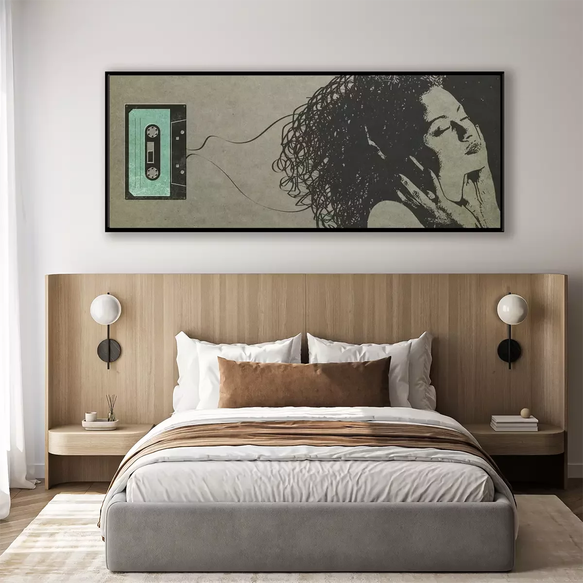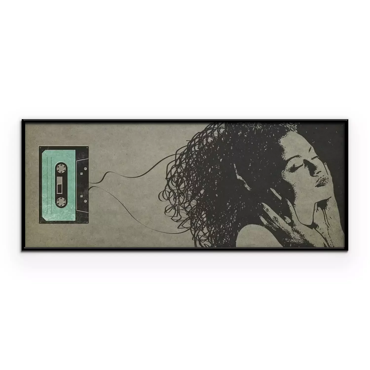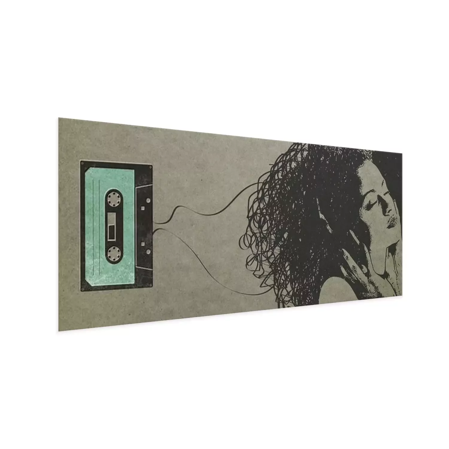 Poster: Woman listening to music and cassette tape