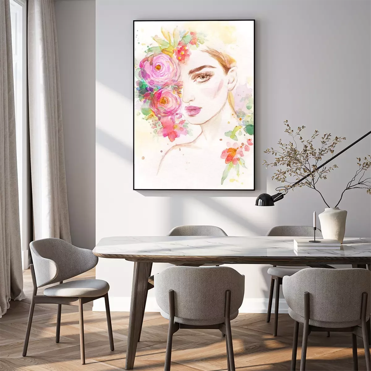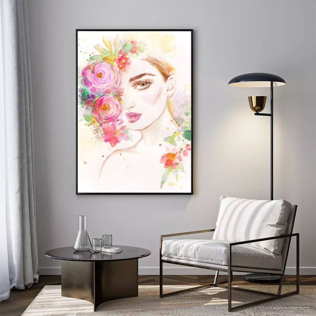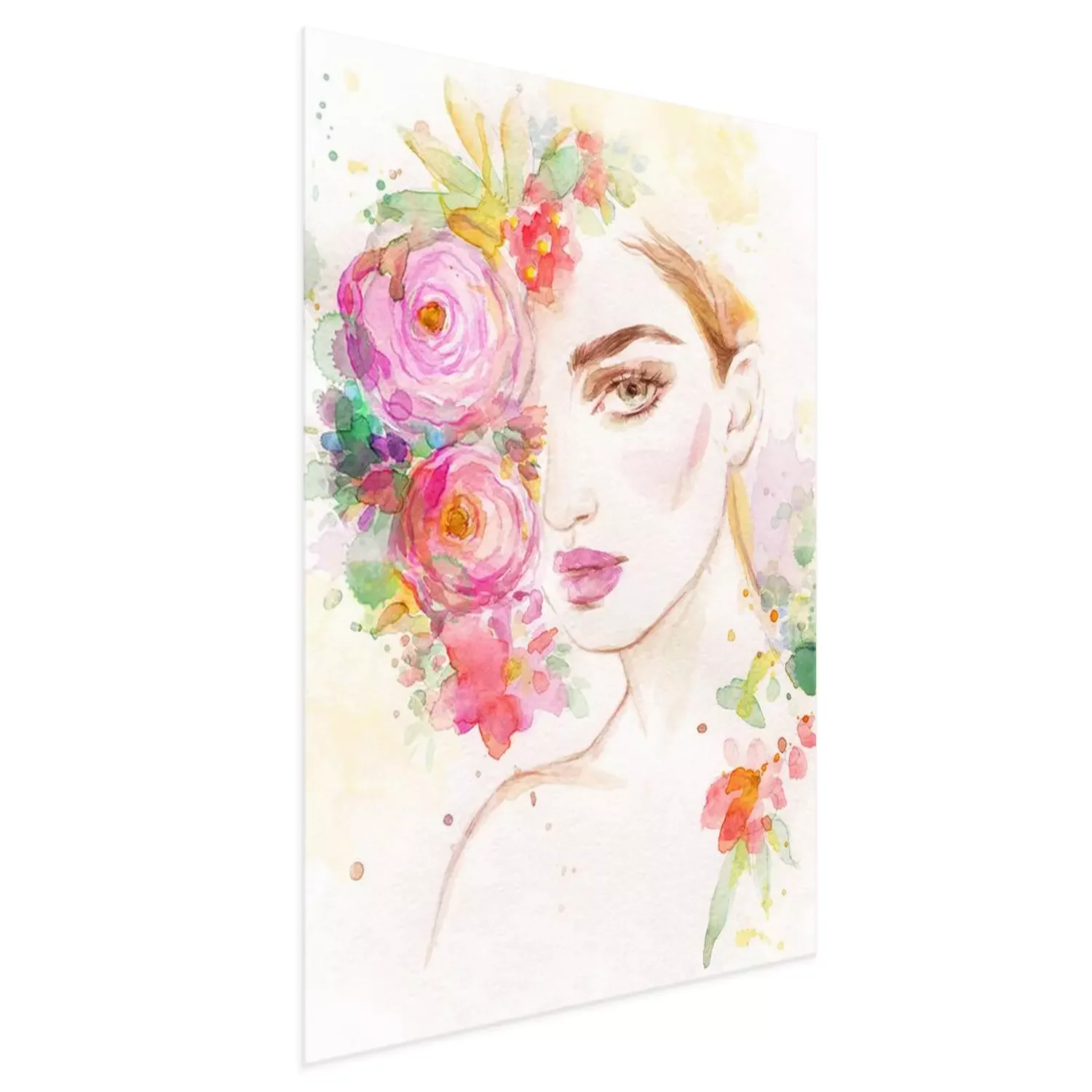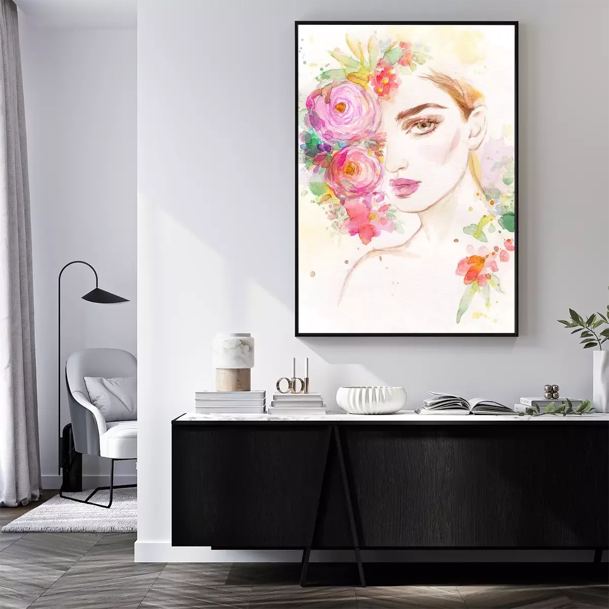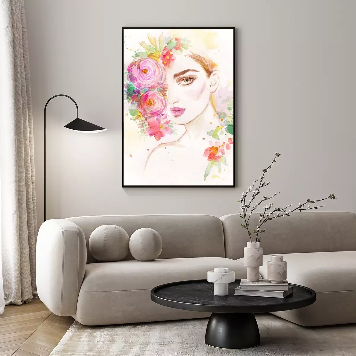 Poster: woman with flowers. beauty background. fashion illustration. watercolor painting