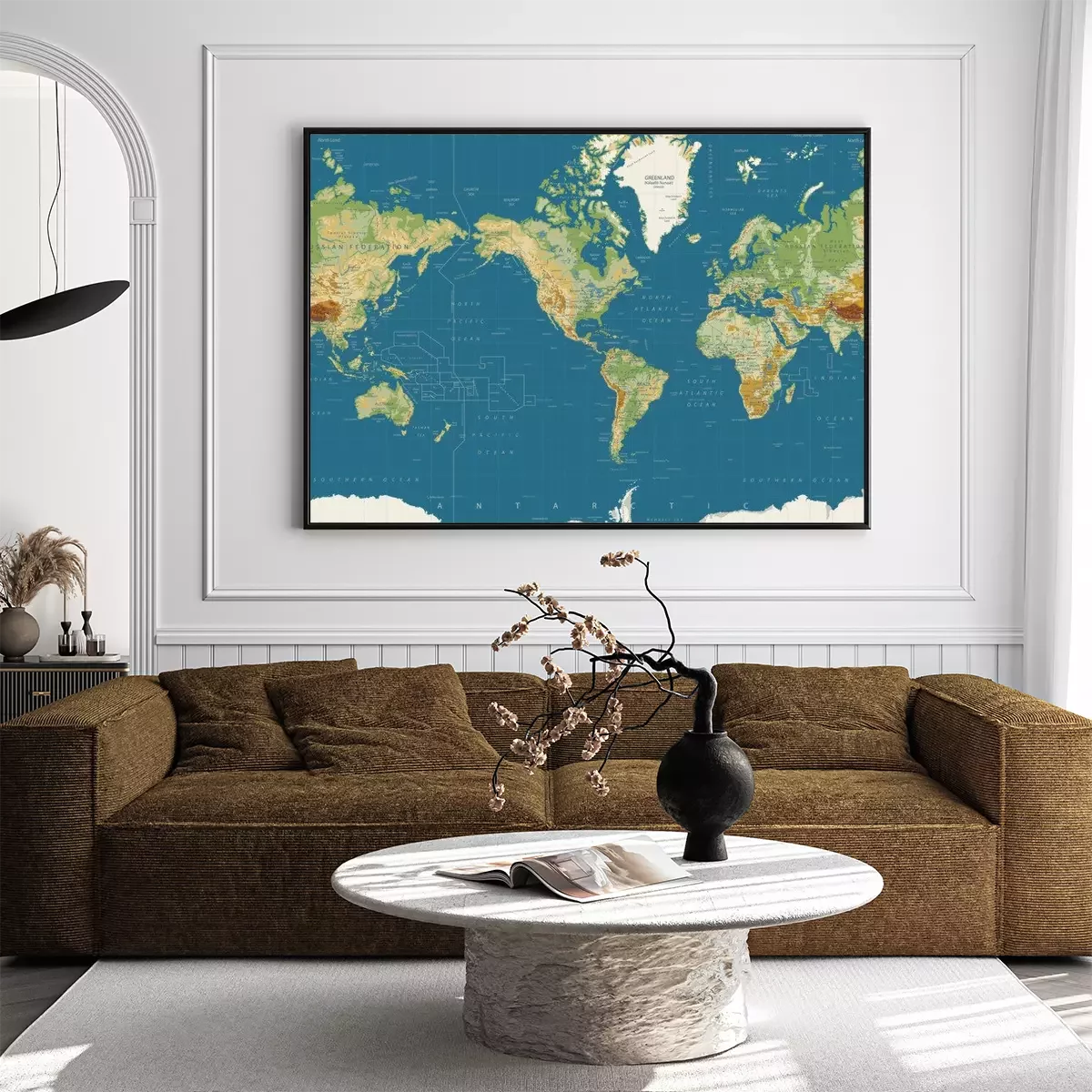 Poster: World Map Americas Gecentreerde Fysieke Kaart. Vintage Kleuren. Geen badmetrie