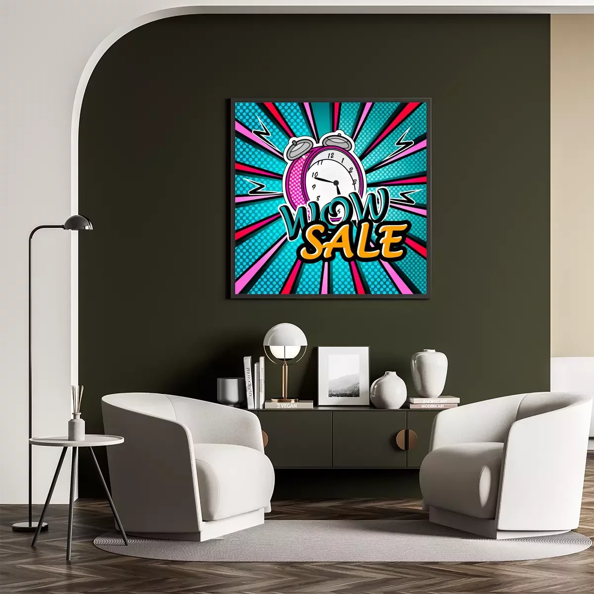 Poster: wow verkoop heldere pop art explosie op gestippelde achtergrond