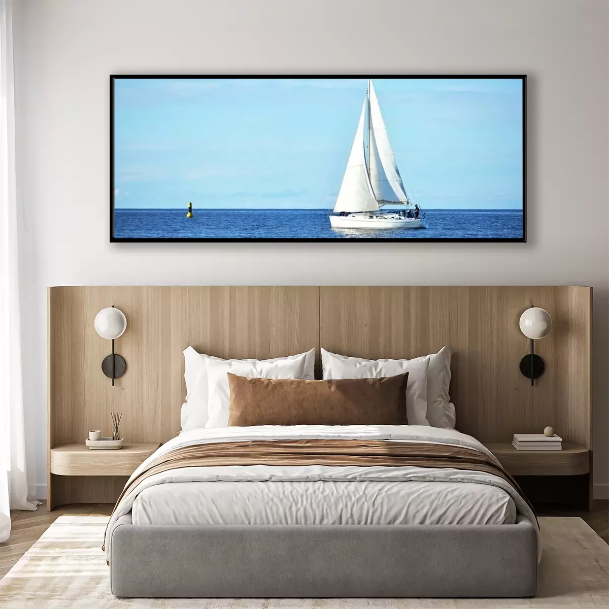 Poster Yacht sailing in calm water in the gulf of Riga