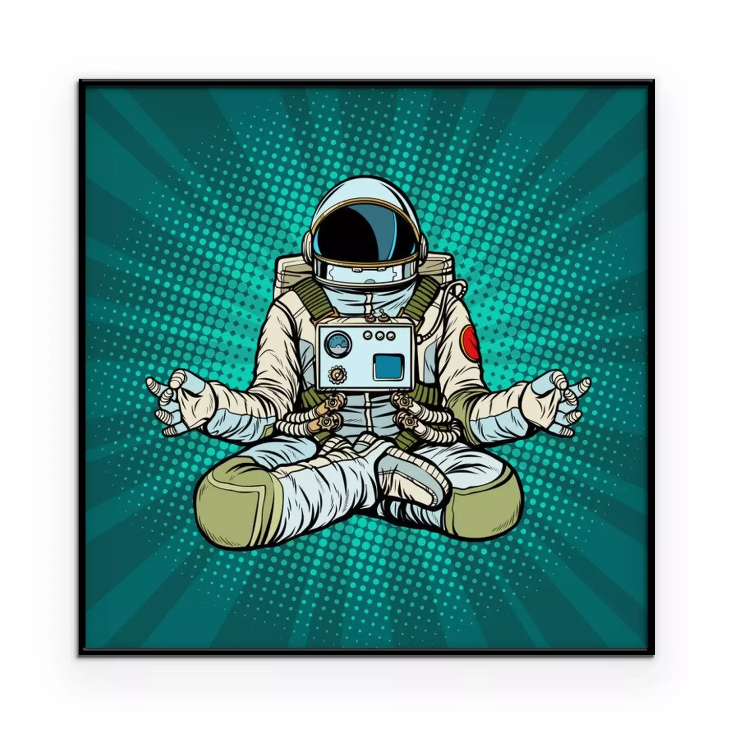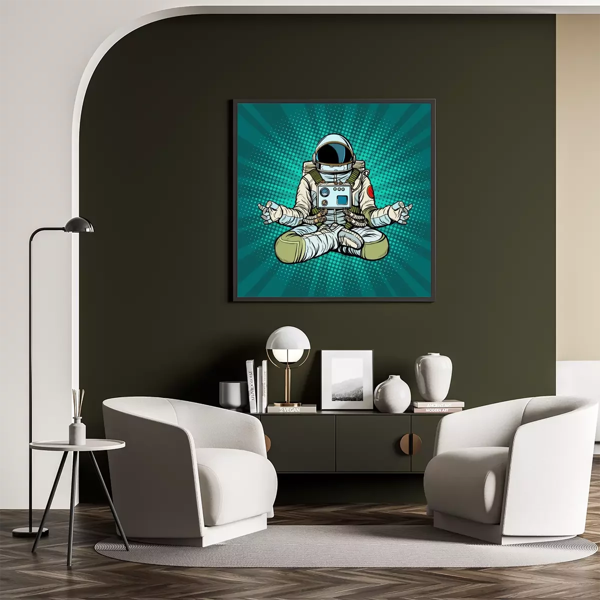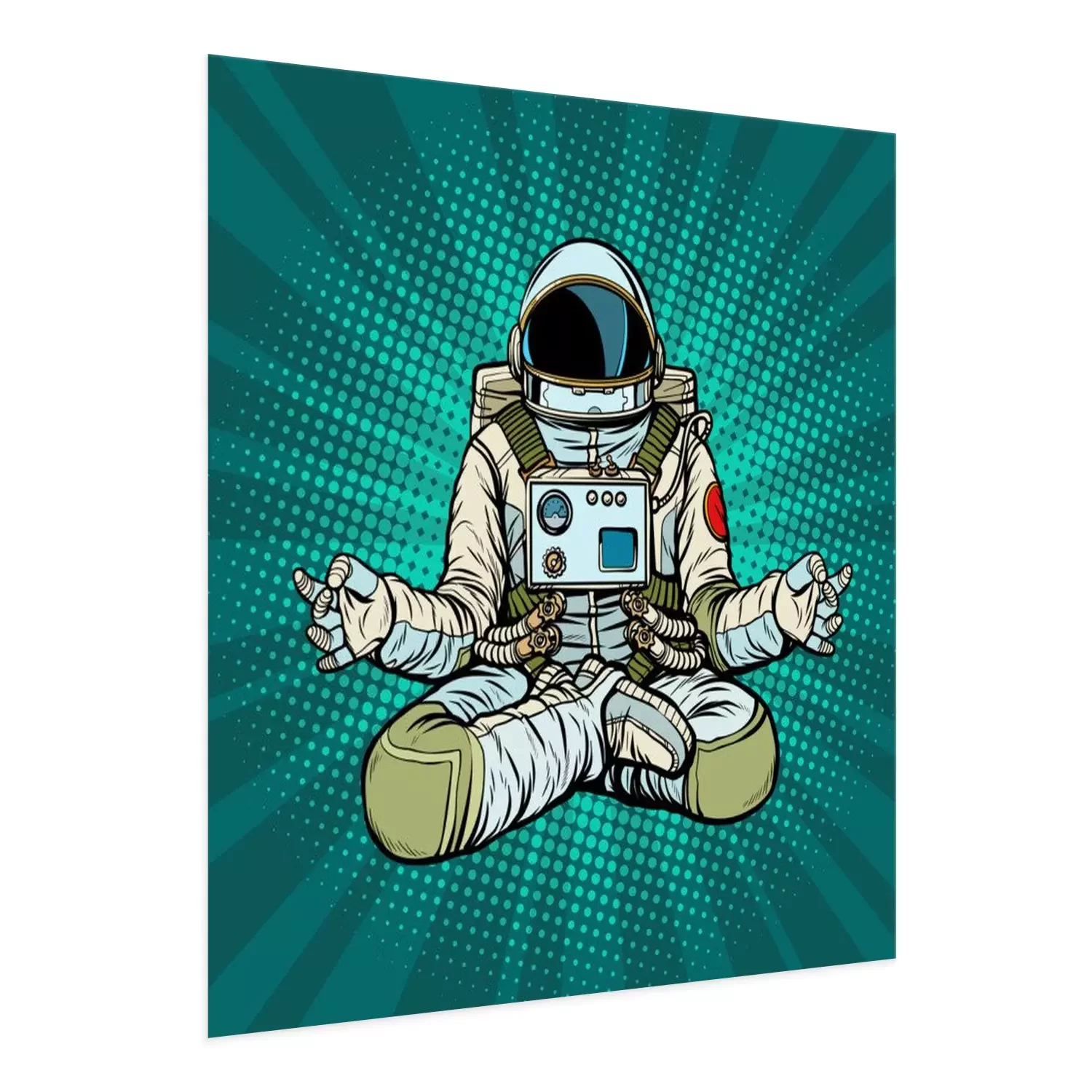 Poster: yoga-astronaut Lotus pose. Meditatie en spirituele oefening