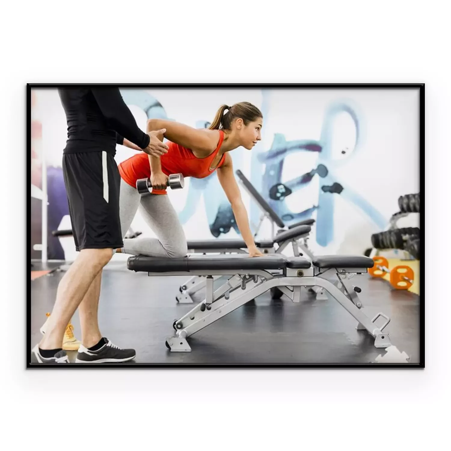 Poster Young male trainer giving instructions to a woman in a gym