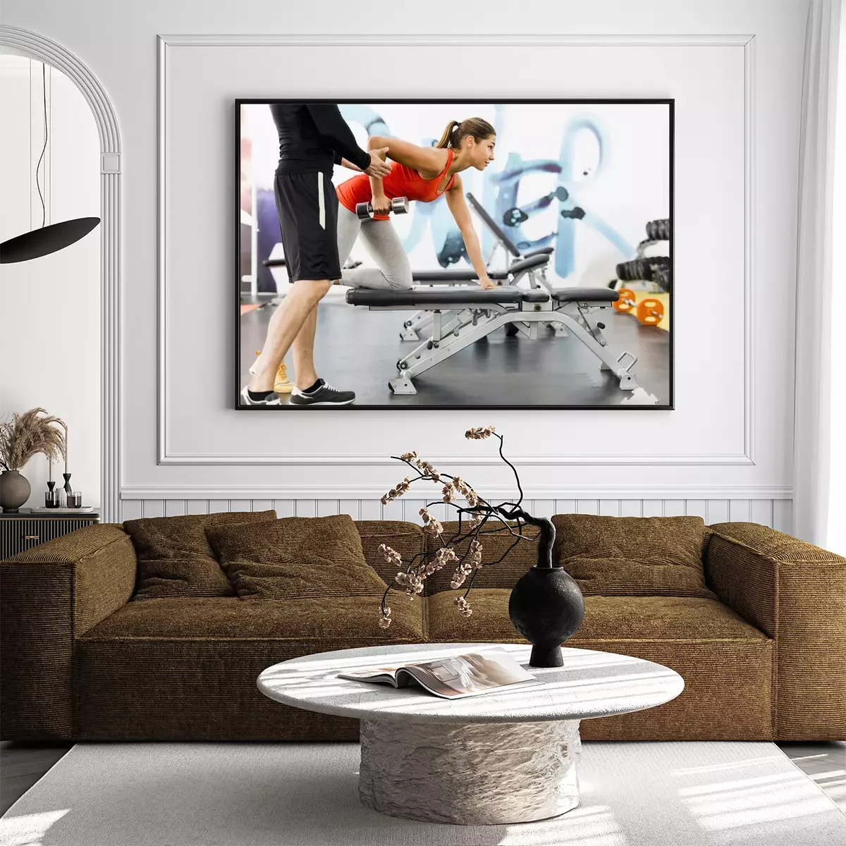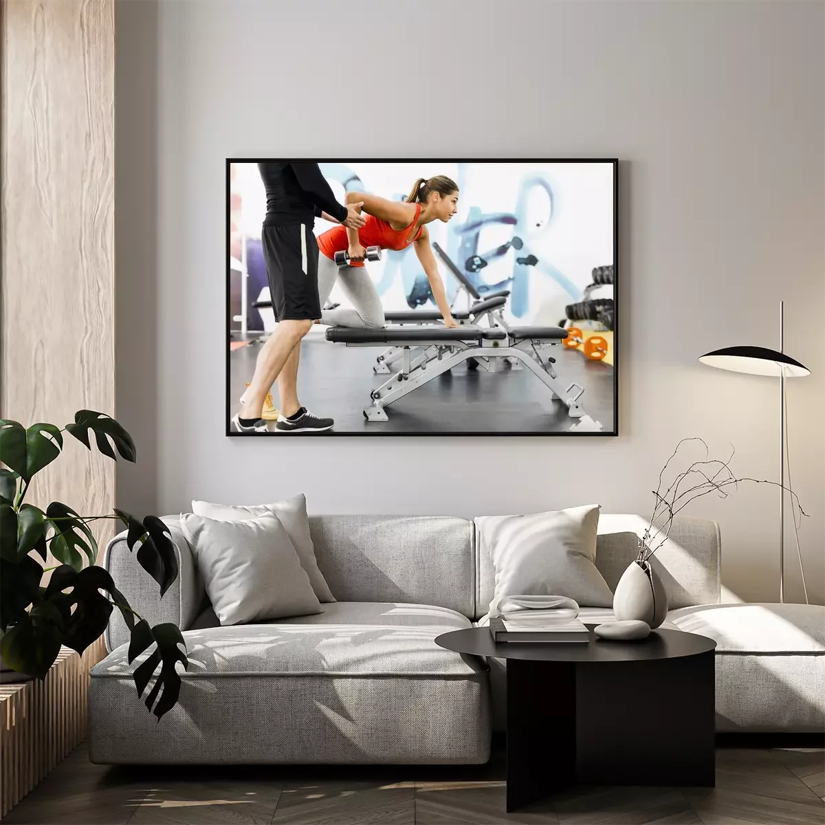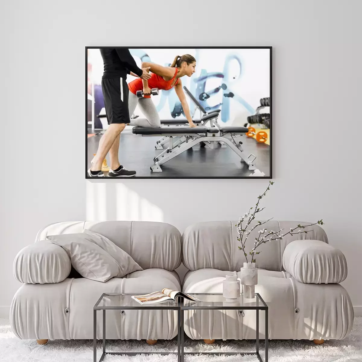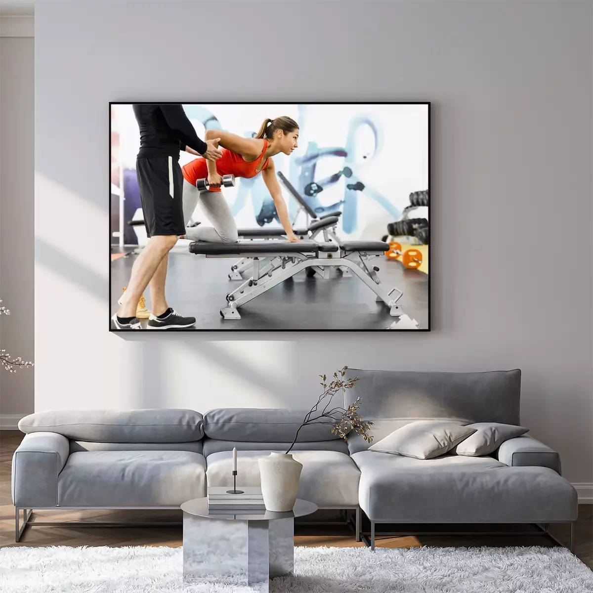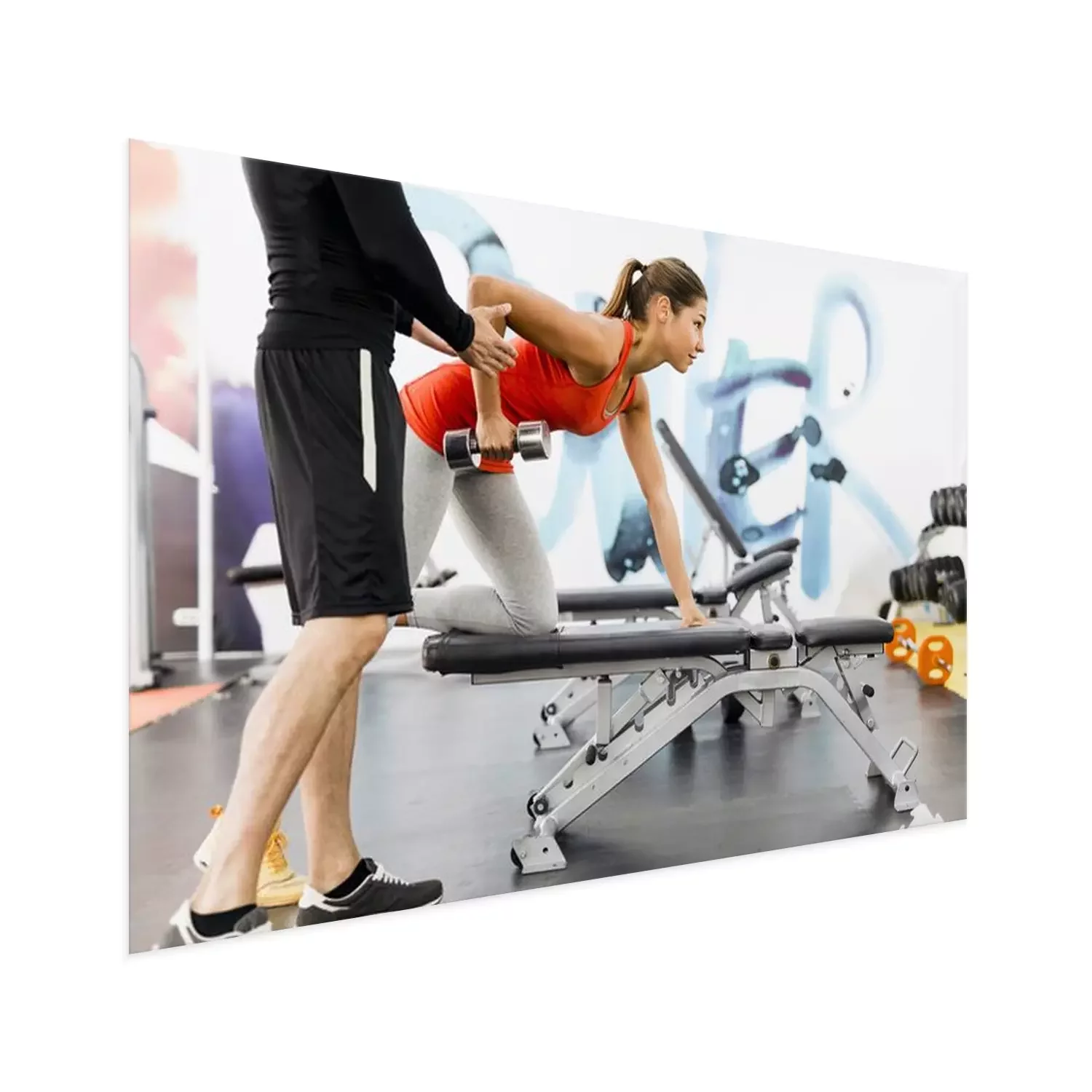 Poster: Young male trainer giving instructions to a woman in a gym