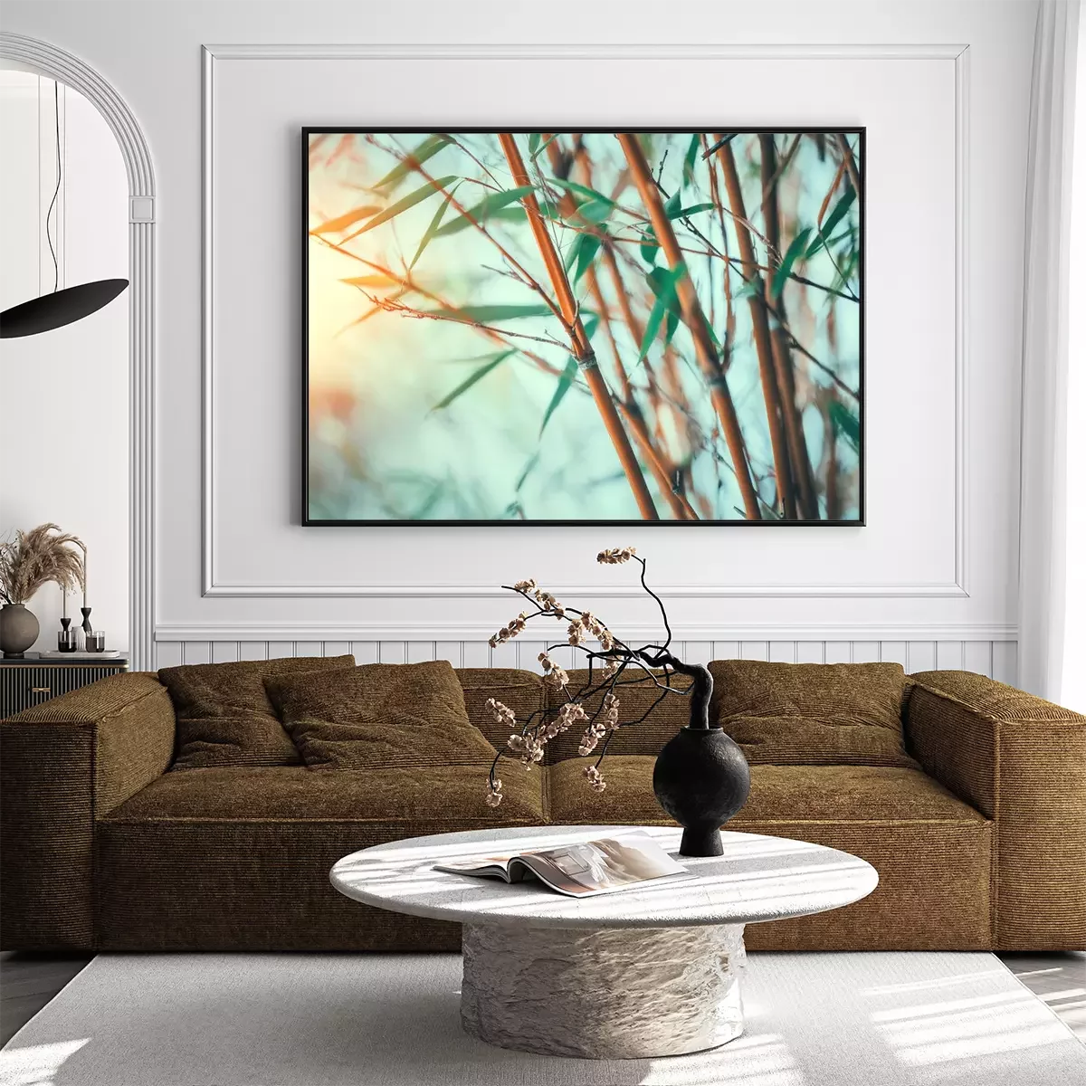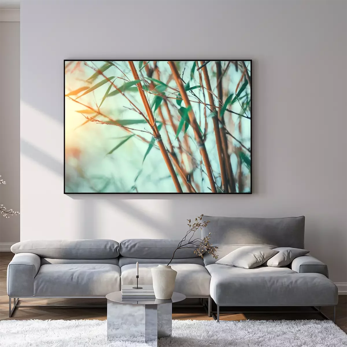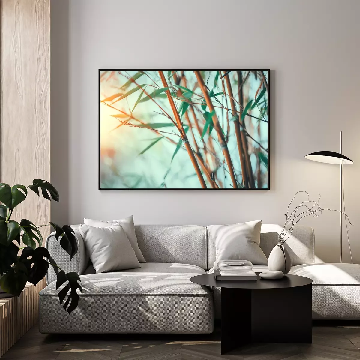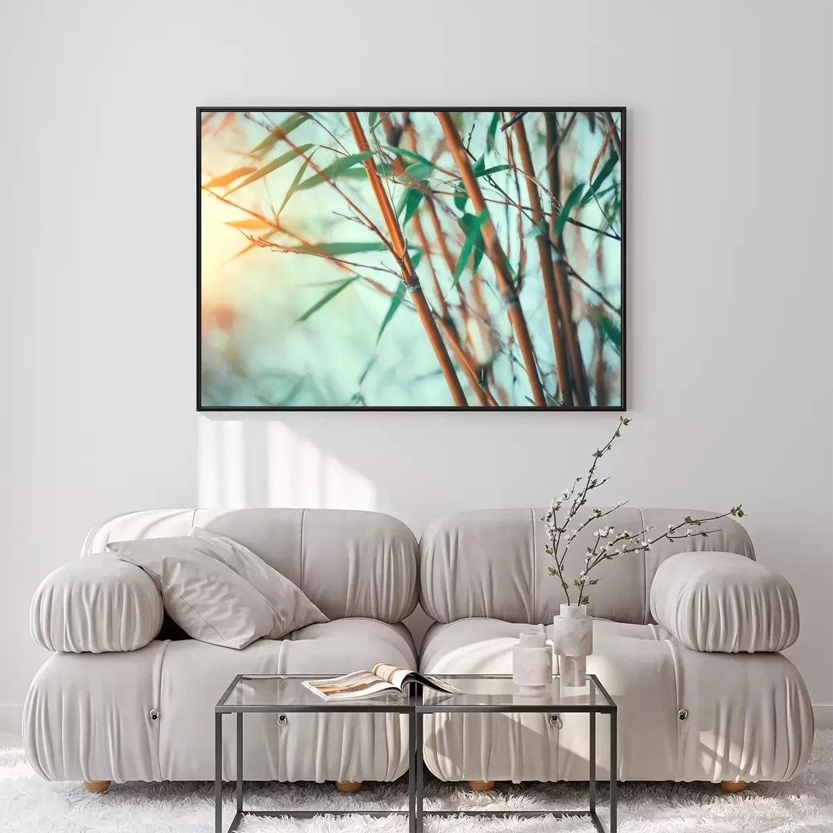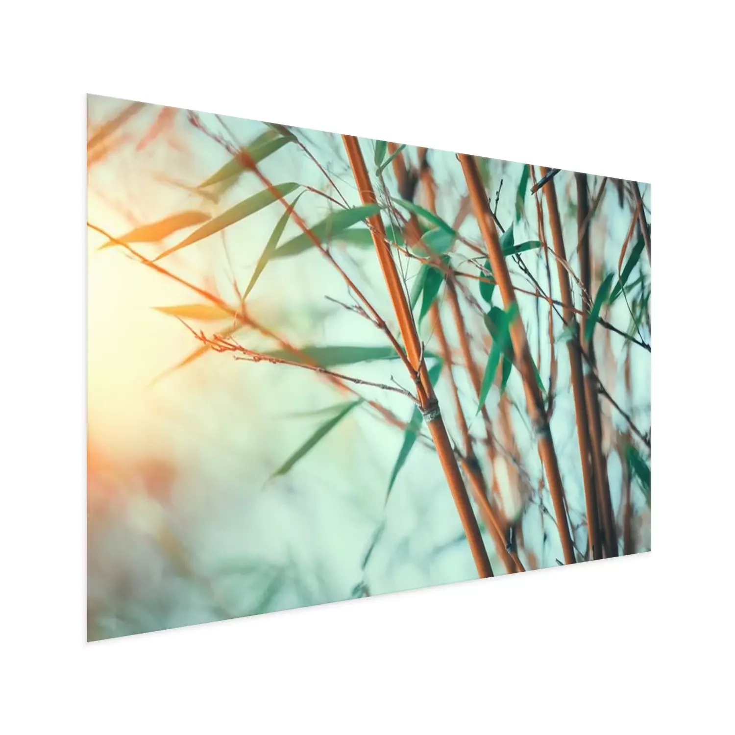 Poster: Zachte bamboe met lucht en zon op de achtergrond
