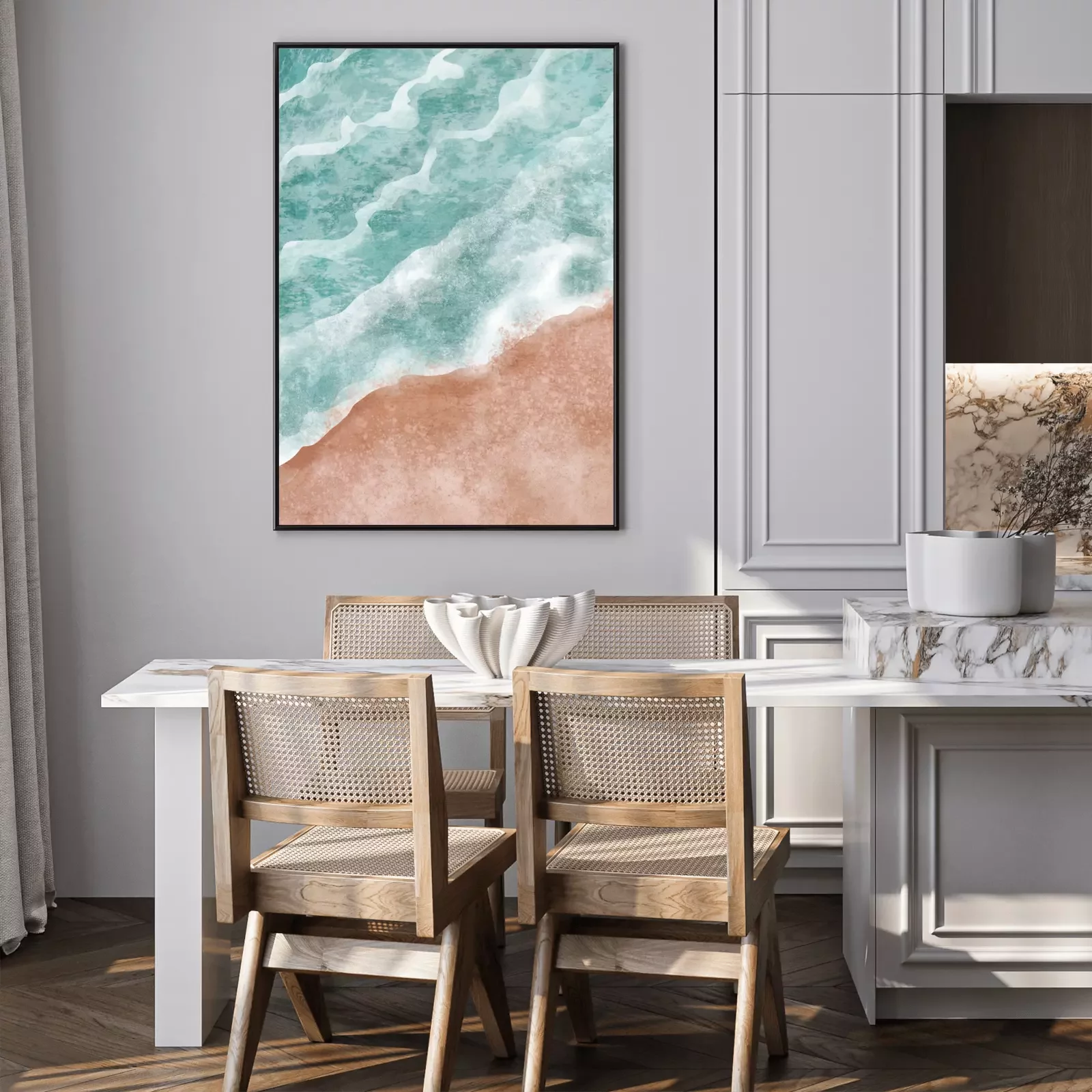 Boho Print. Abstract Clifs with Sea Background. Terracotta Poster. Abstract Arrangements. Landscapes, mountains. Posters. Terracotta, blush, pink, ivory, beige watercolor Modern print set. Wall art