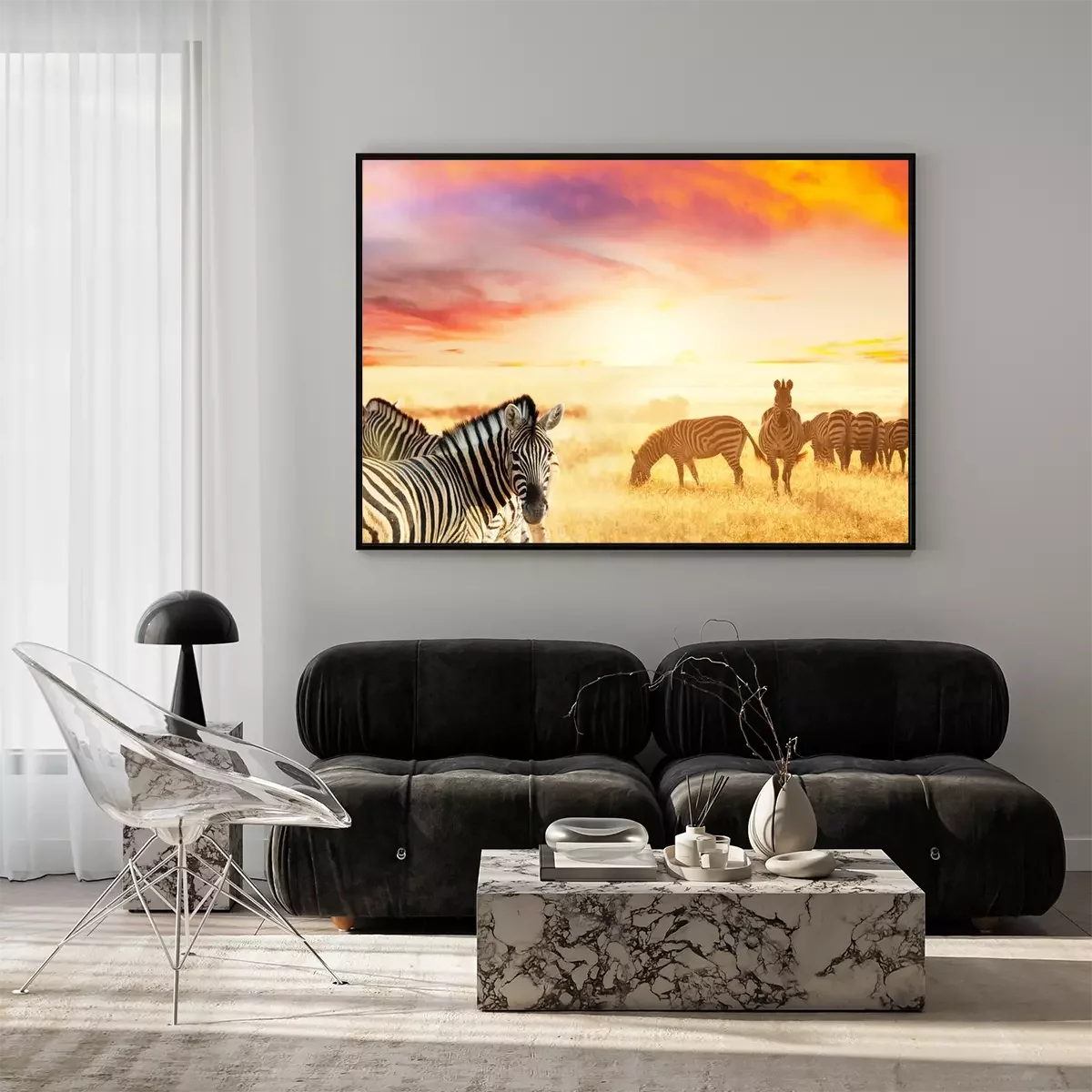 Zwart-witte dieren en zonsondergang