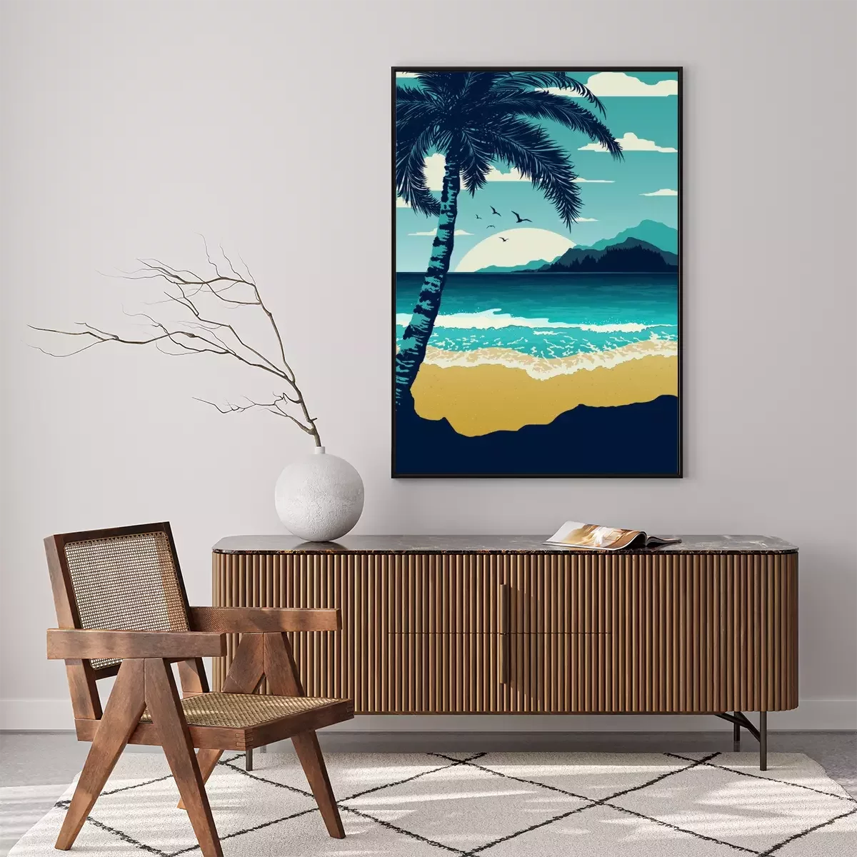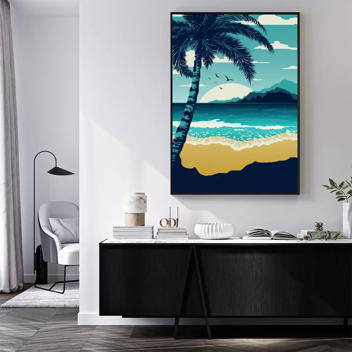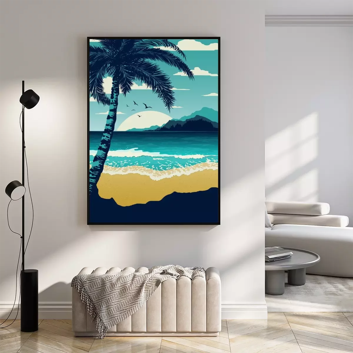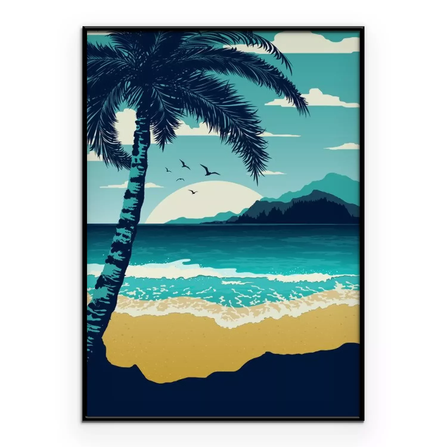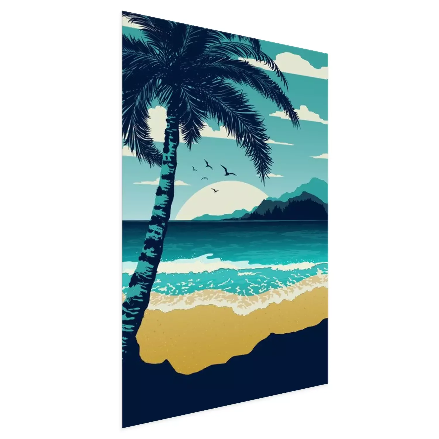 Poster: Zee en strand palmbladeren