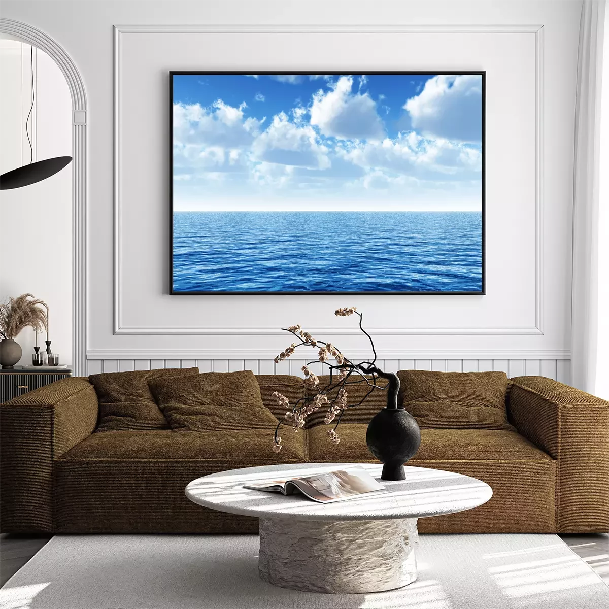Poster: Zee onder witte wolken
