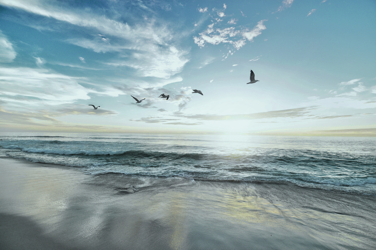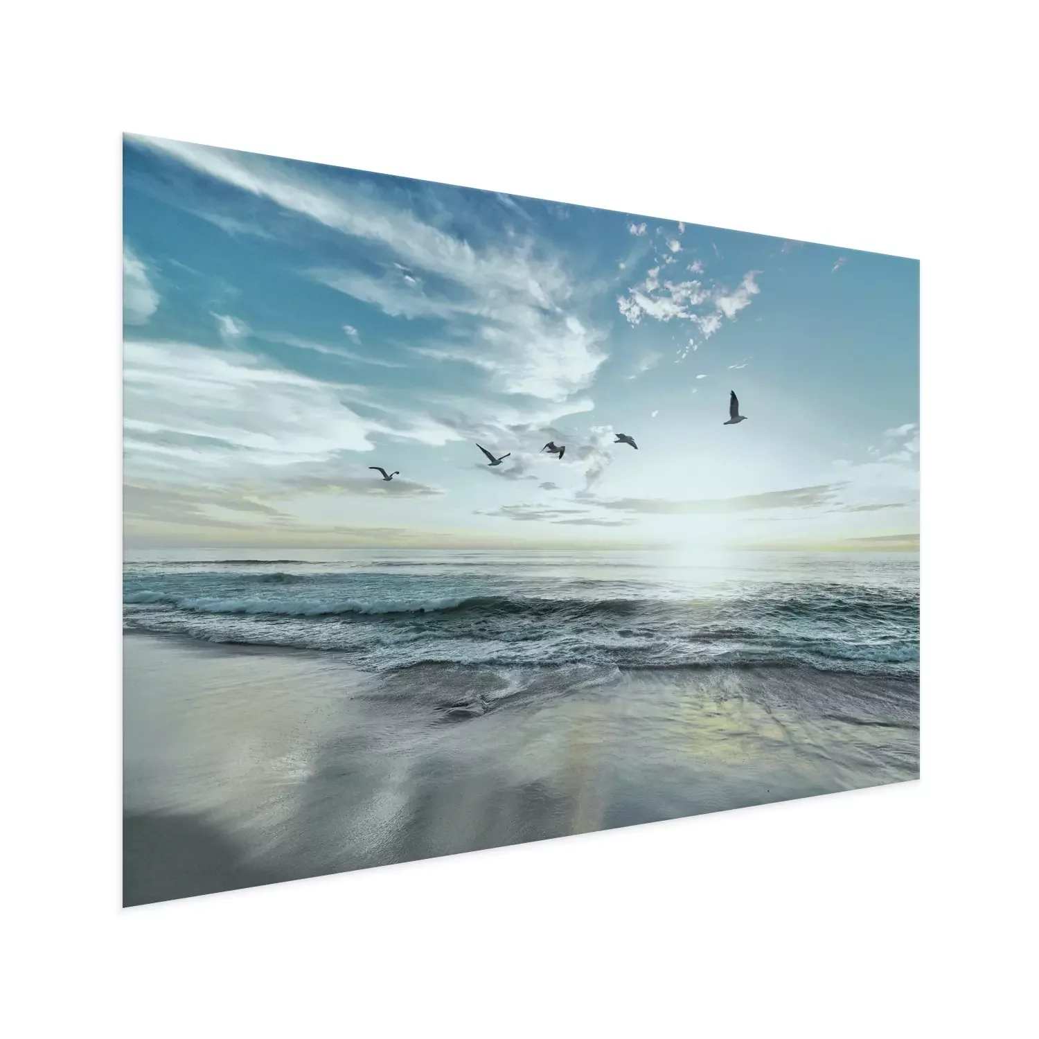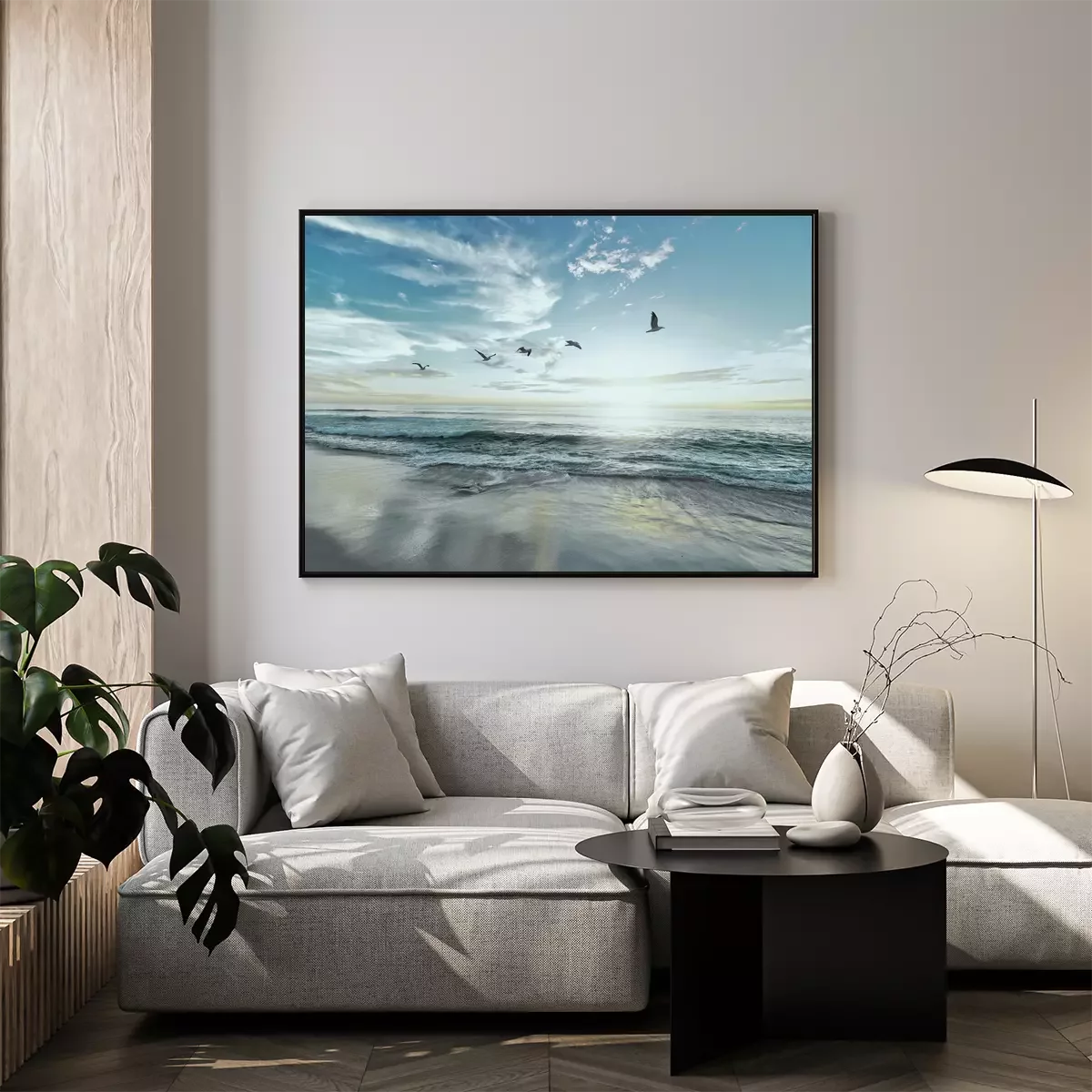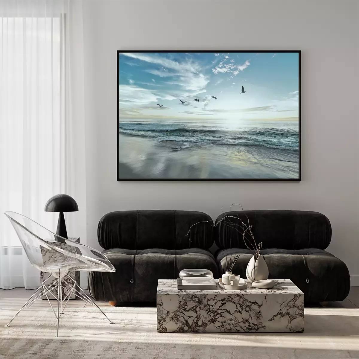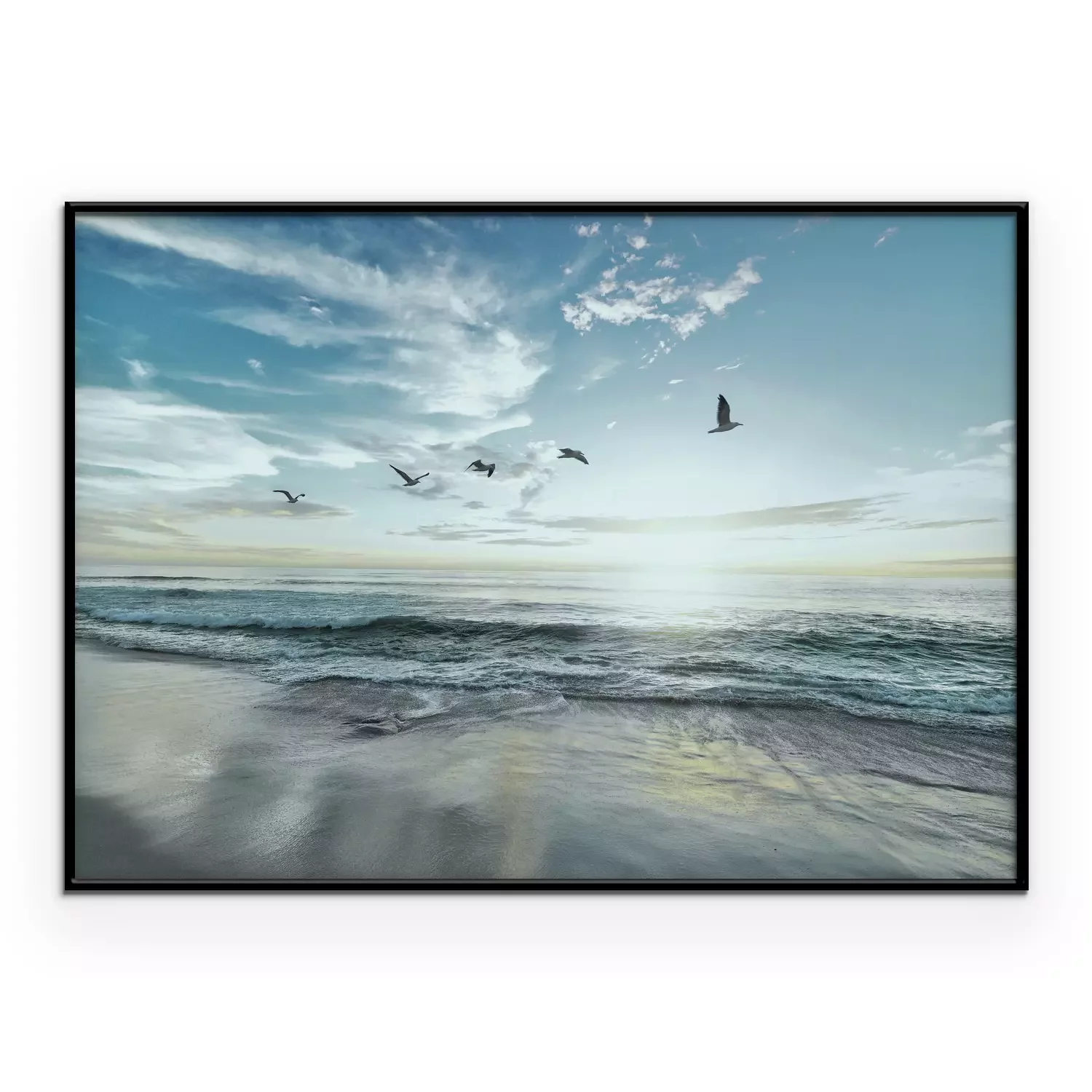 Poster: Zeegezicht met meeuwen bij zonsopgang
