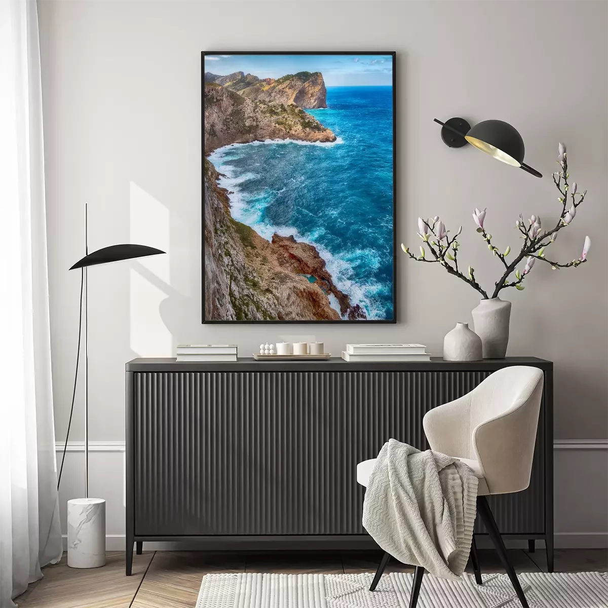 Poster: Zeegezichten en rotsachtige klif