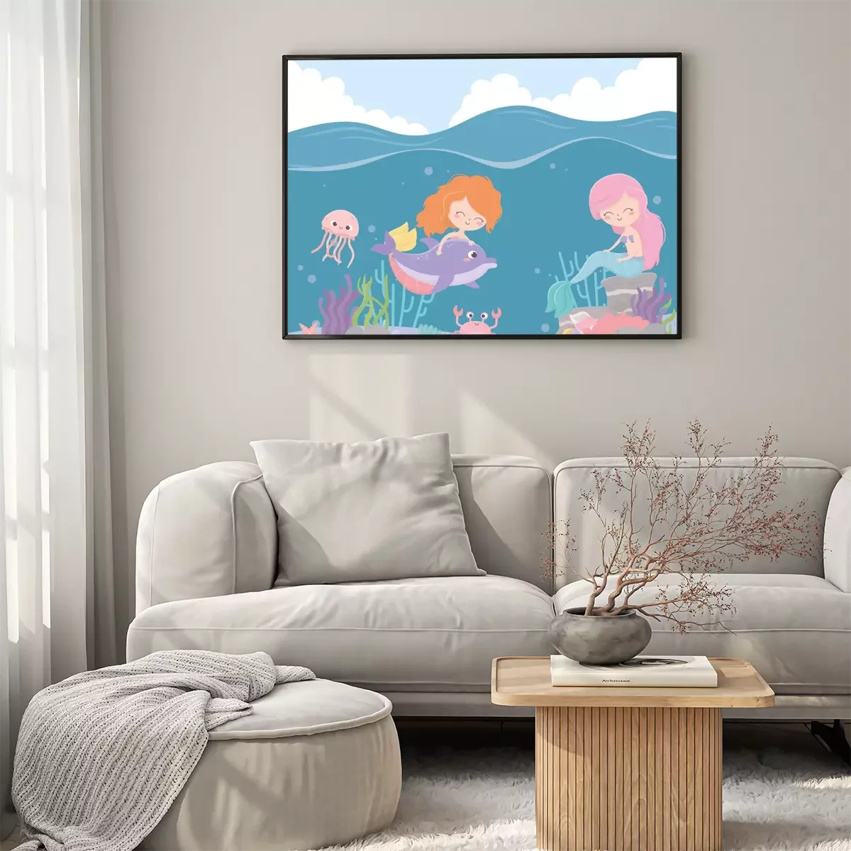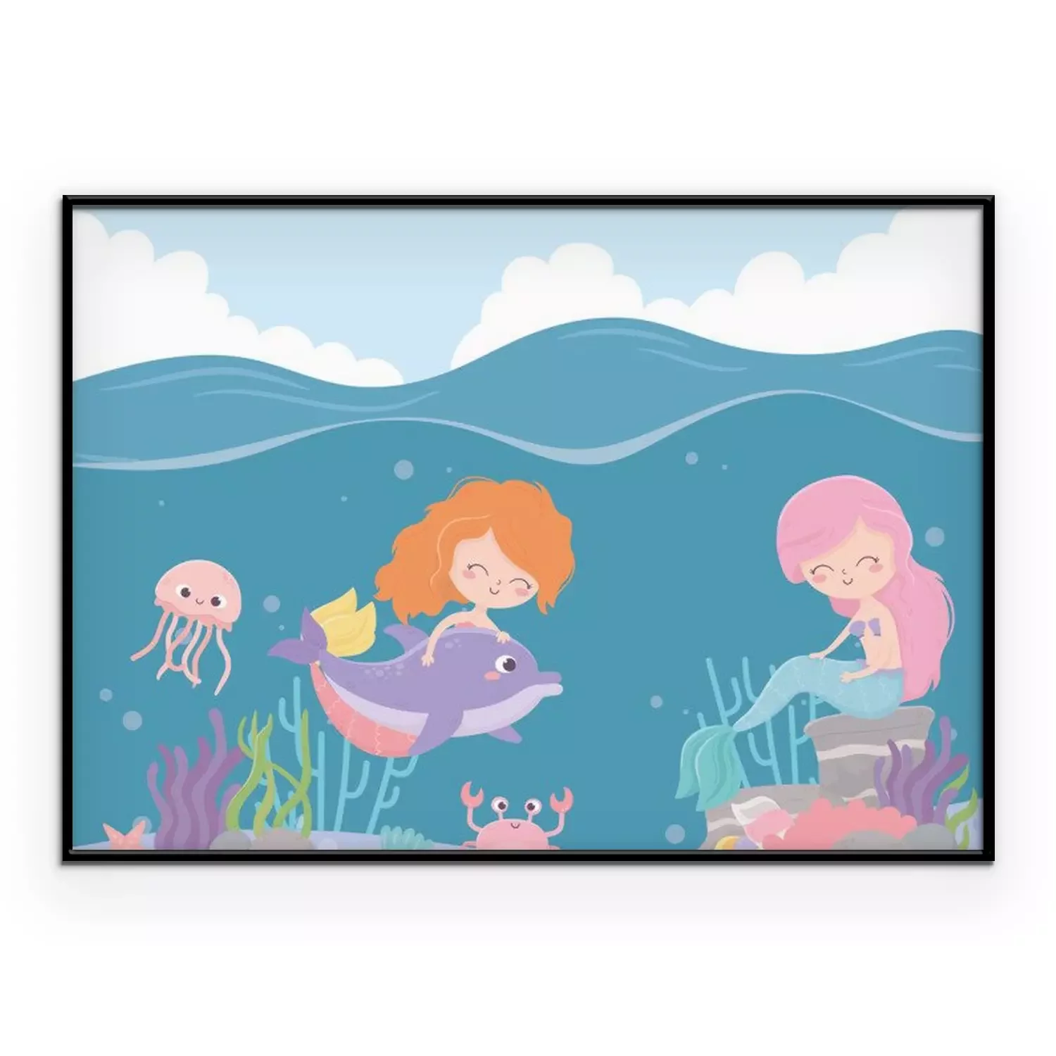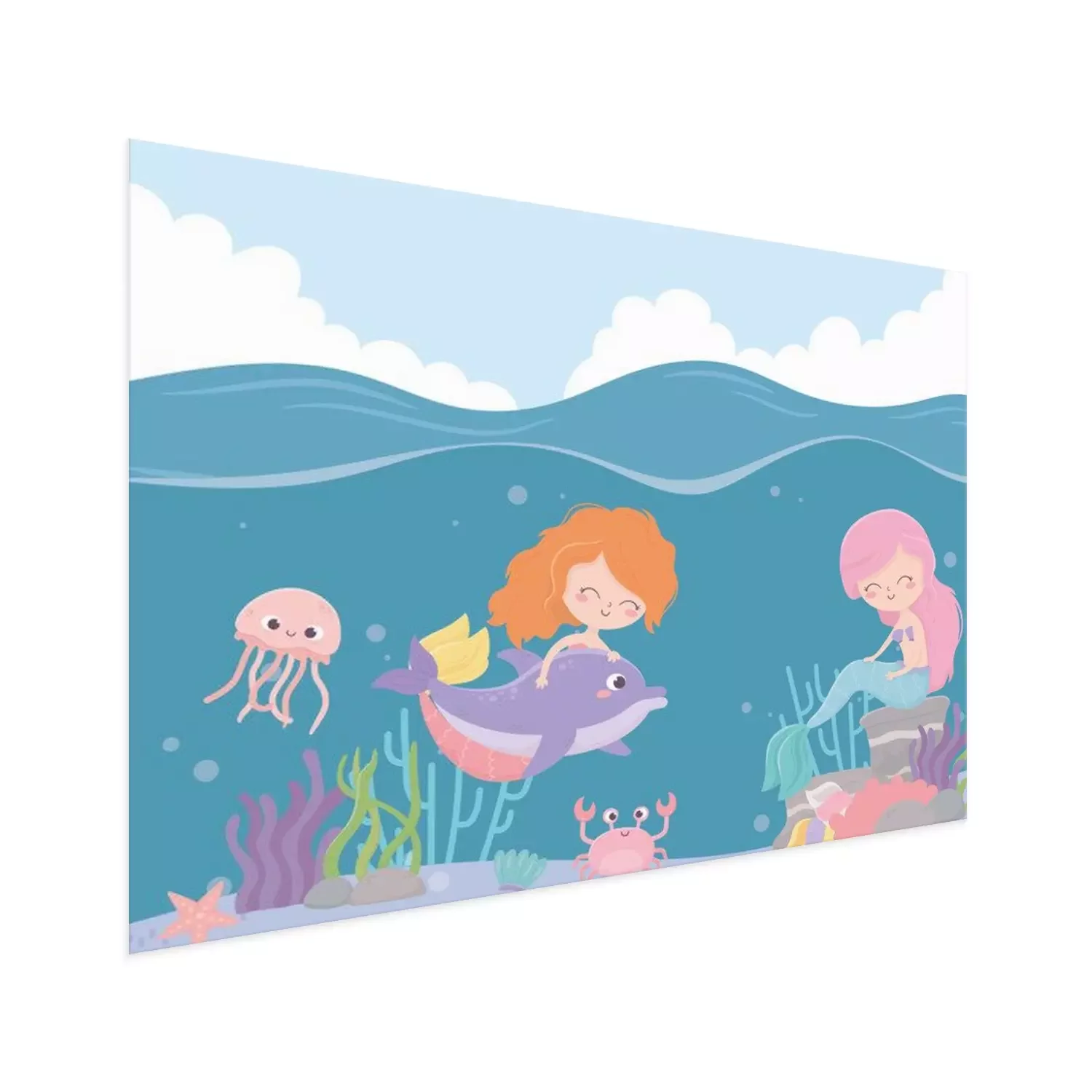 Poster: Zeemeerminnen die plezier hebben onder de golven