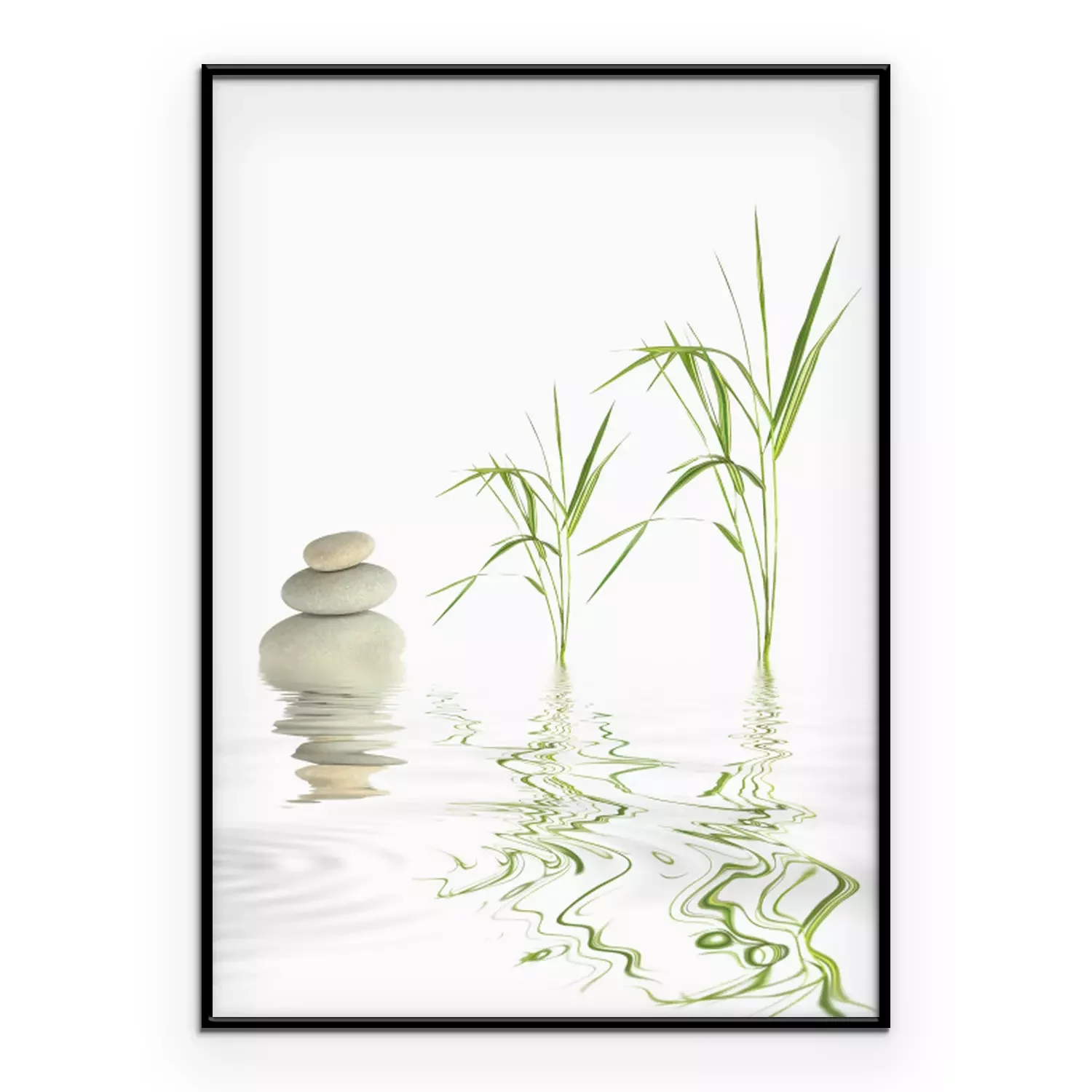 Poster: Zenstenen en bamboegras op het wateroppervlak