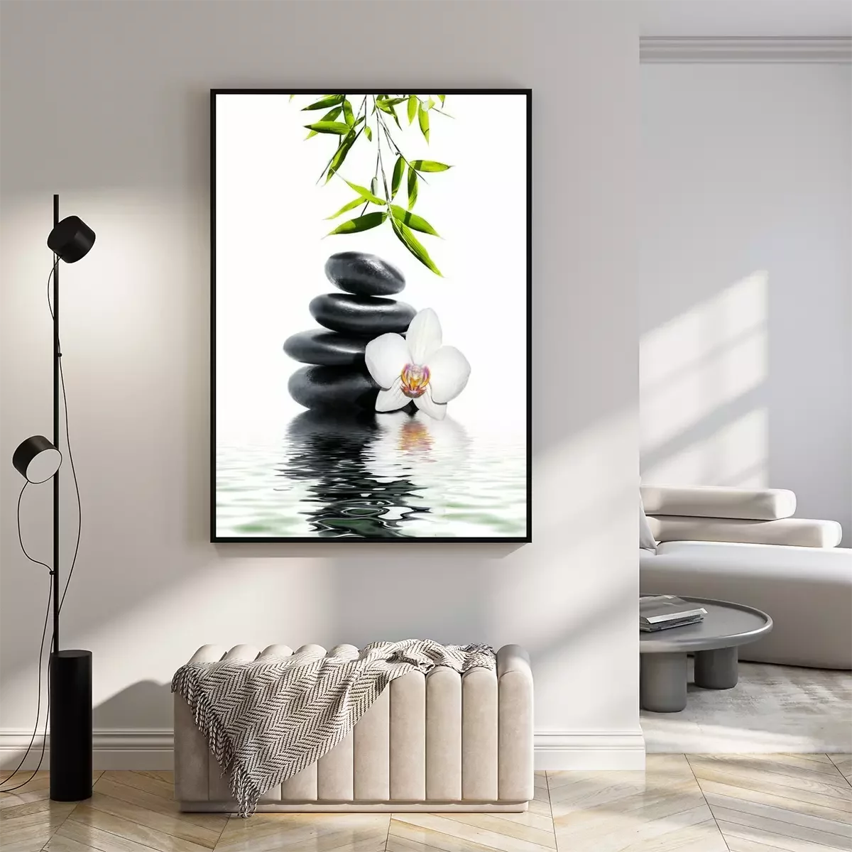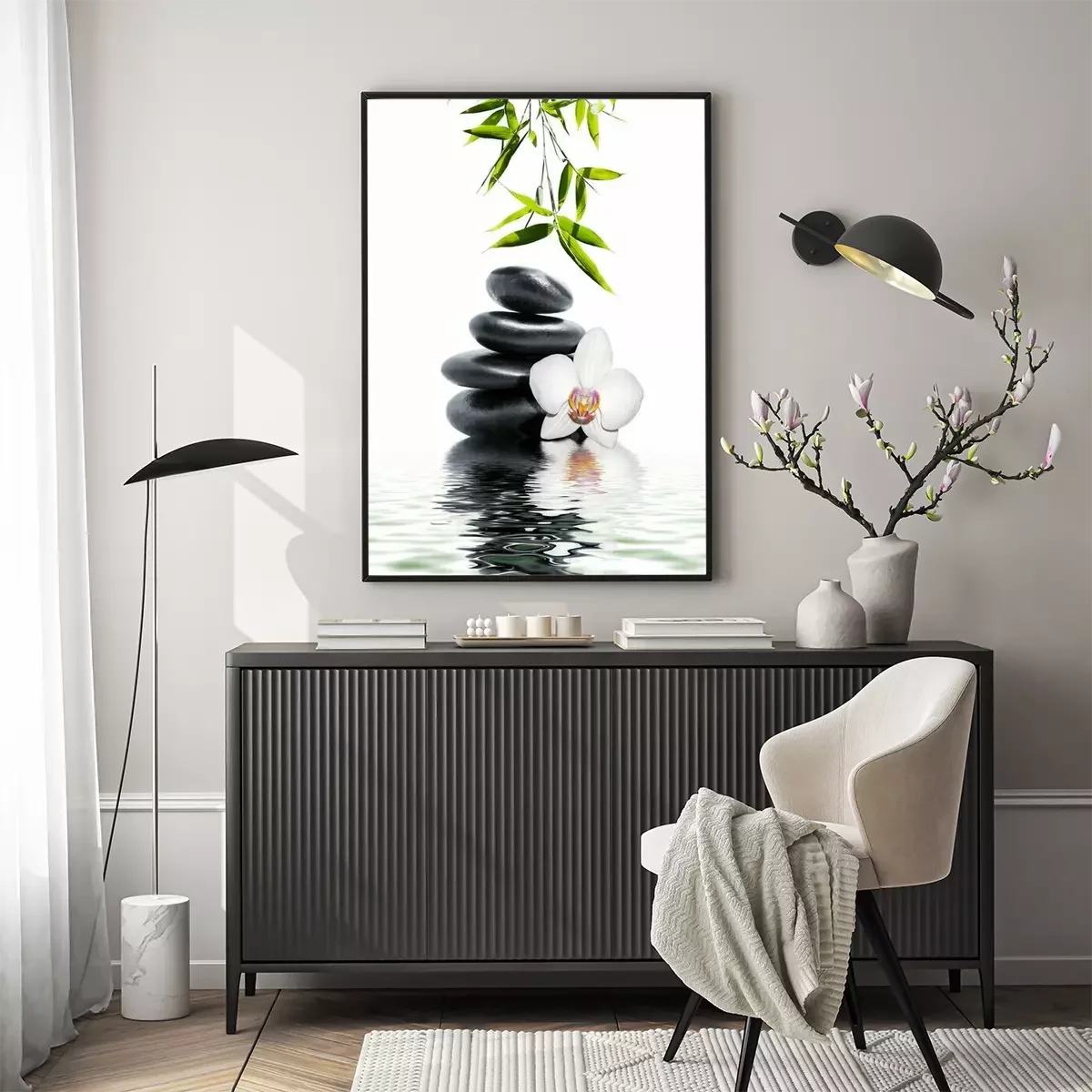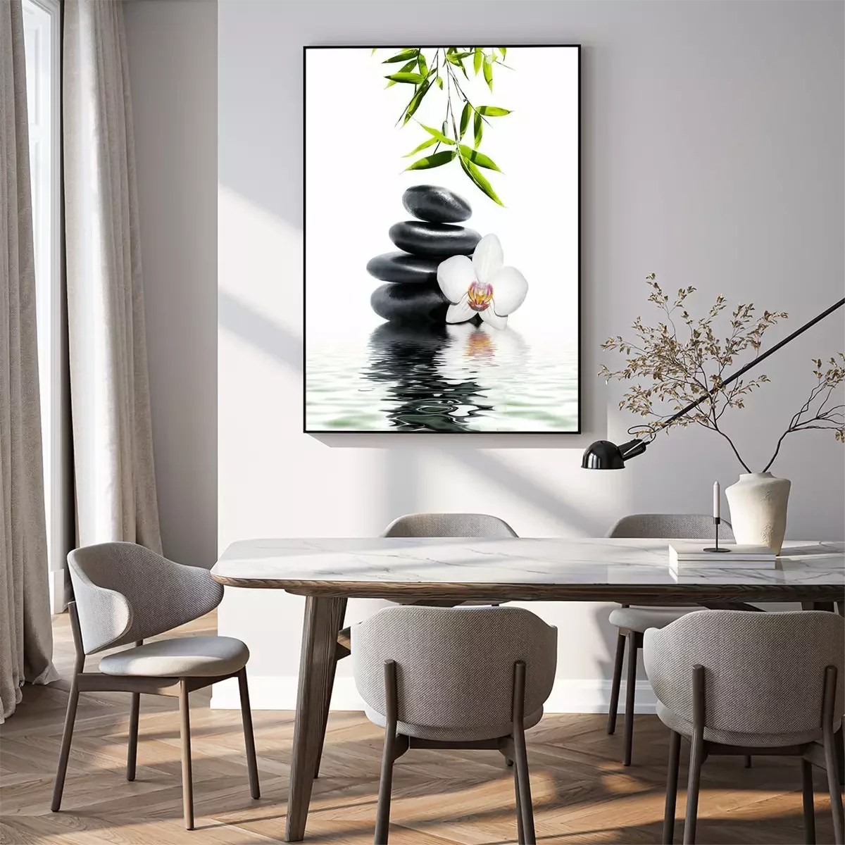 Poster: Zenstenen en orchidee op het water