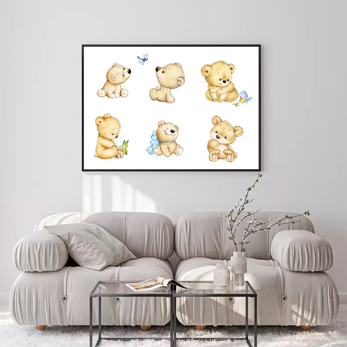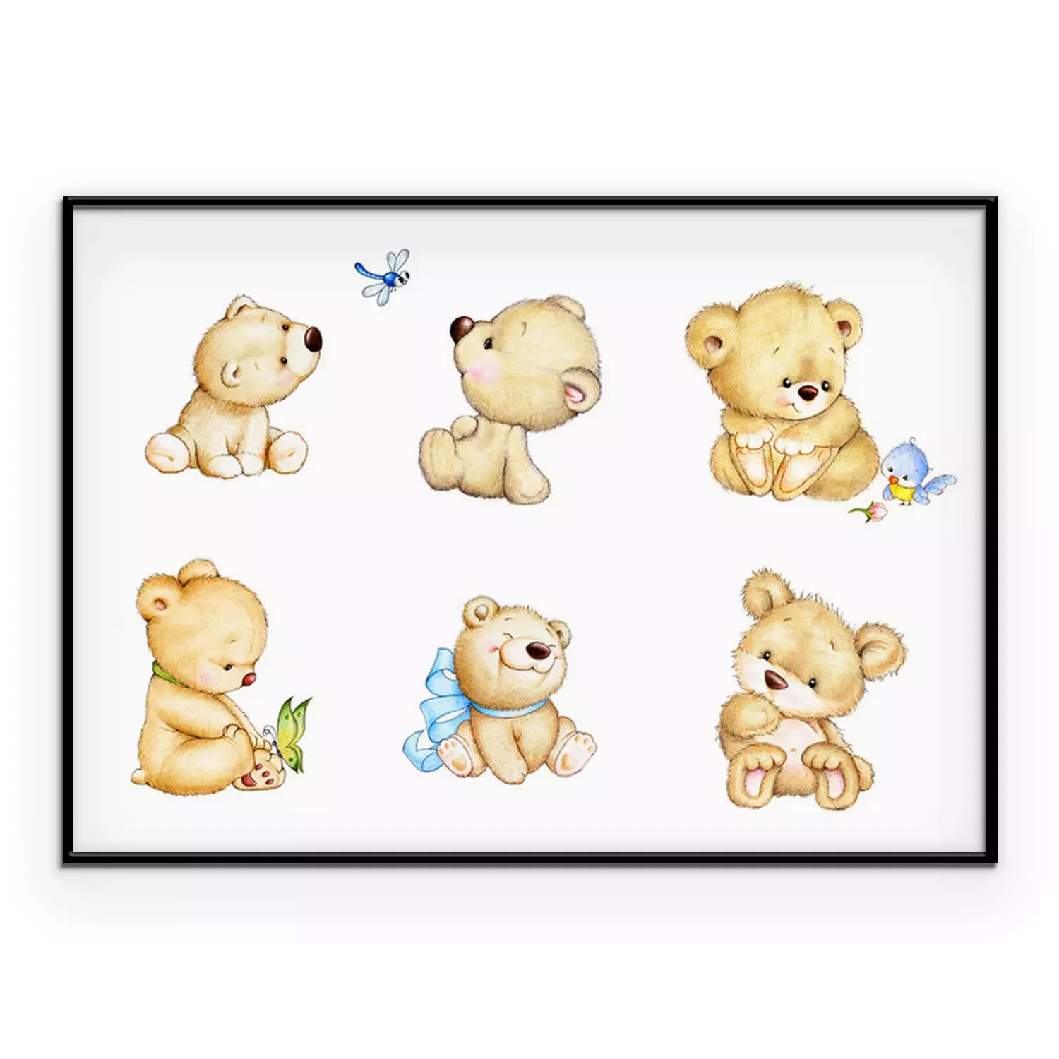 Poster: Zes beren, een vlinder, een libel en een vogel