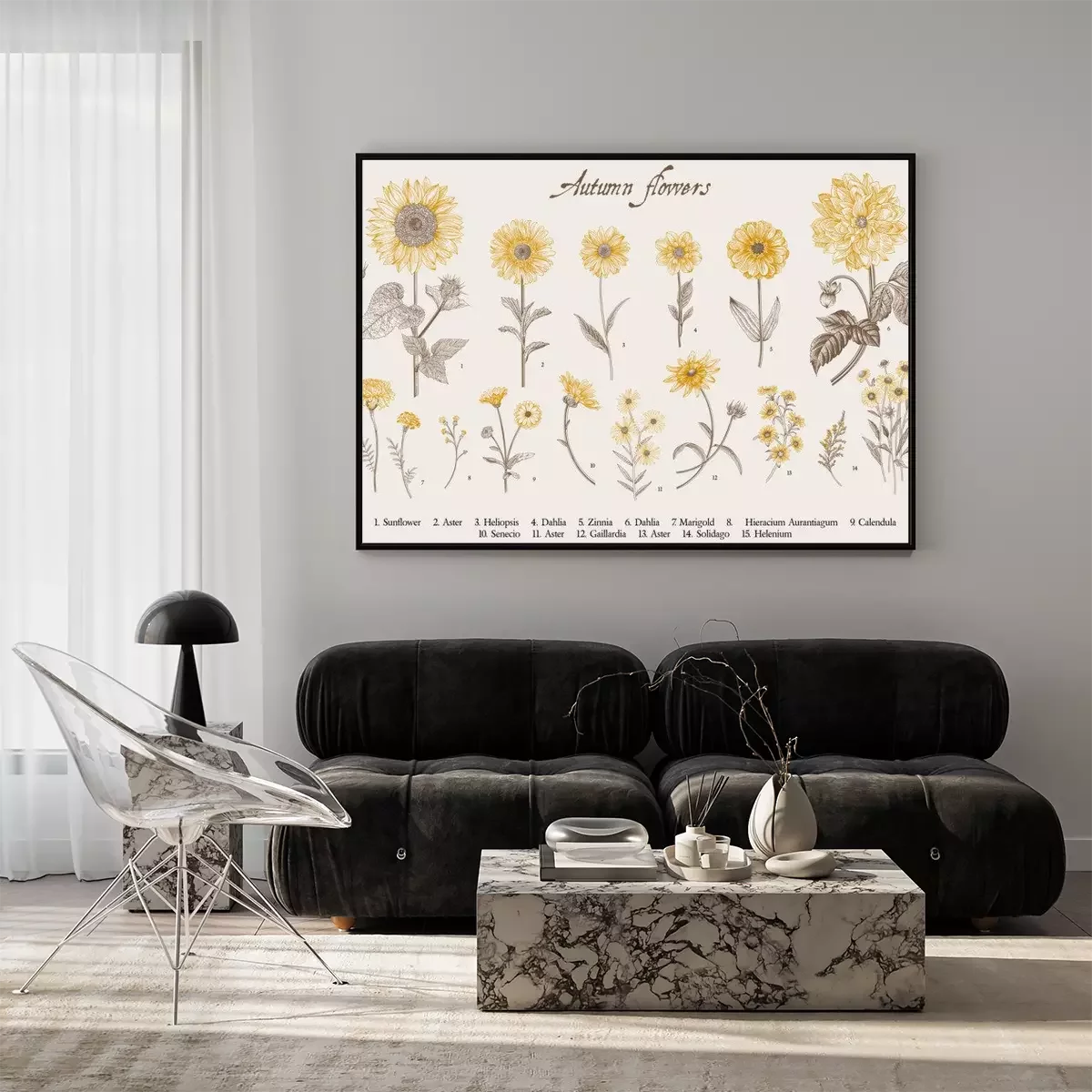 Poster Zonnebloemen en andere gele bloemen tekenen