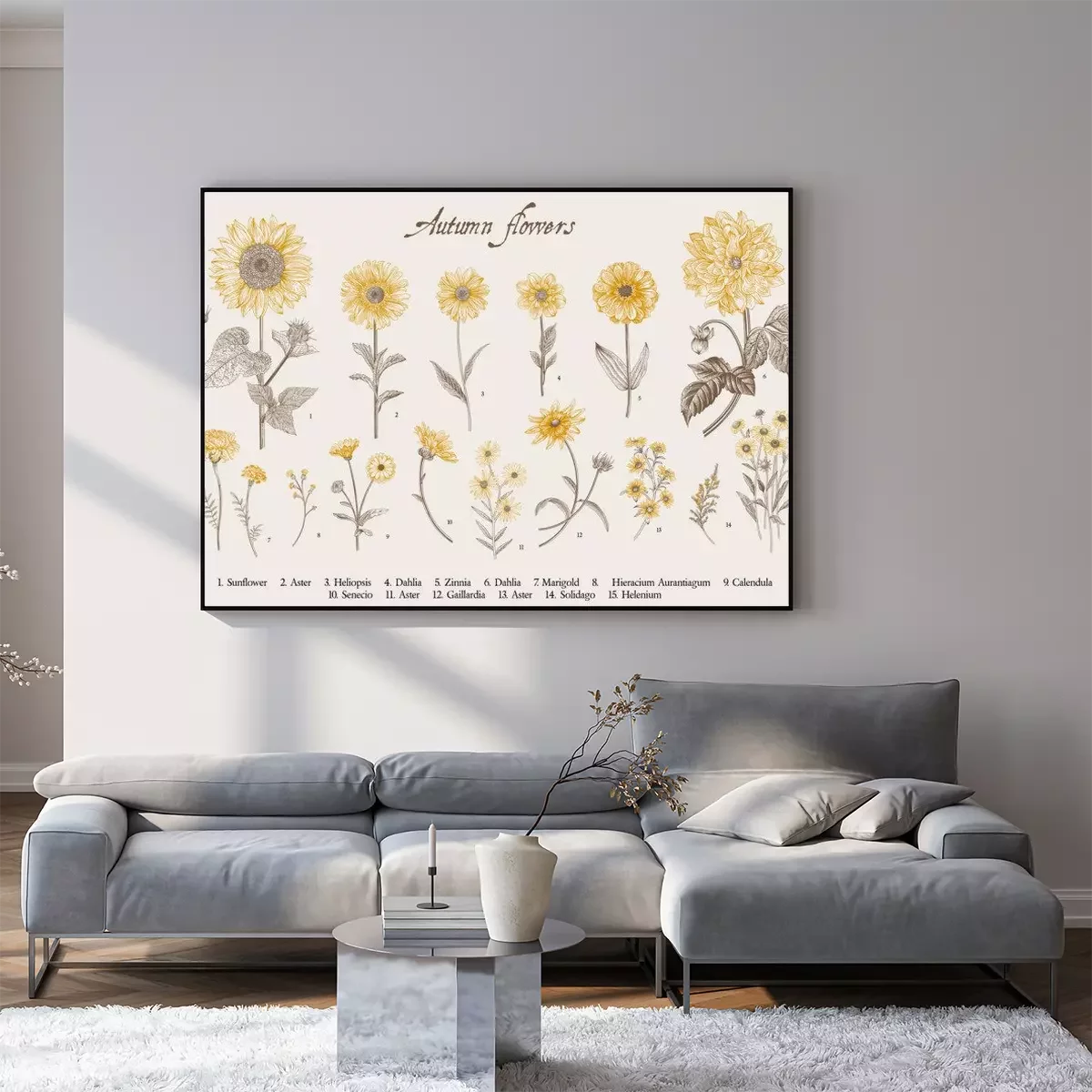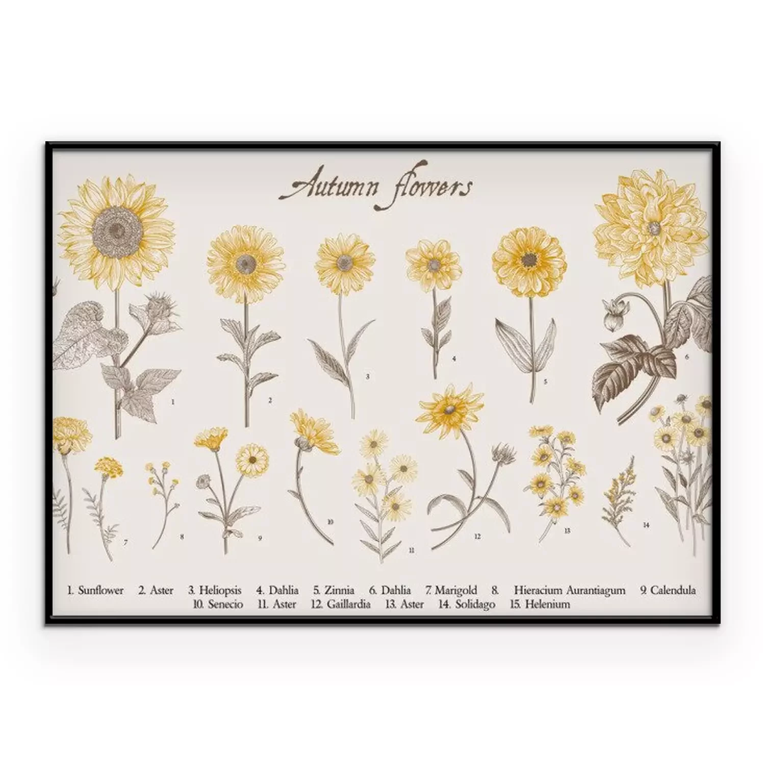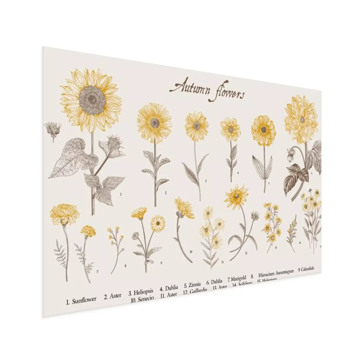 Poster: Zonnebloemen en andere gele bloemen tekenen