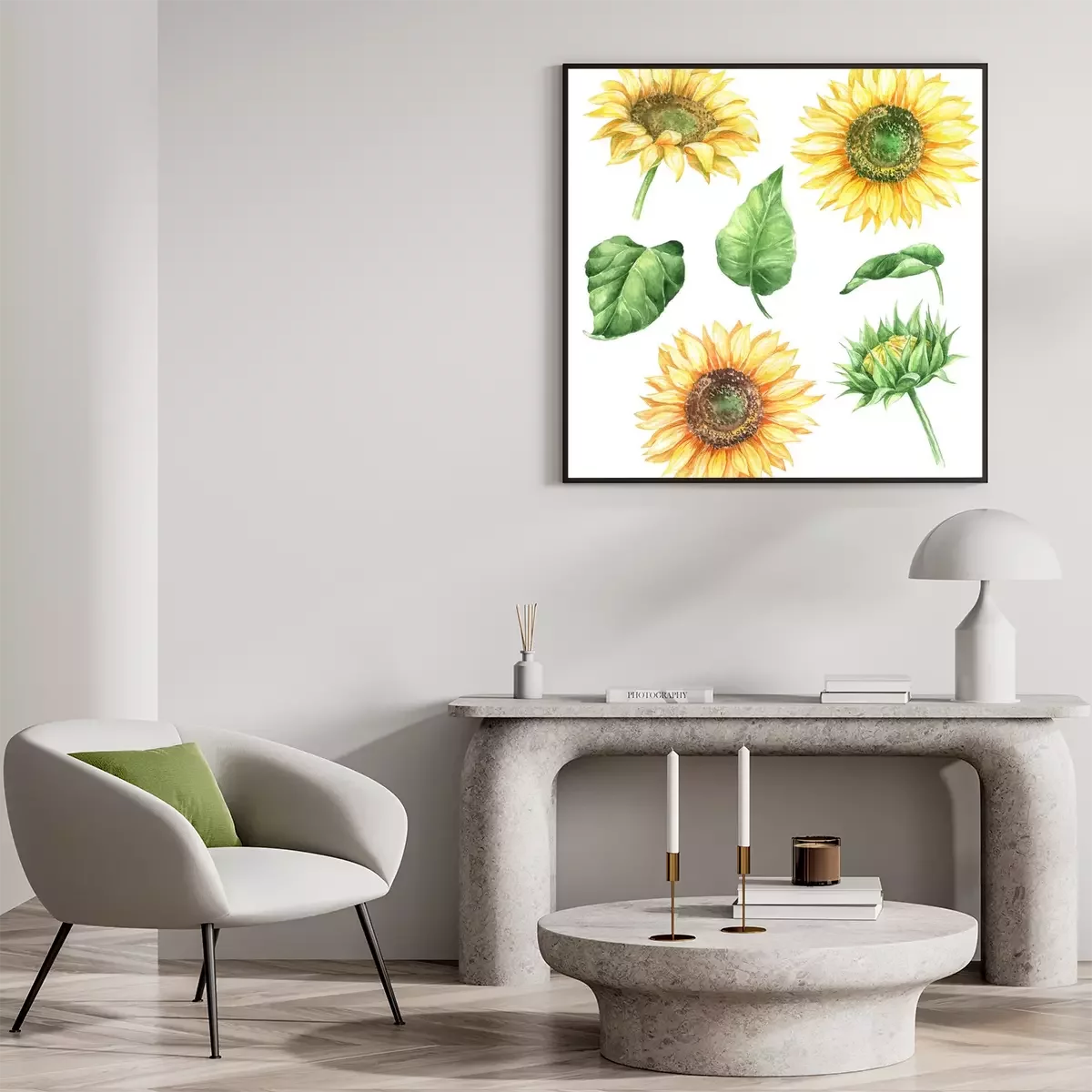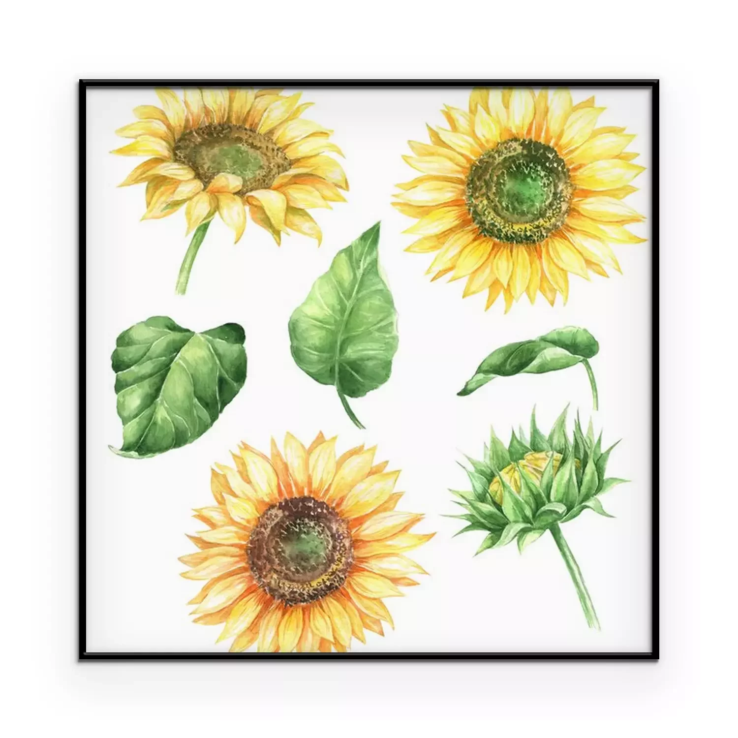 Poster Zonnebloemen tekenen met drie bloemen en een knop