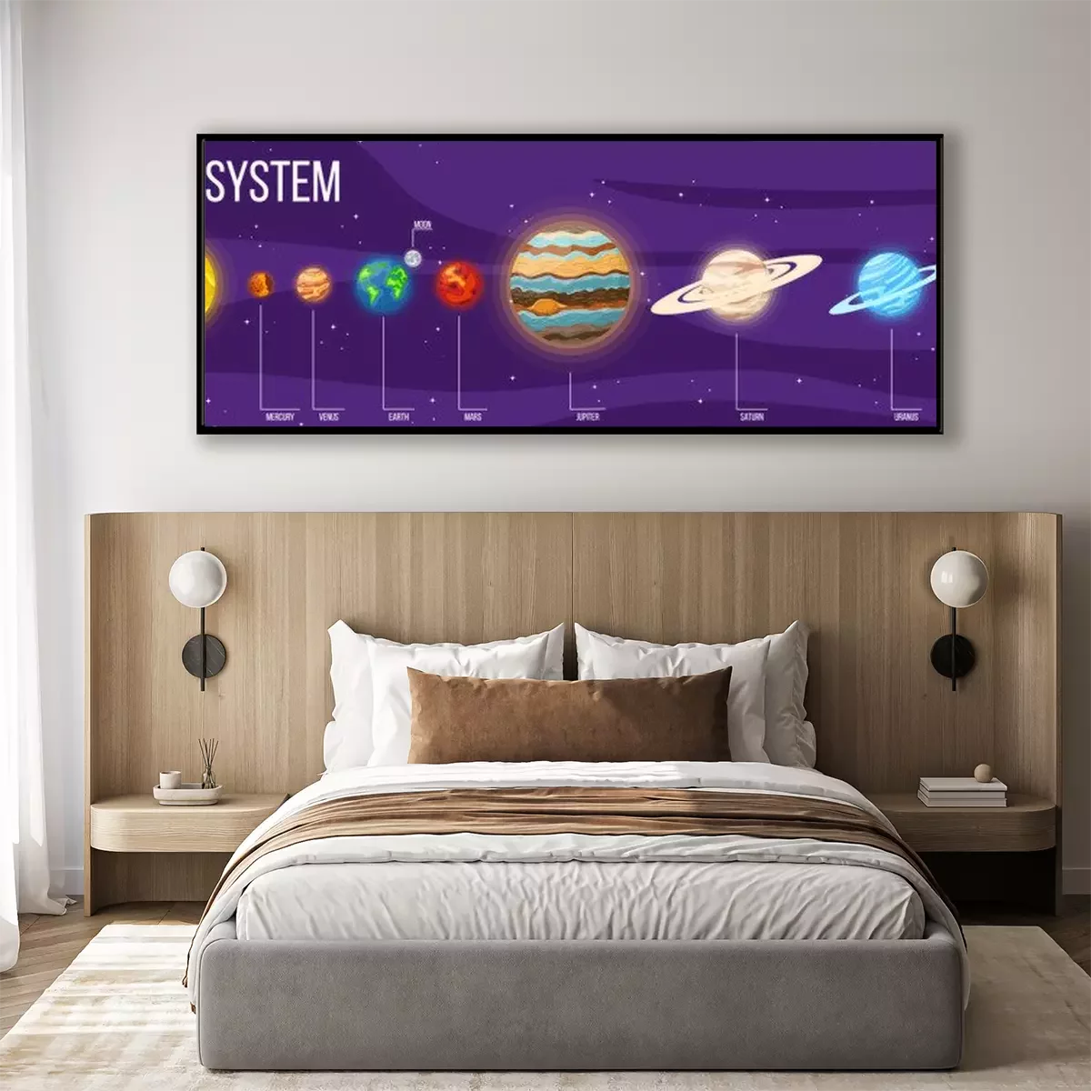 Poster: Zonnestelsel voor kinderen op een paarse achtergrond