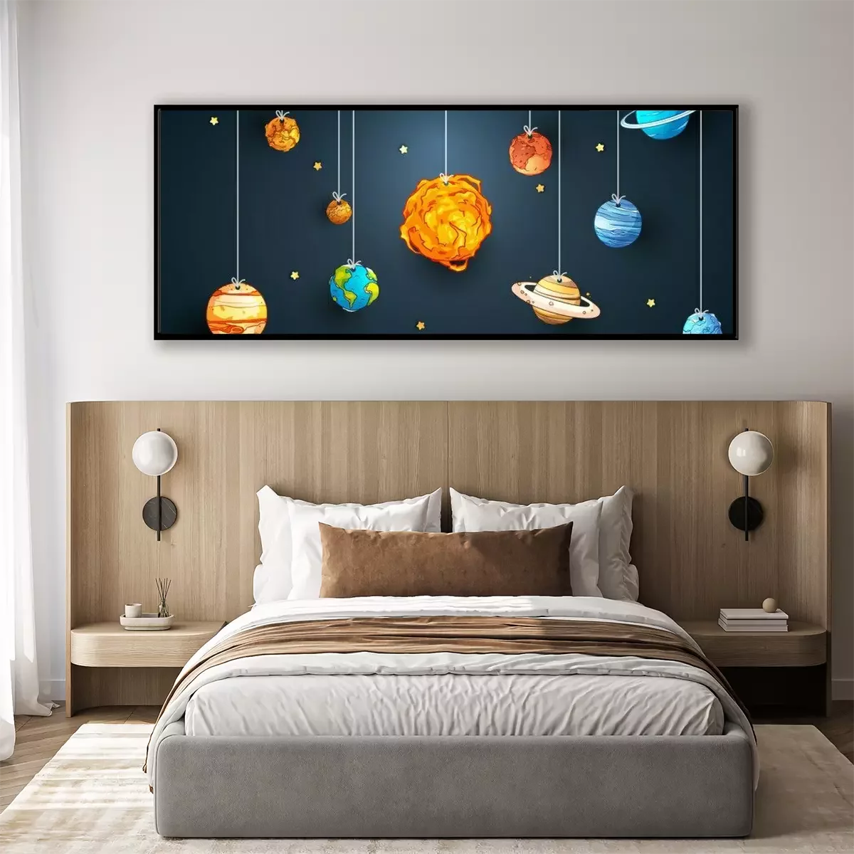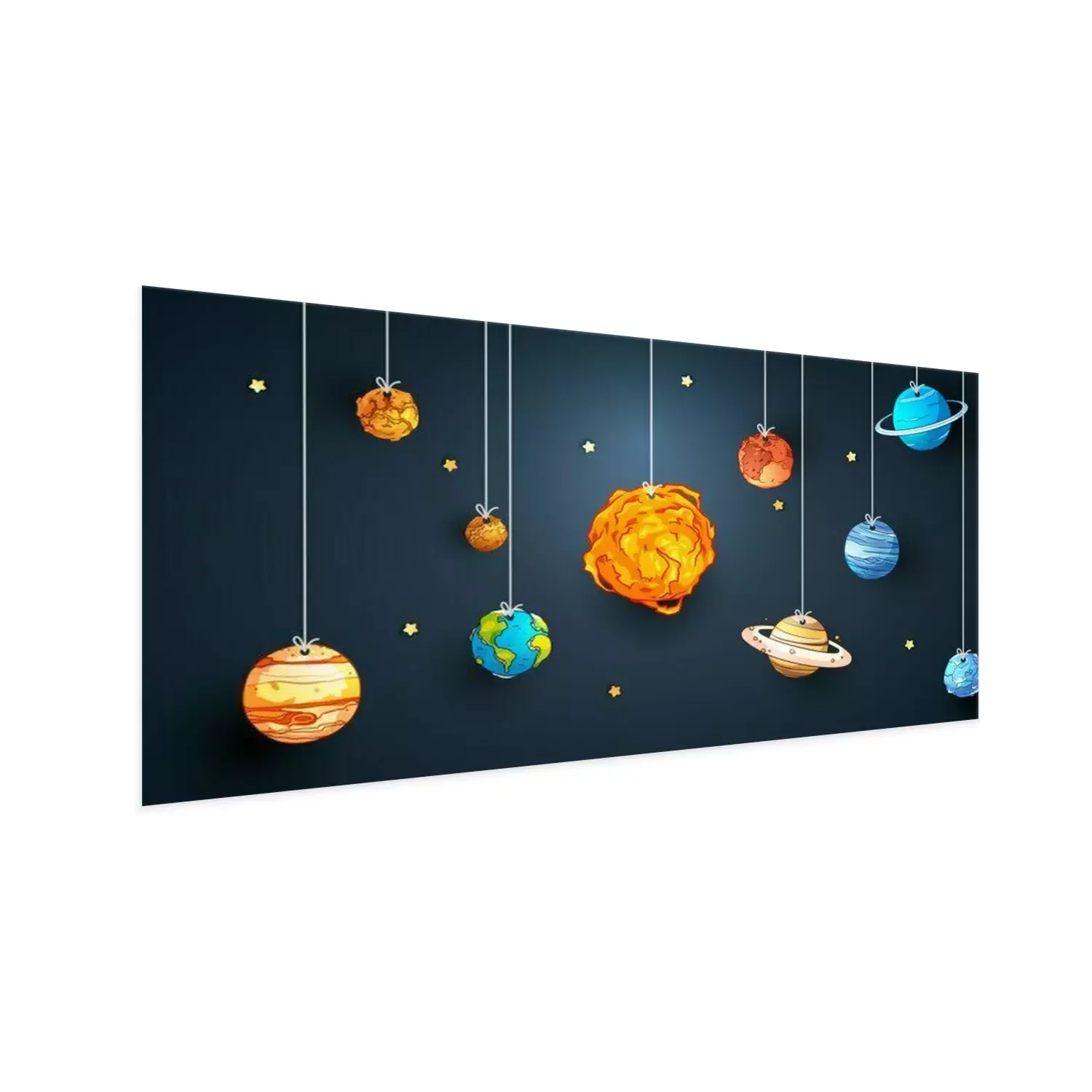 Poster Zonnestelsel voor kinderen opgehangen aan touwen