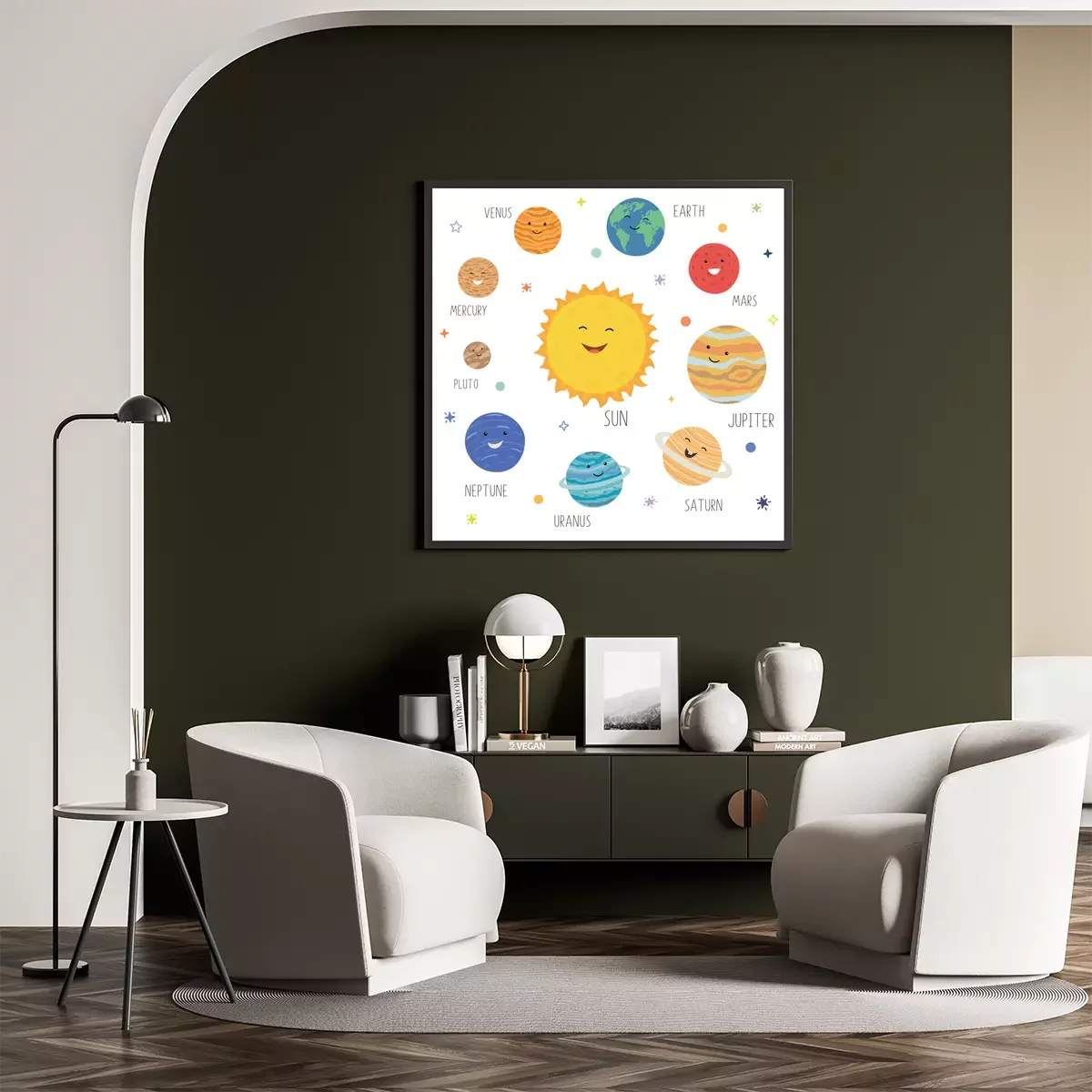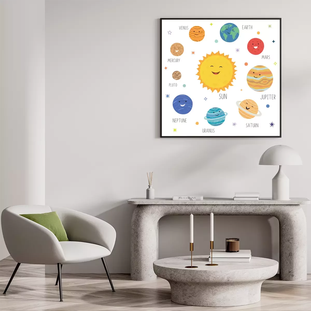 Poster: Zonnestelsel vreugdevolle planeten voor kinderen