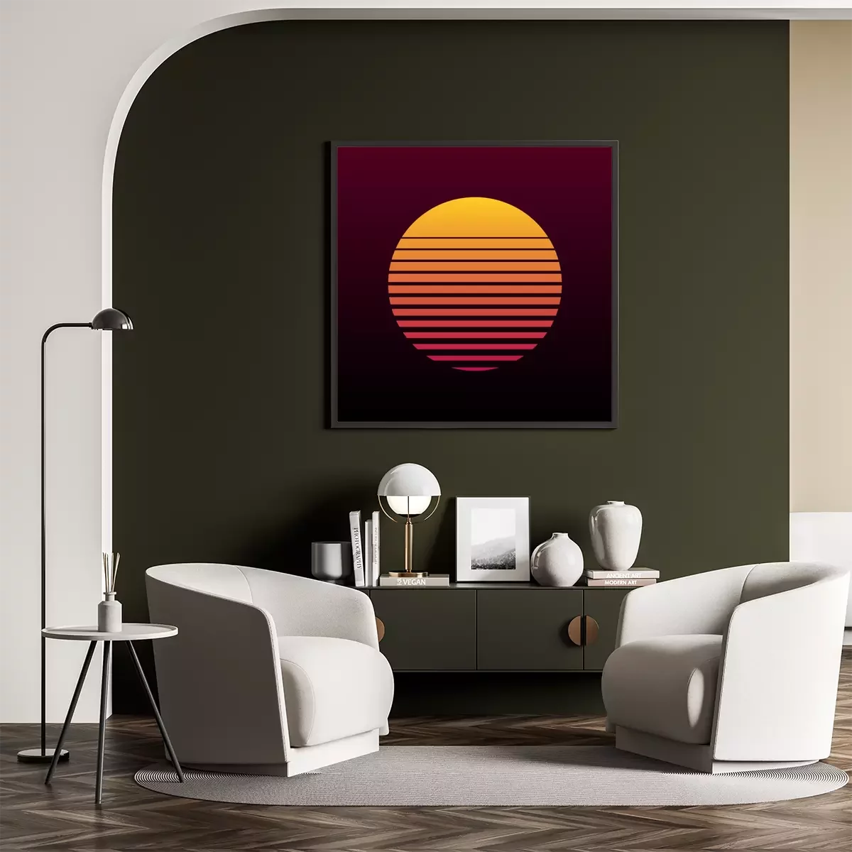 Poster: Zonsondergang op retro grafiek