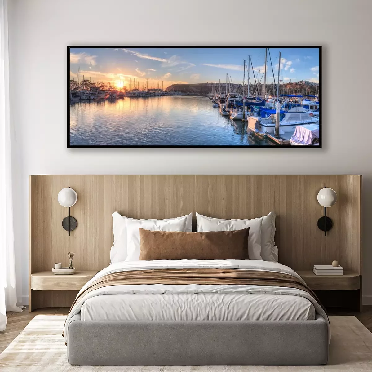 Poster: Zonsondergang over zeilboten in de haven van Dana Point in de herfst.