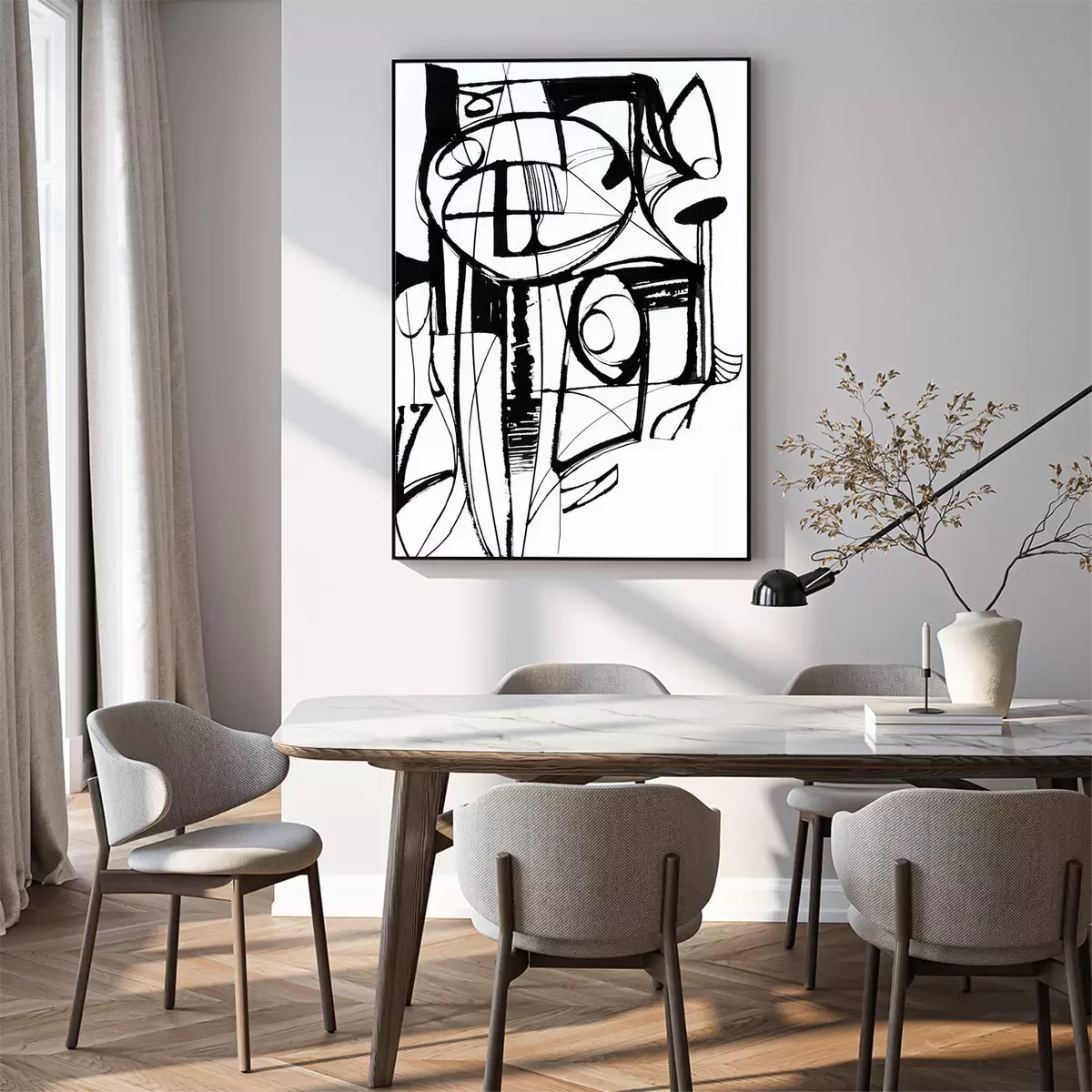 Poster: Zwart-wit abstract motief bestaande uit letters