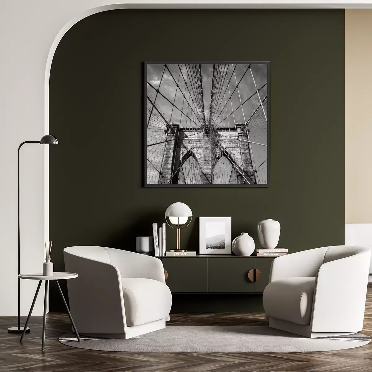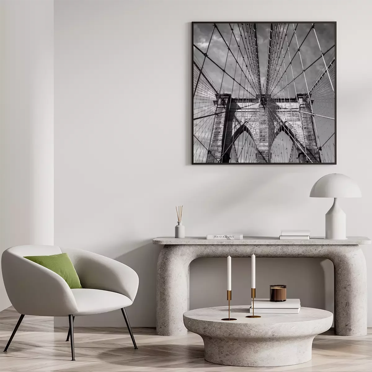 Poster: Zwart-wit Brooklyn Bridge