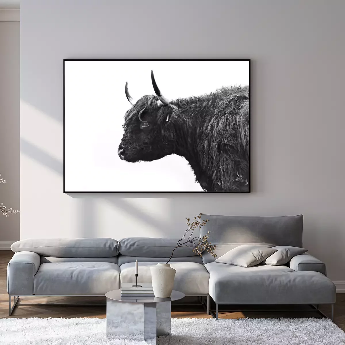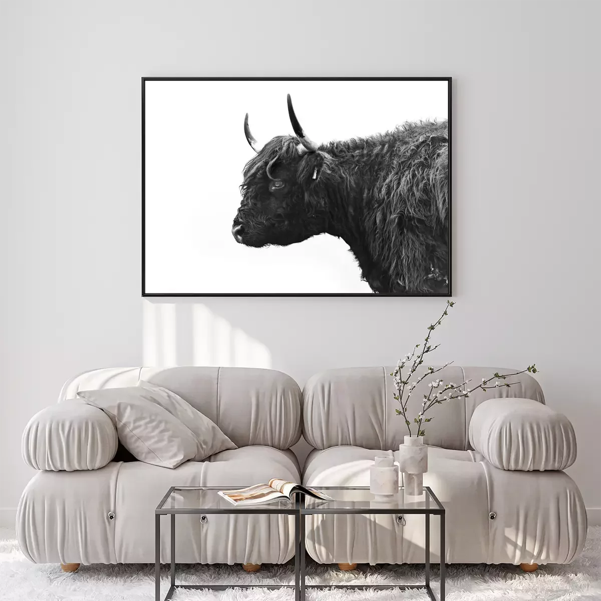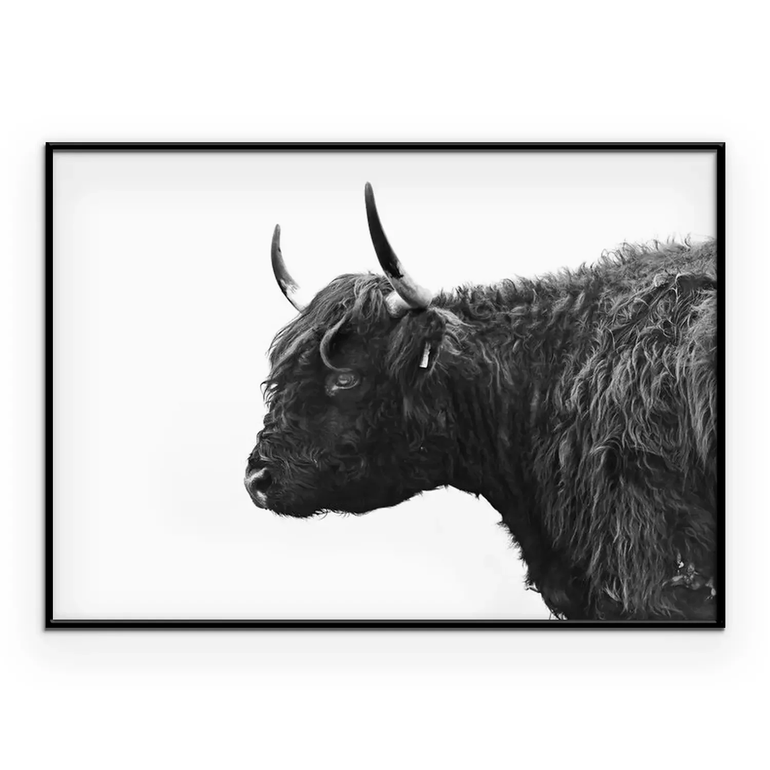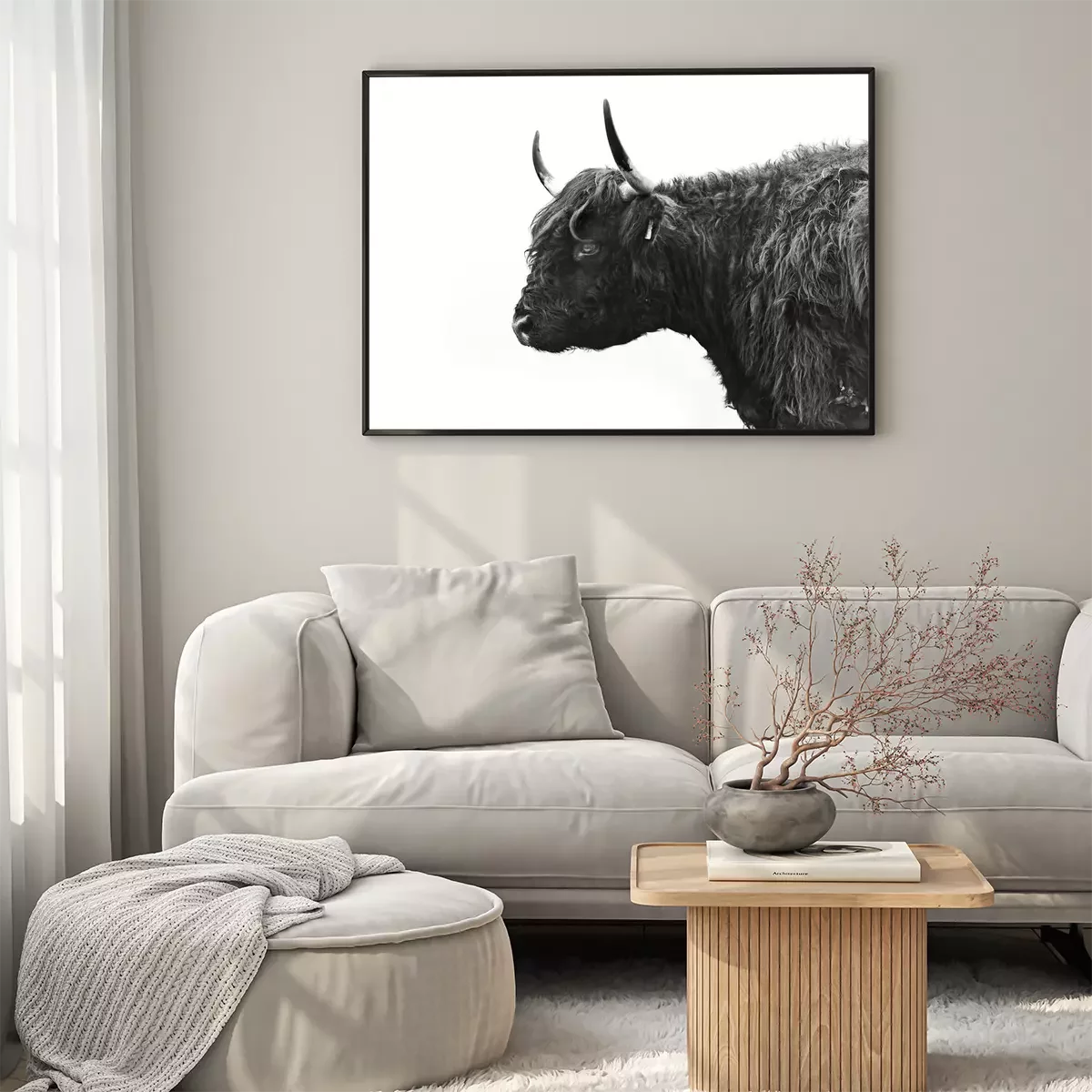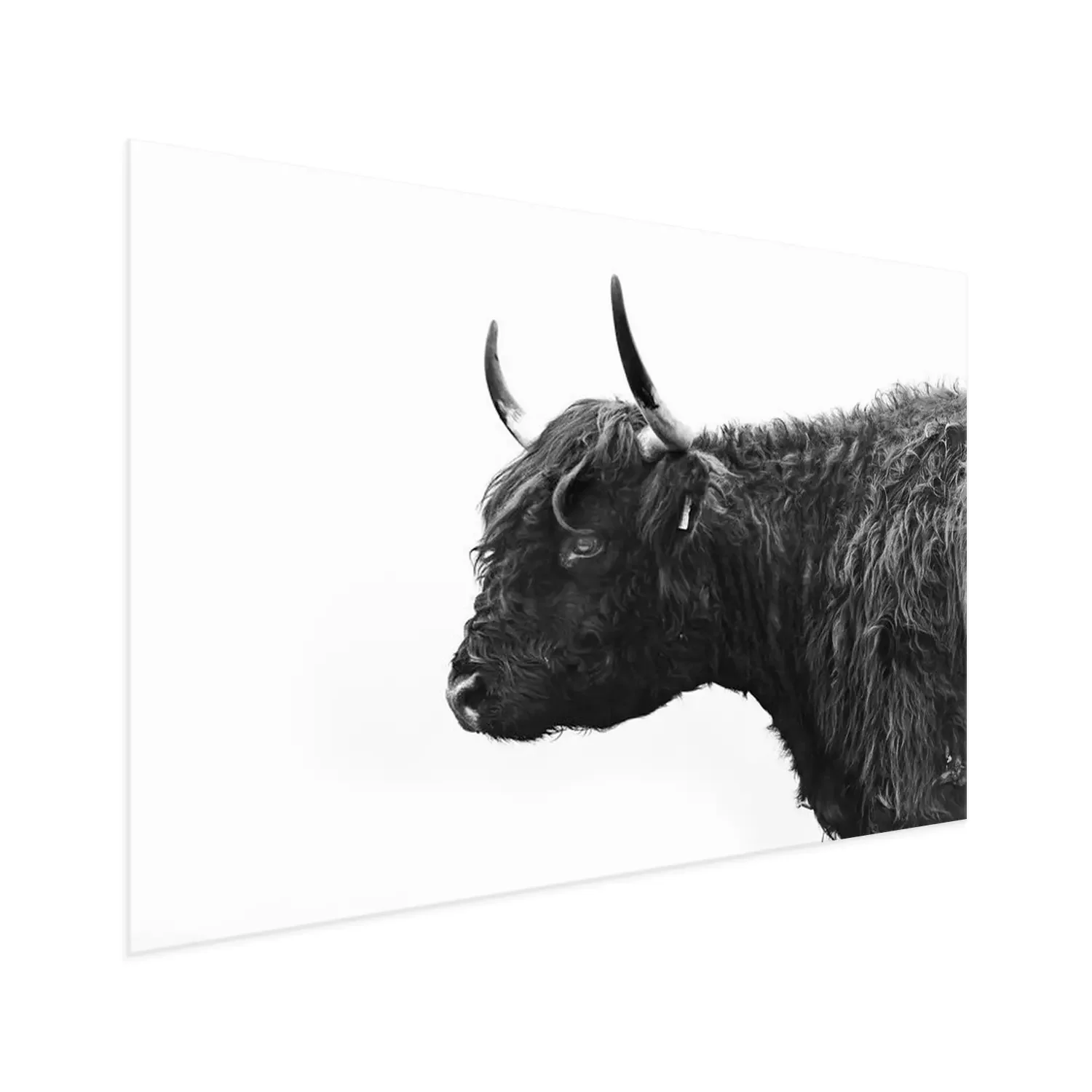 Poster: Zwart-wit foto van een koe vanaf de zijkant