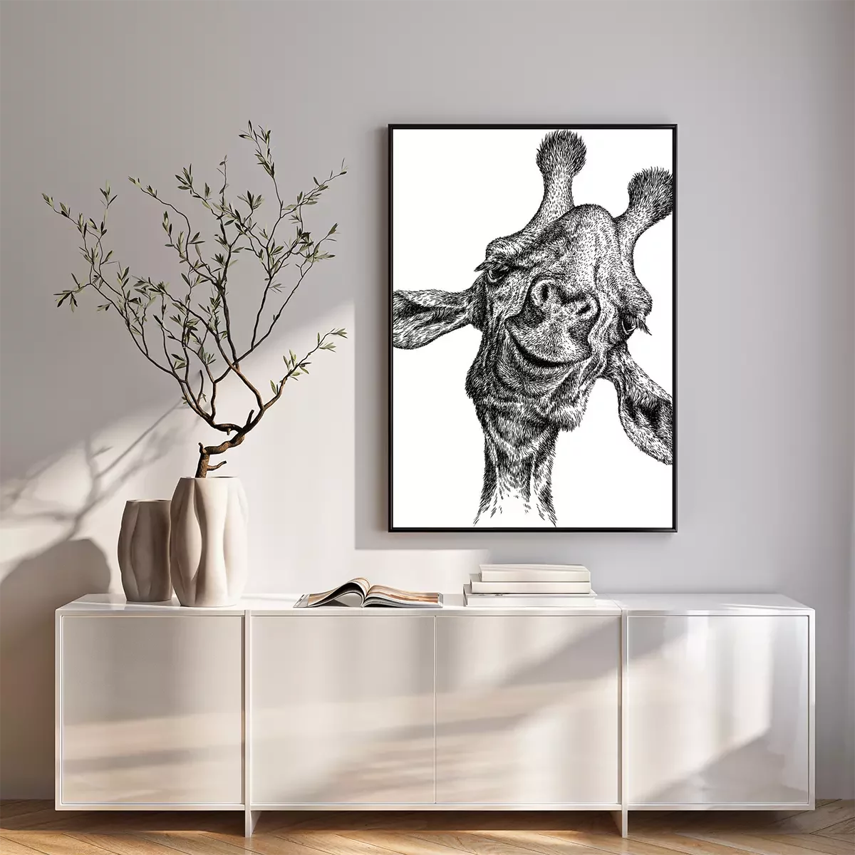 Poster: Zwart-wit girafhoofd