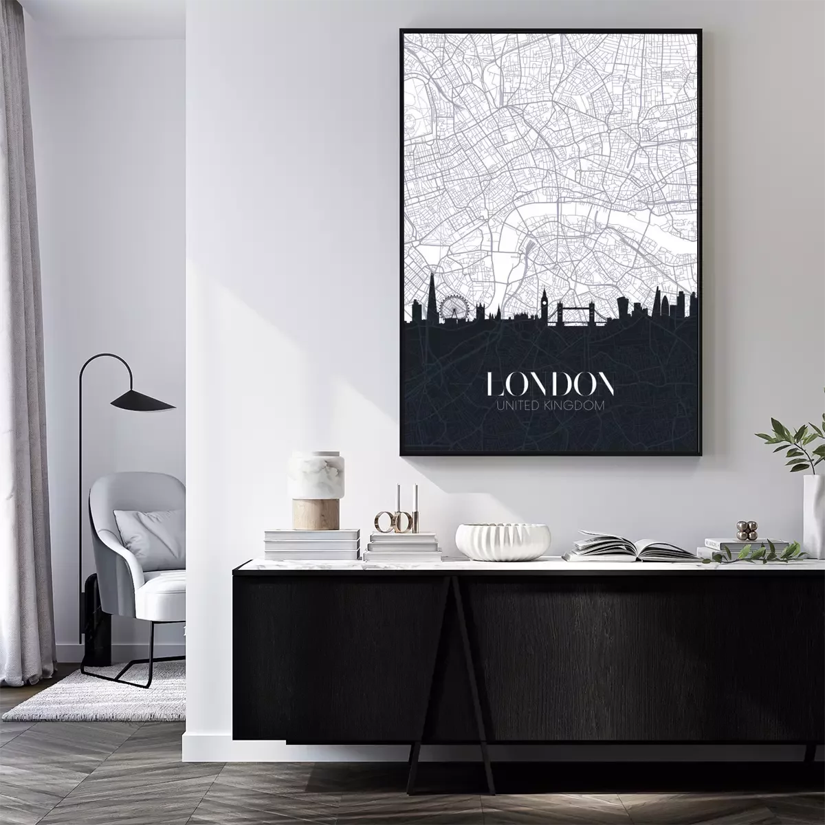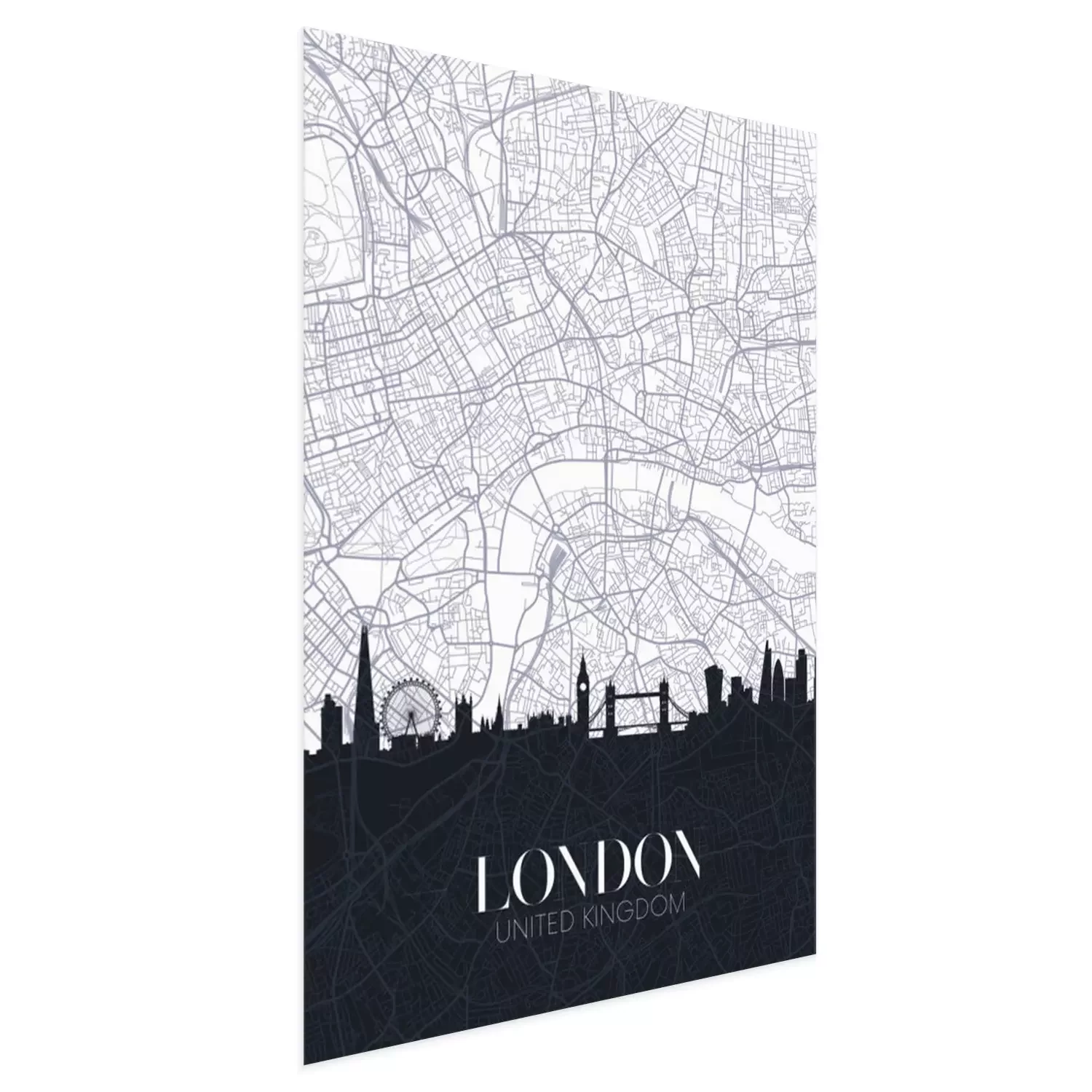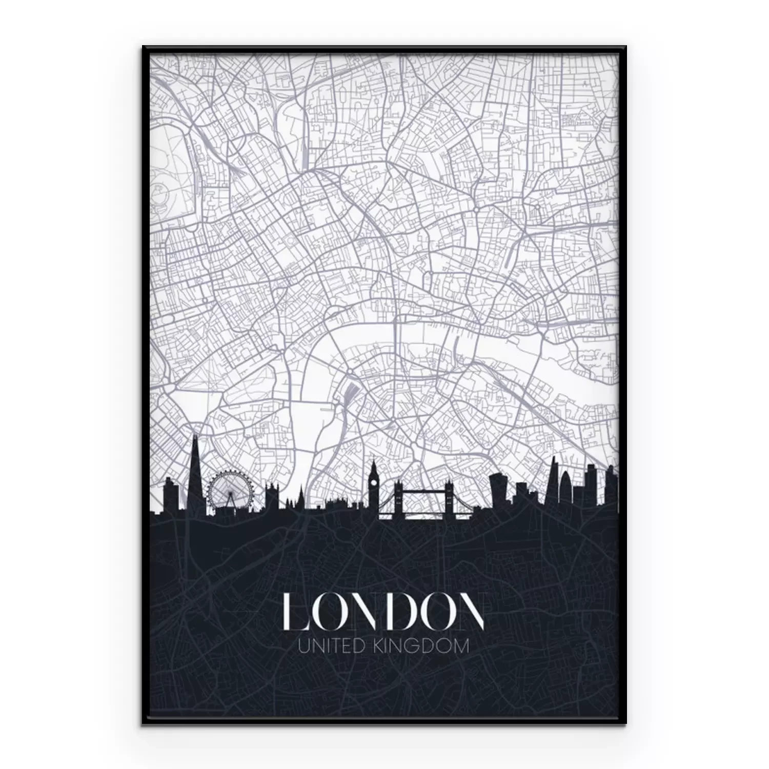 Poster: Zwart-wit kaart van Londen