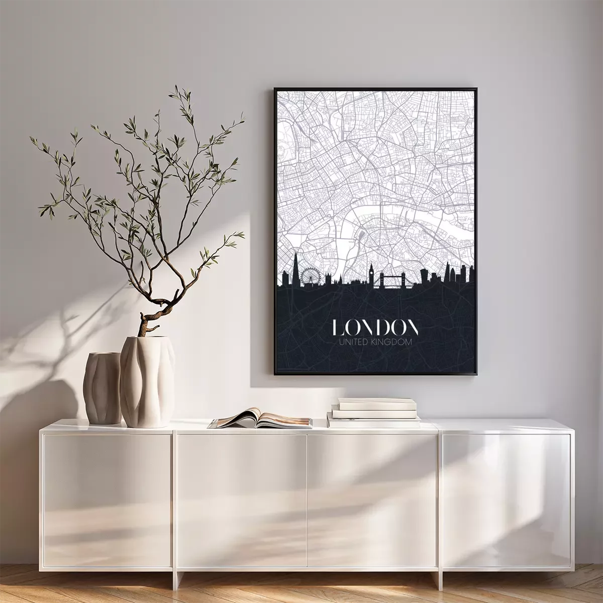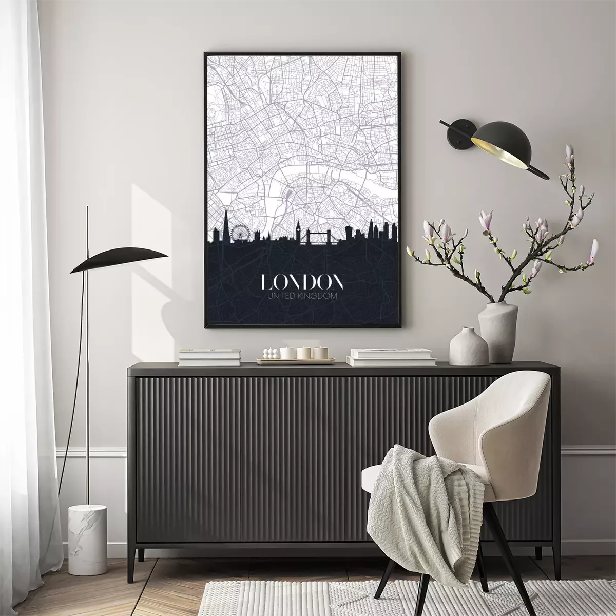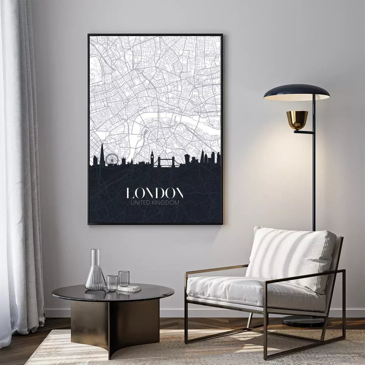 Poster: Zwart-wit kaart van Londen