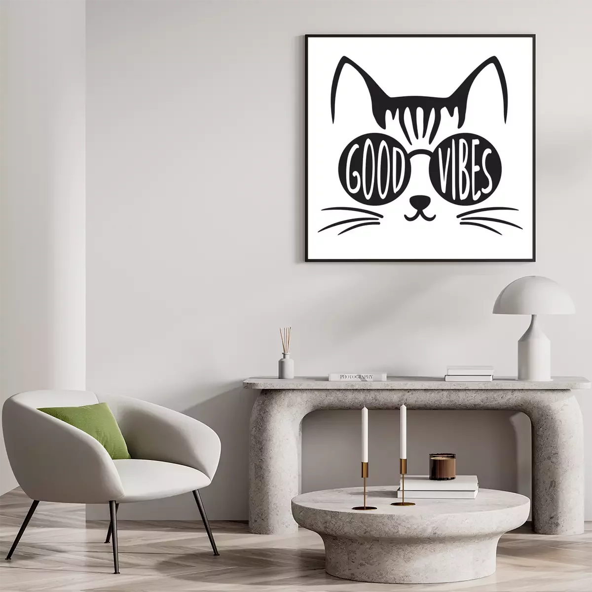 Poster: Zwart-wit opschriften met een kat