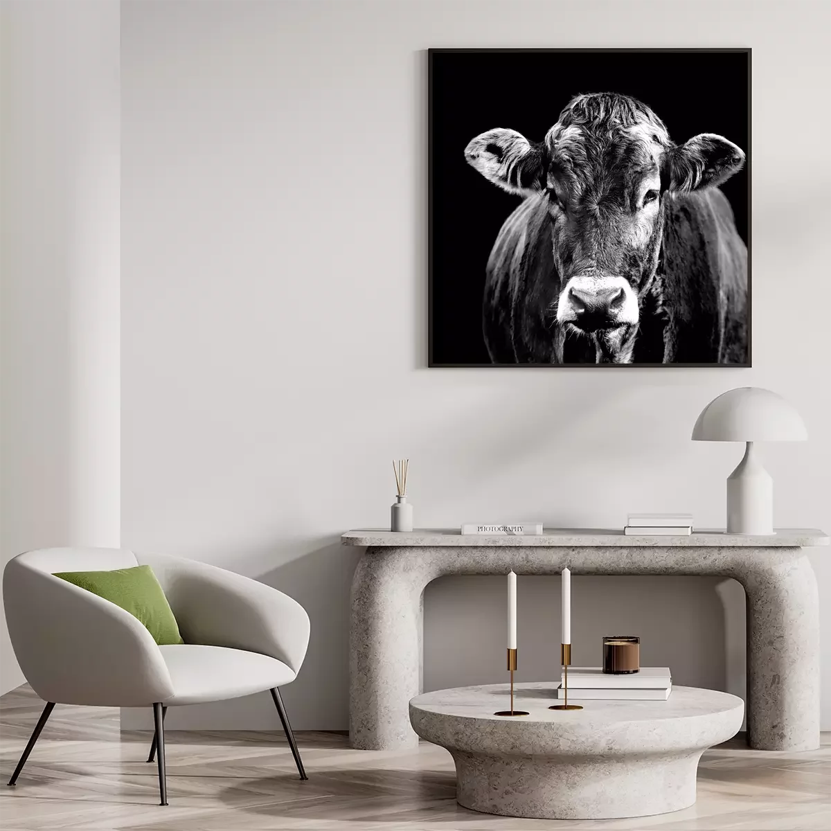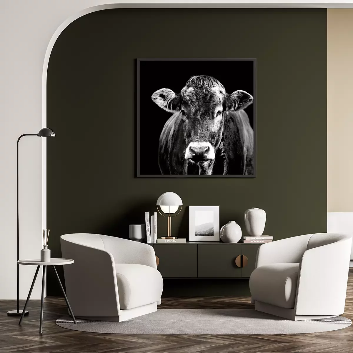 Poster: Zwart-wit portret van een koe