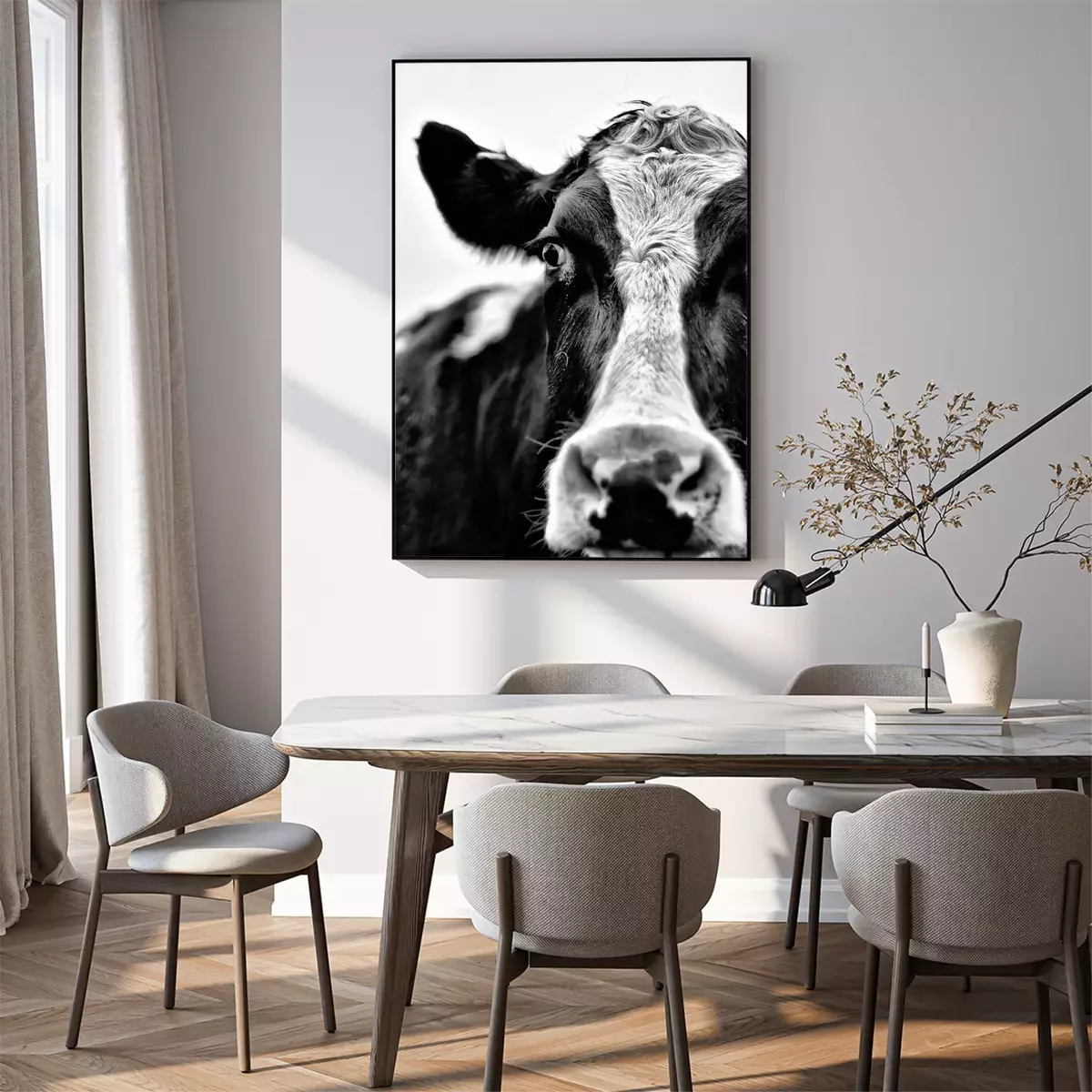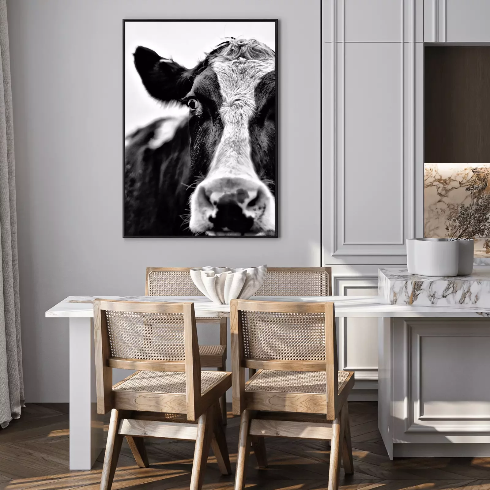 Poster: Zwart-wit portret van runderen