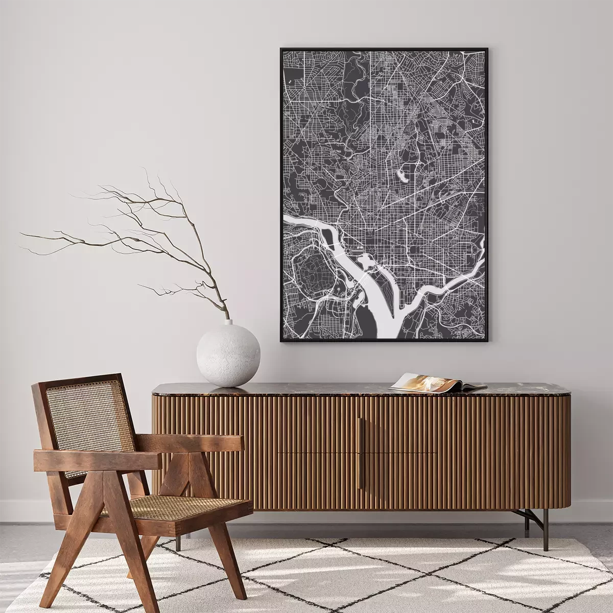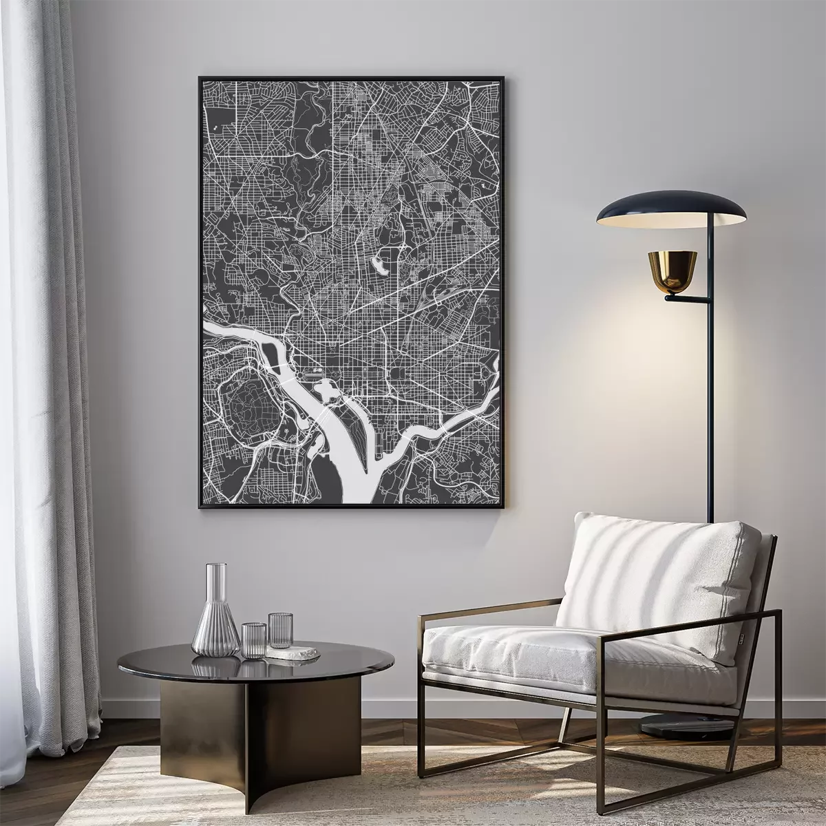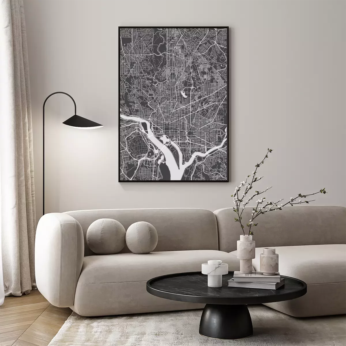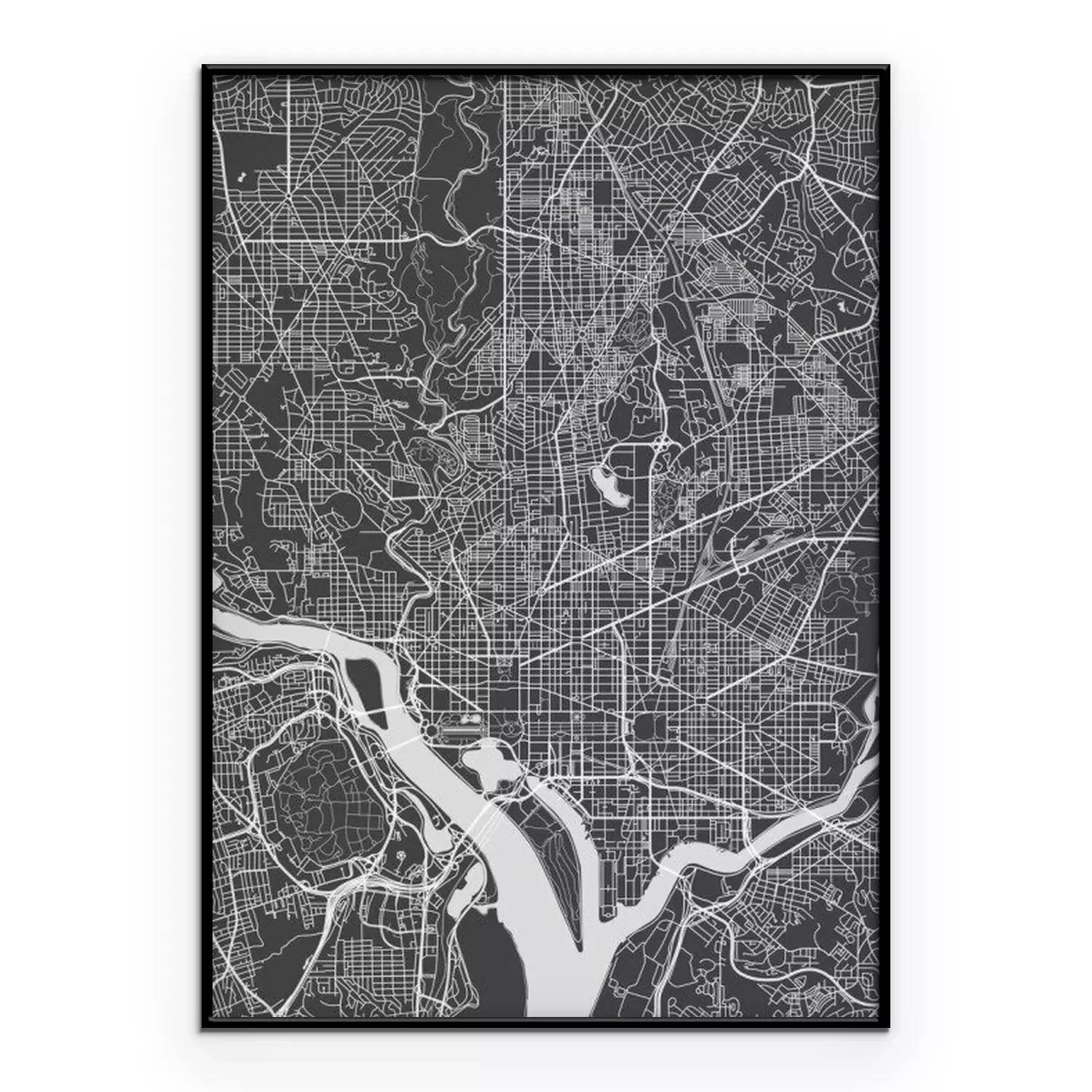 Poster: Zwart-wit schets van de plattegrond van de stad Washington