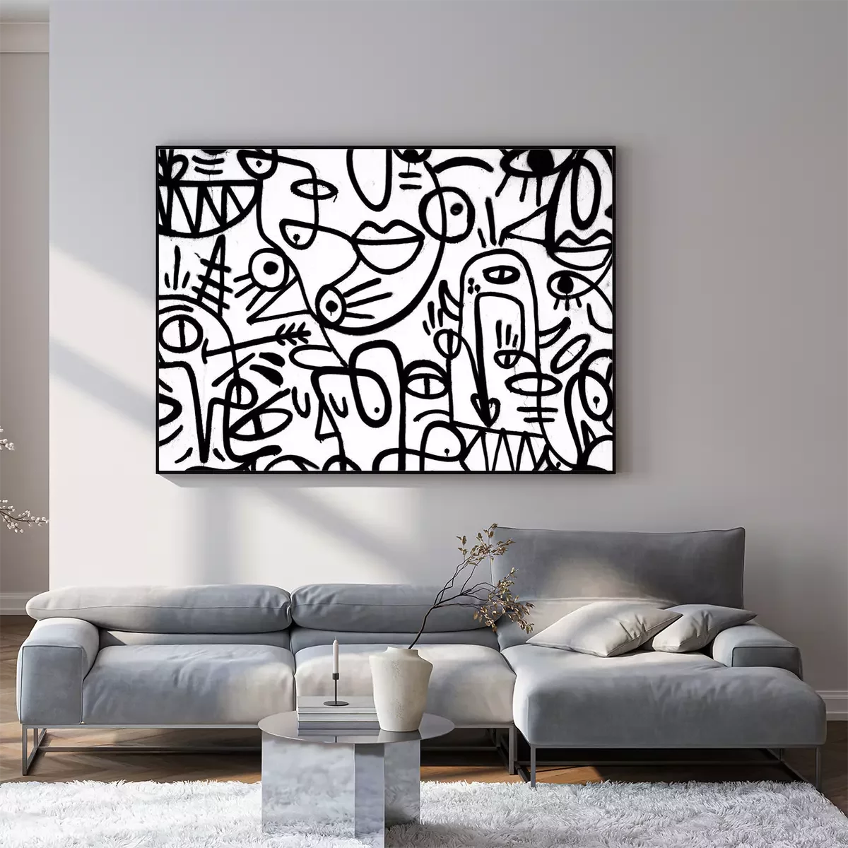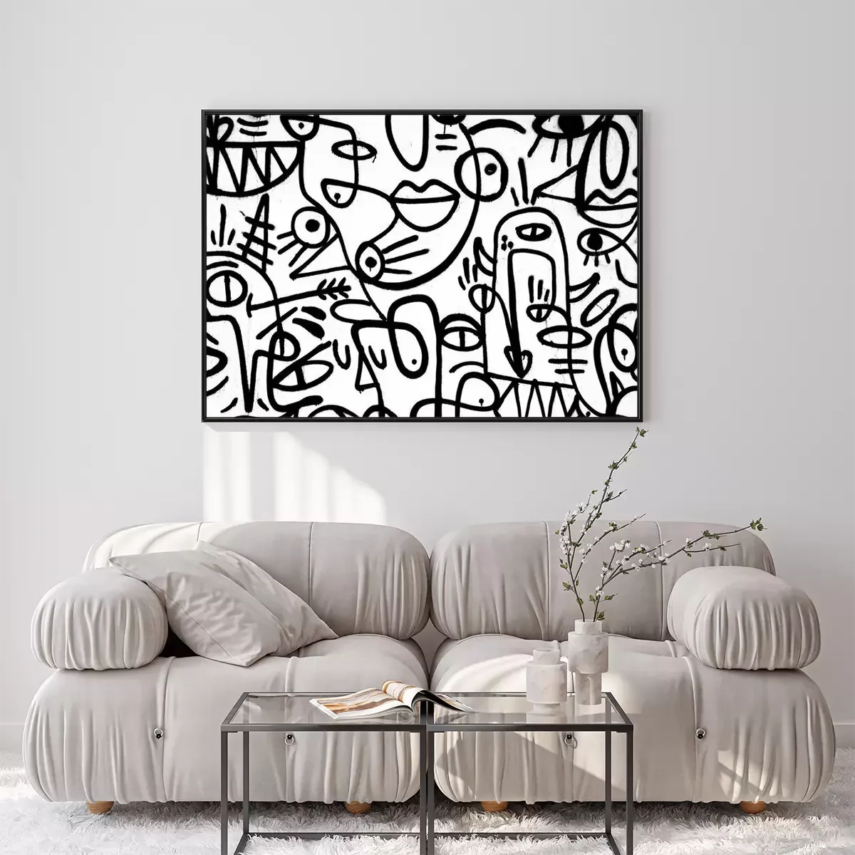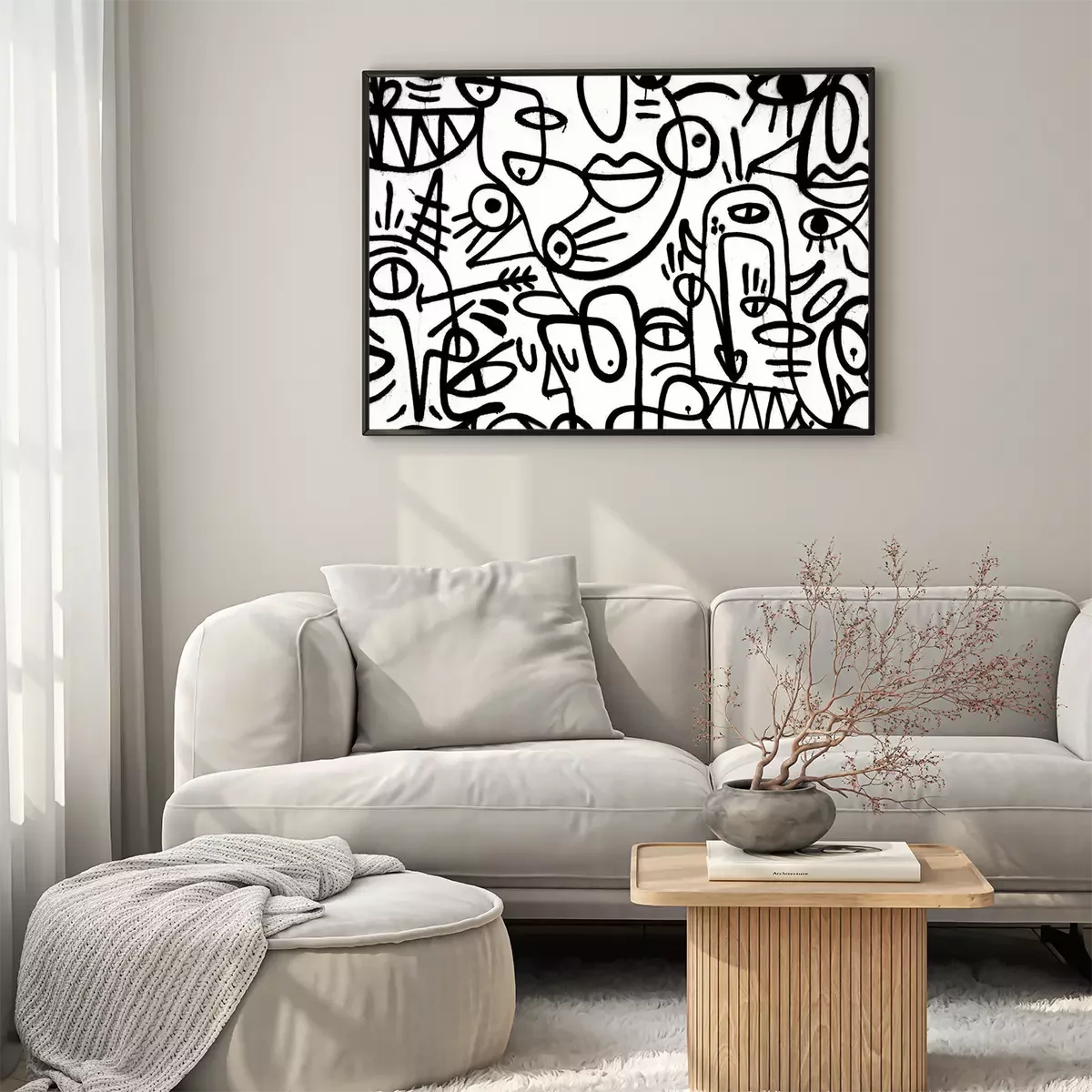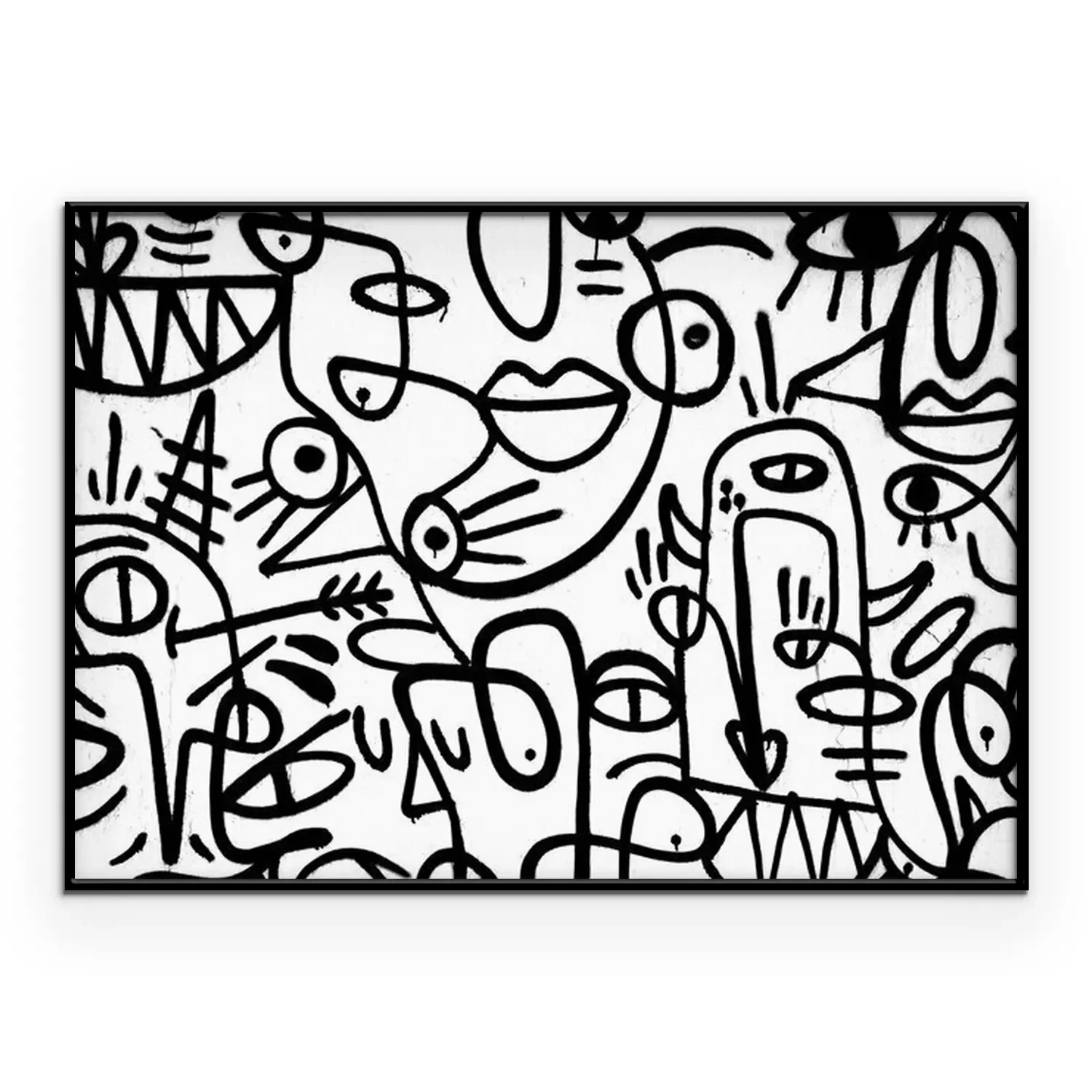 Poster: Zwart-wit tekening: abstractie in graffitistijl