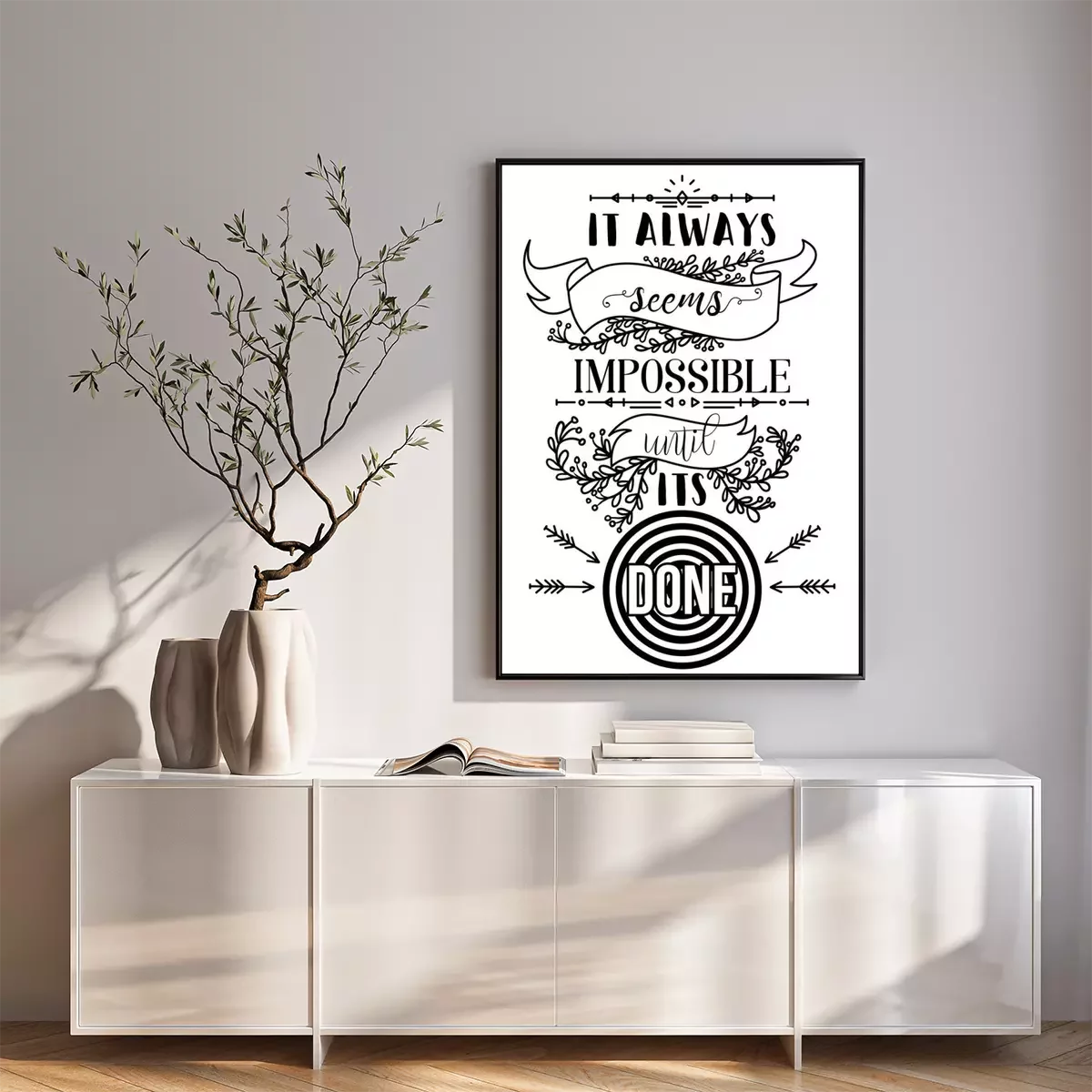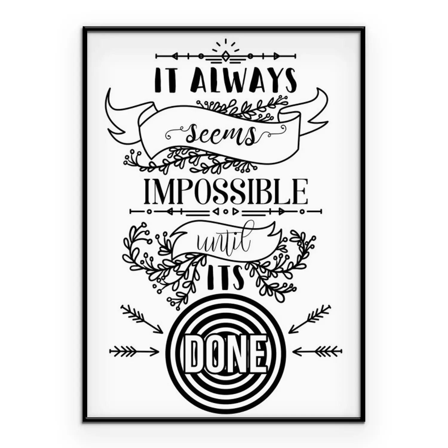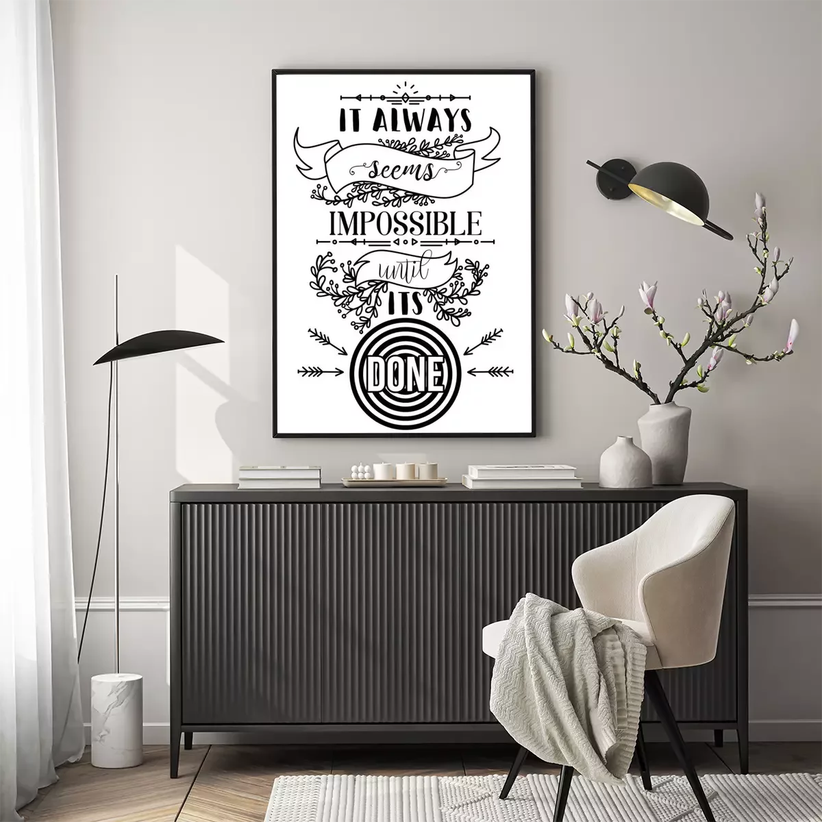 Poster: Zwart-witafbeeldingen met een schild en een inscriptie
