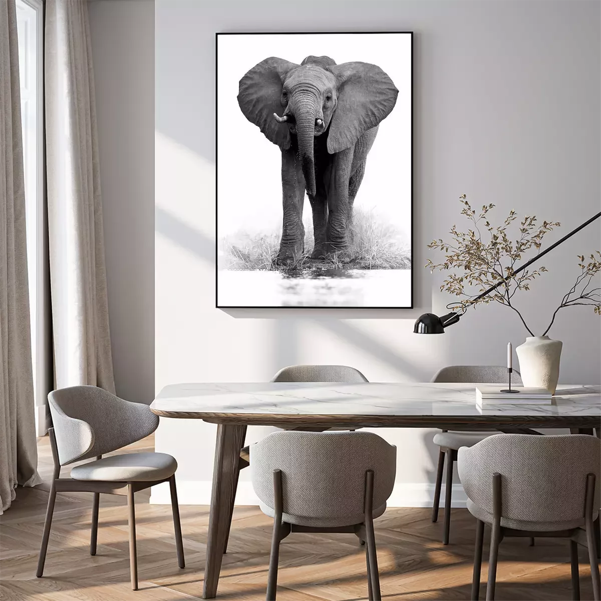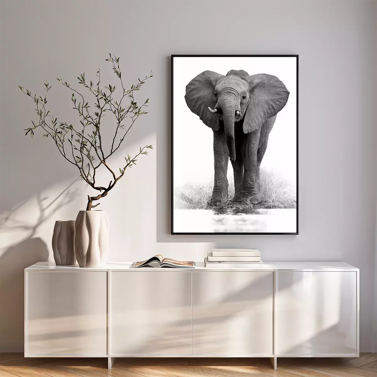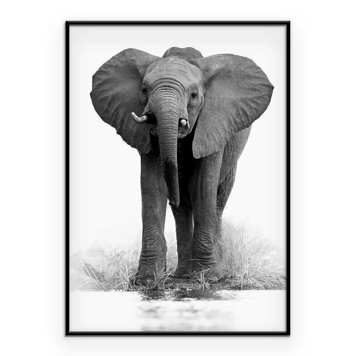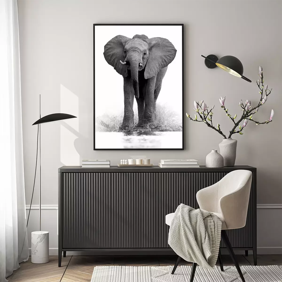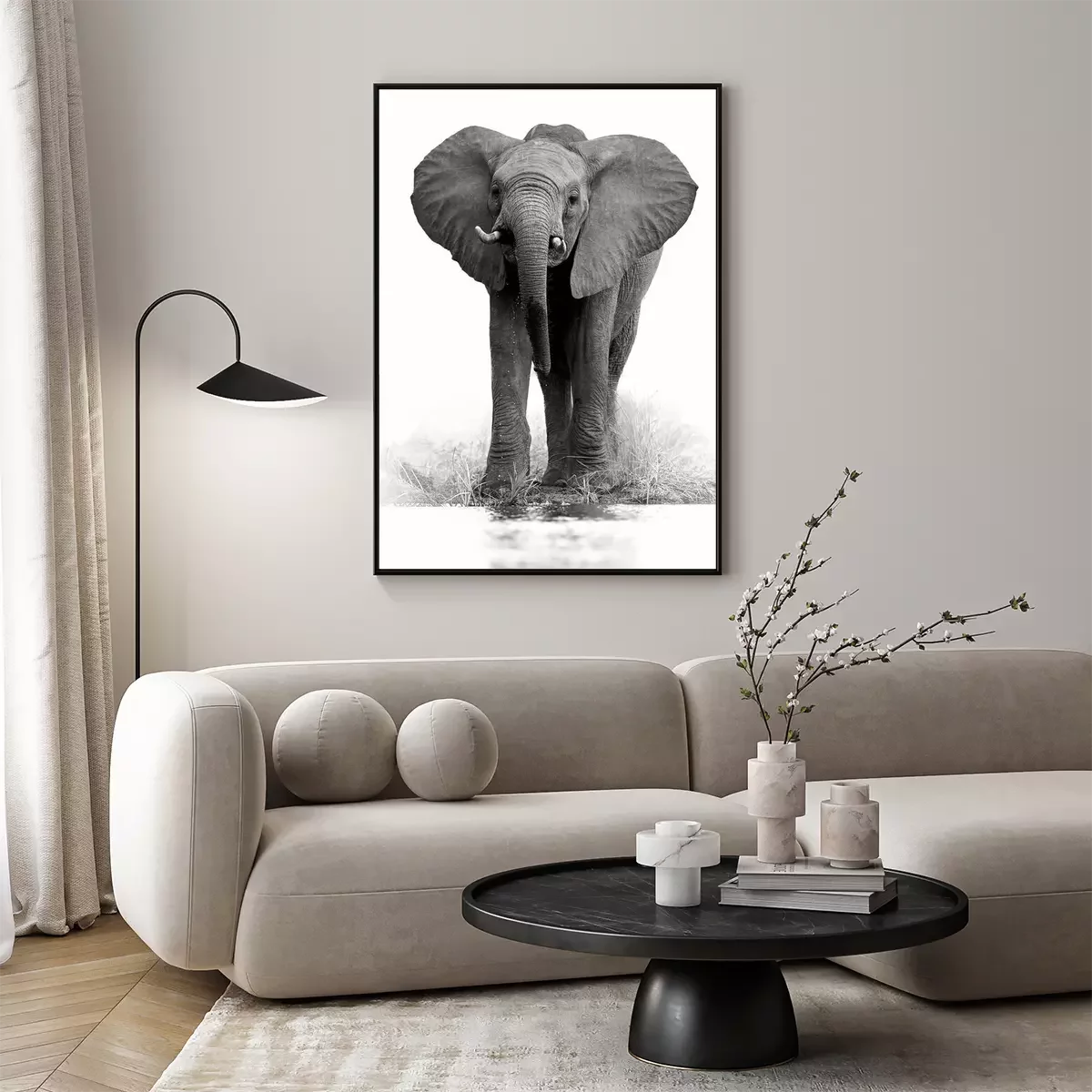 Poster: Zwart-witfoto van een Afrikaanse olifant