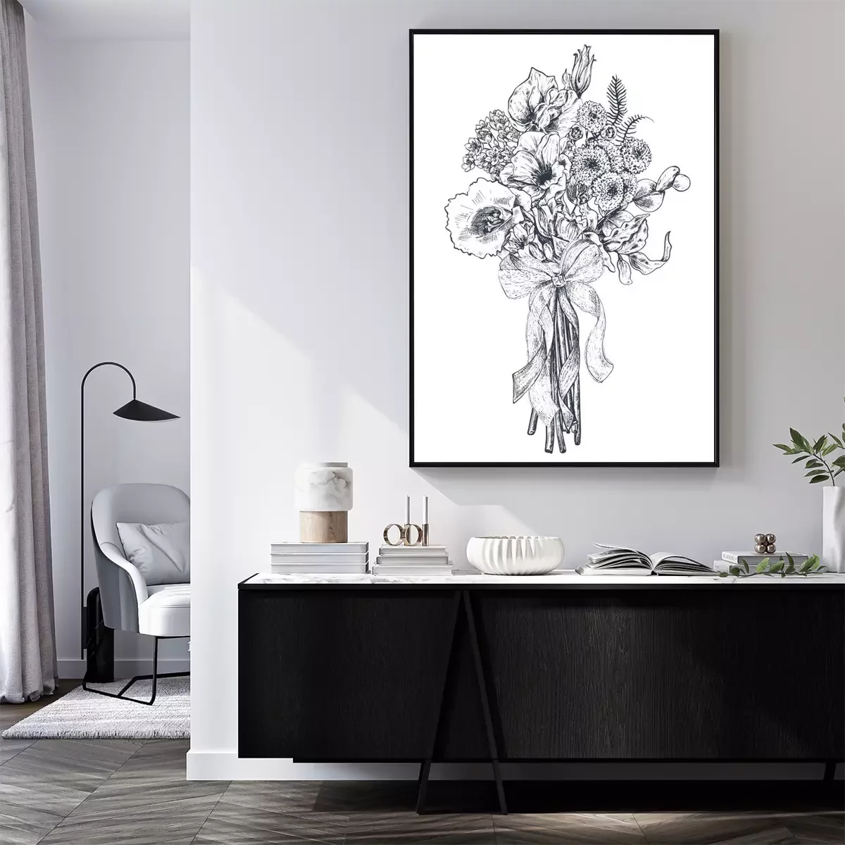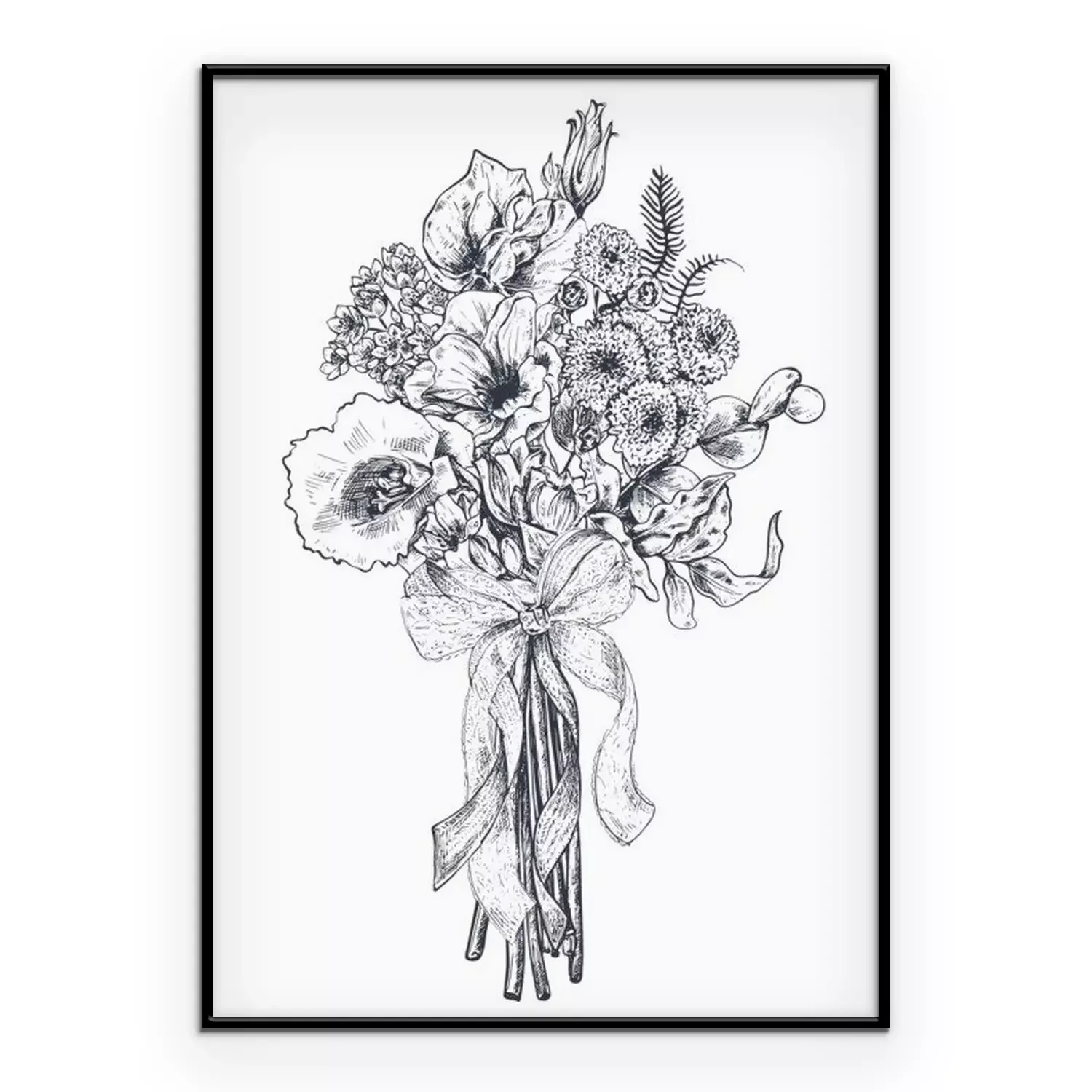 Poster: Zwart-witte bloemen in de vorm van een bos