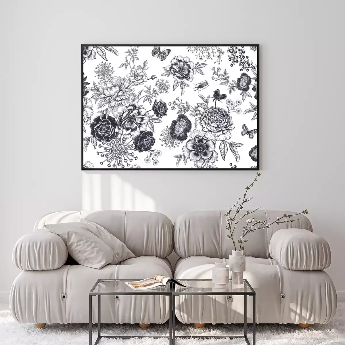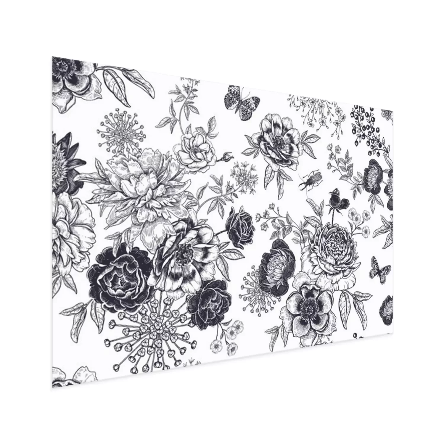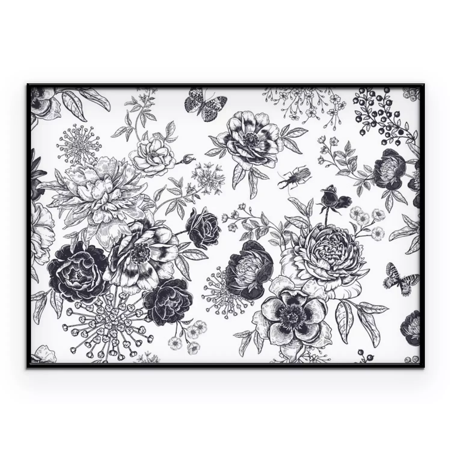 Poster: Zwart-witte bloemen van verschillende variëteiten