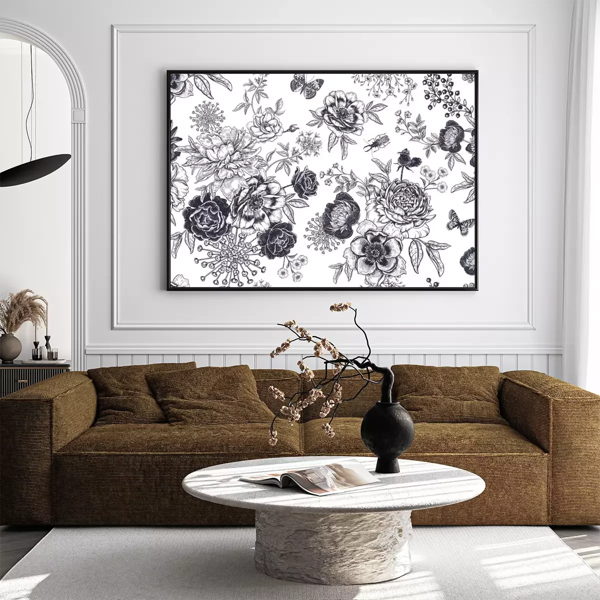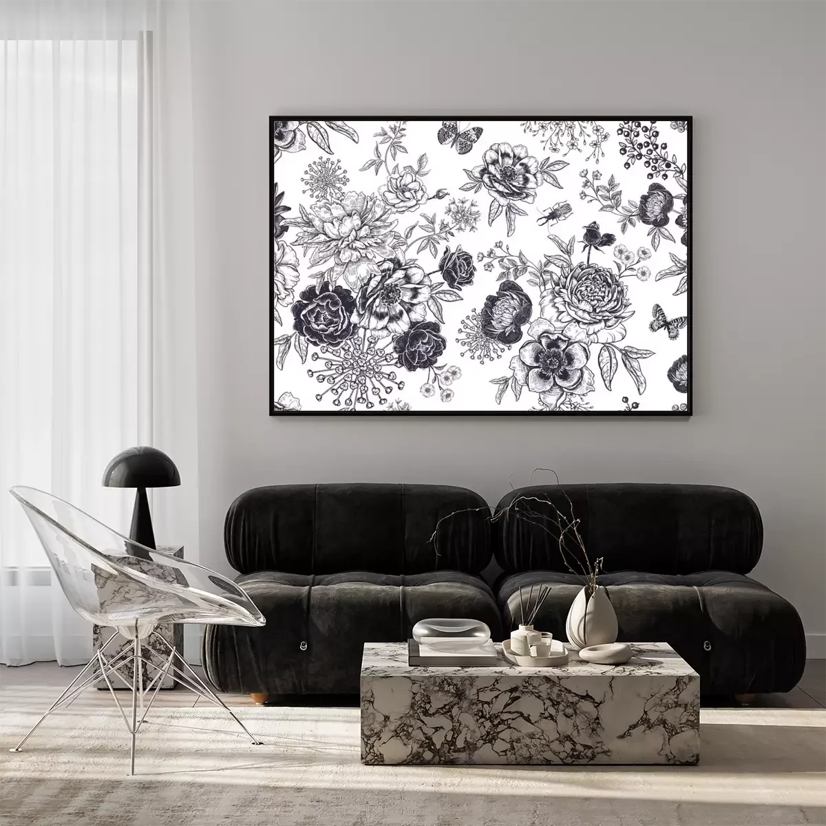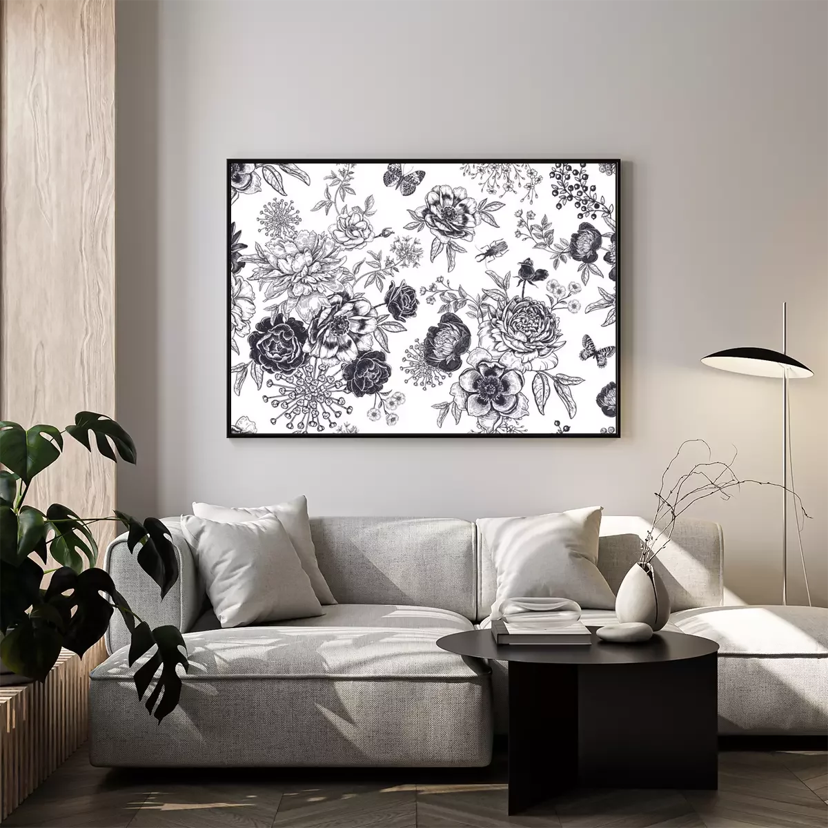 Poster: Zwart-witte bloemen van verschillende variëteiten