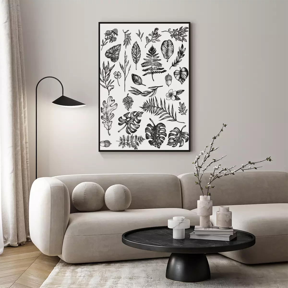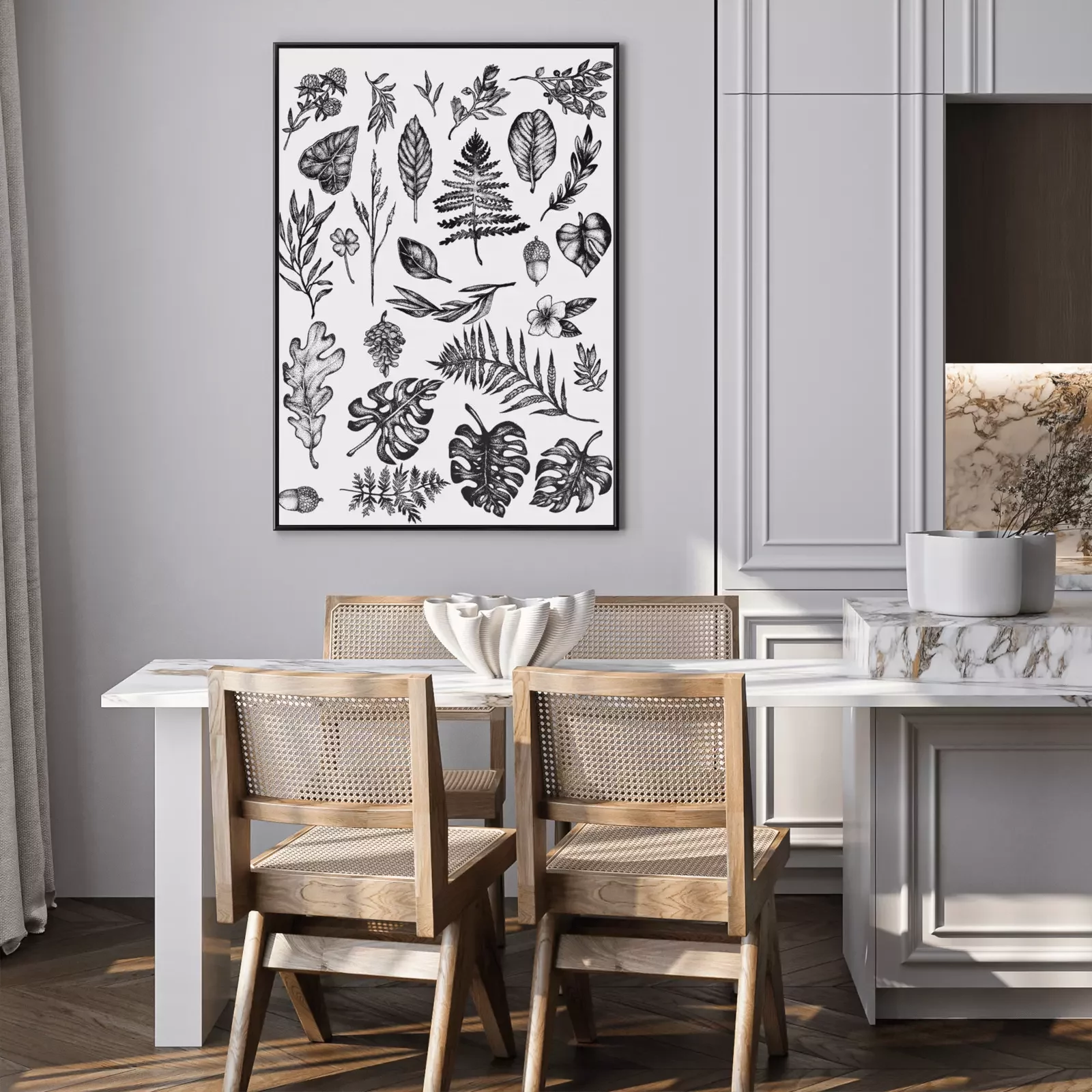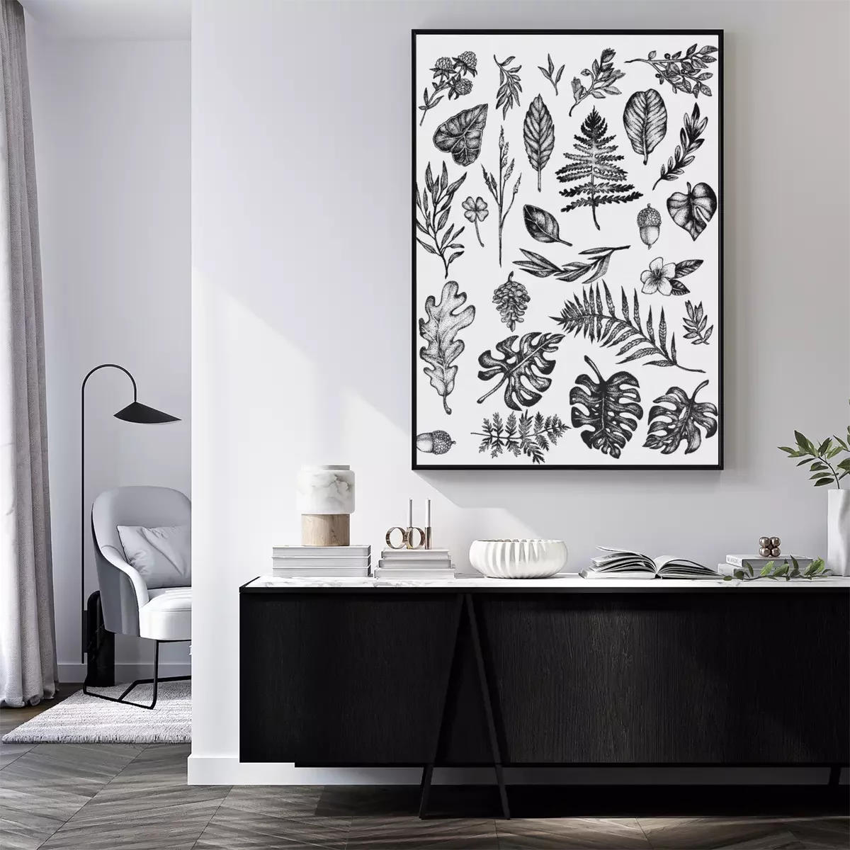 Poster: Zwart-witte botanische schets van rozemarijn