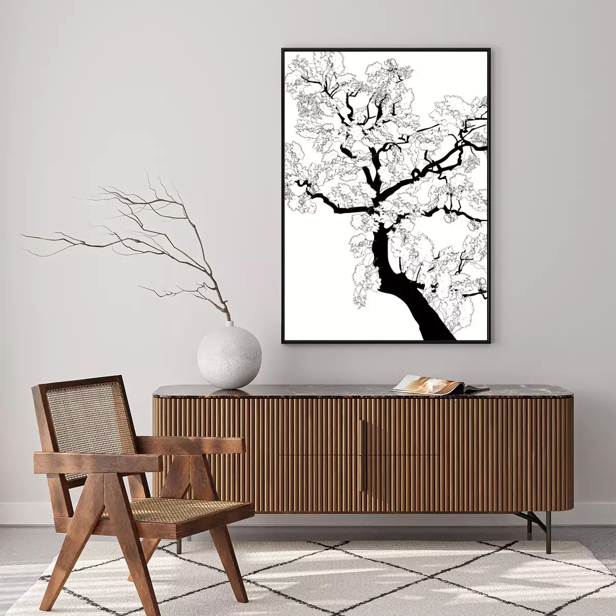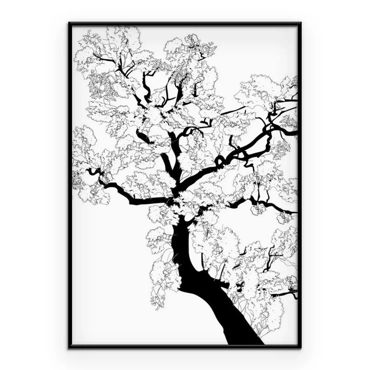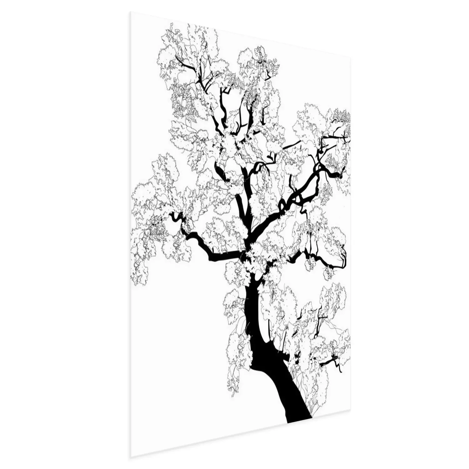 Poster: Zwart-witte grafiek met een tak van een boom